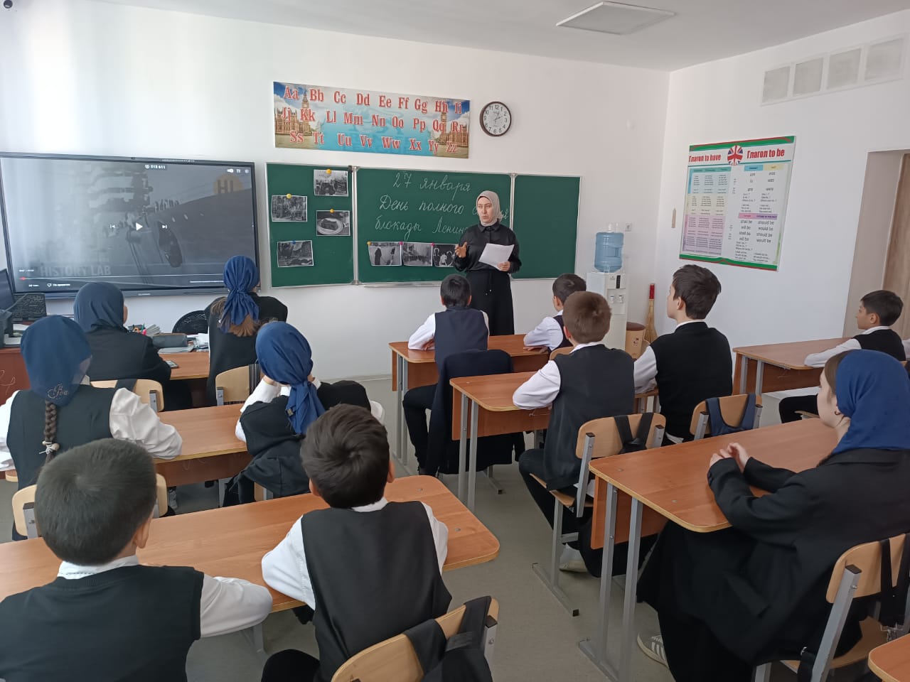 27.01.2024г. в МБОУ «Веденская СОШ № 2» советник директора по воспитанию и взаимодействию с детскими общественными объединениями Салбанова К.Н. в 6-7 классах провела кинолекторий «Ленинград: Дорога жизни».