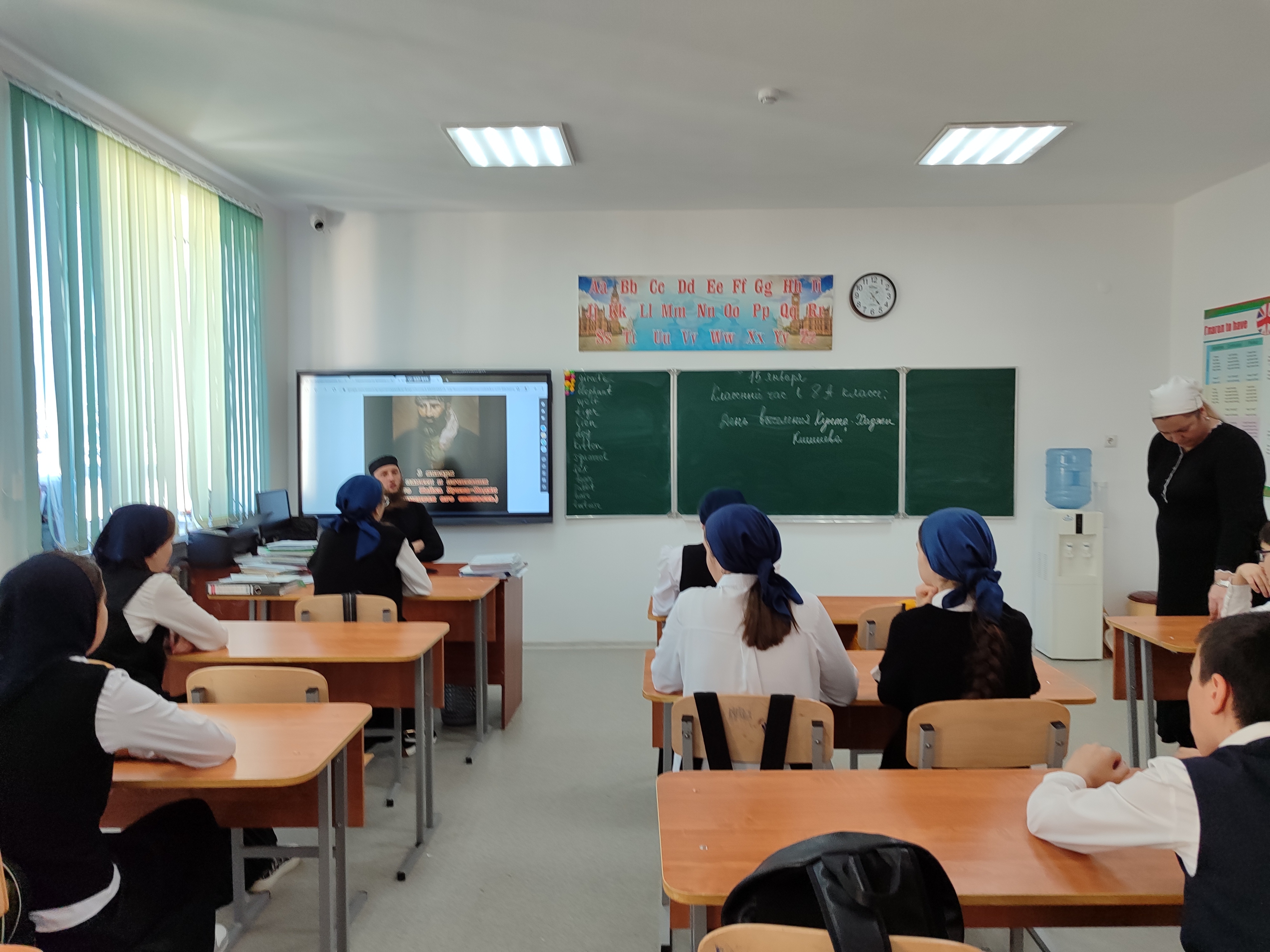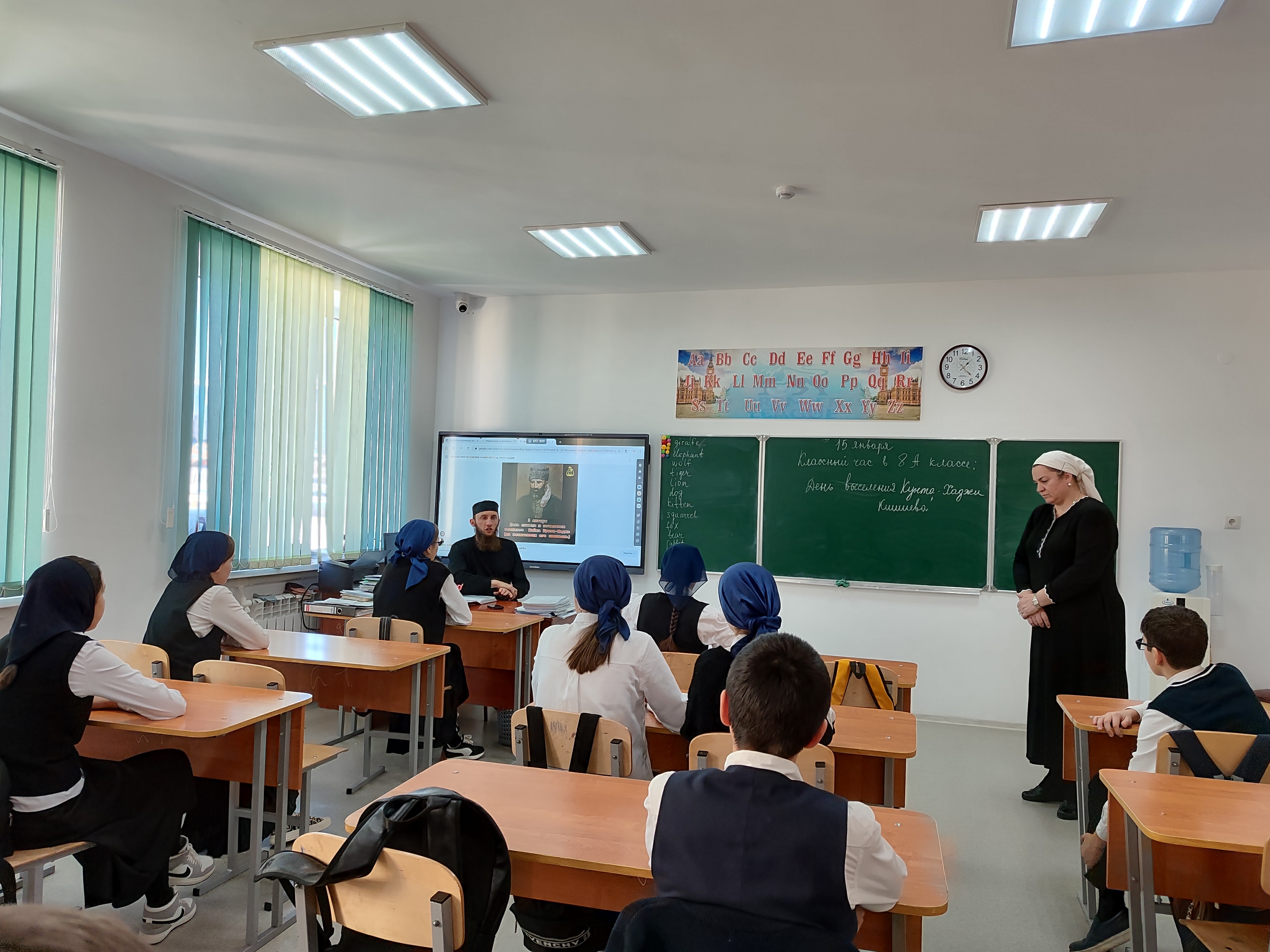 22.01.2024 в 8 "А" классе с участием духовного лица проведен классный час , посвященный Дню почитания Кунта-Хаджи Кишиева.