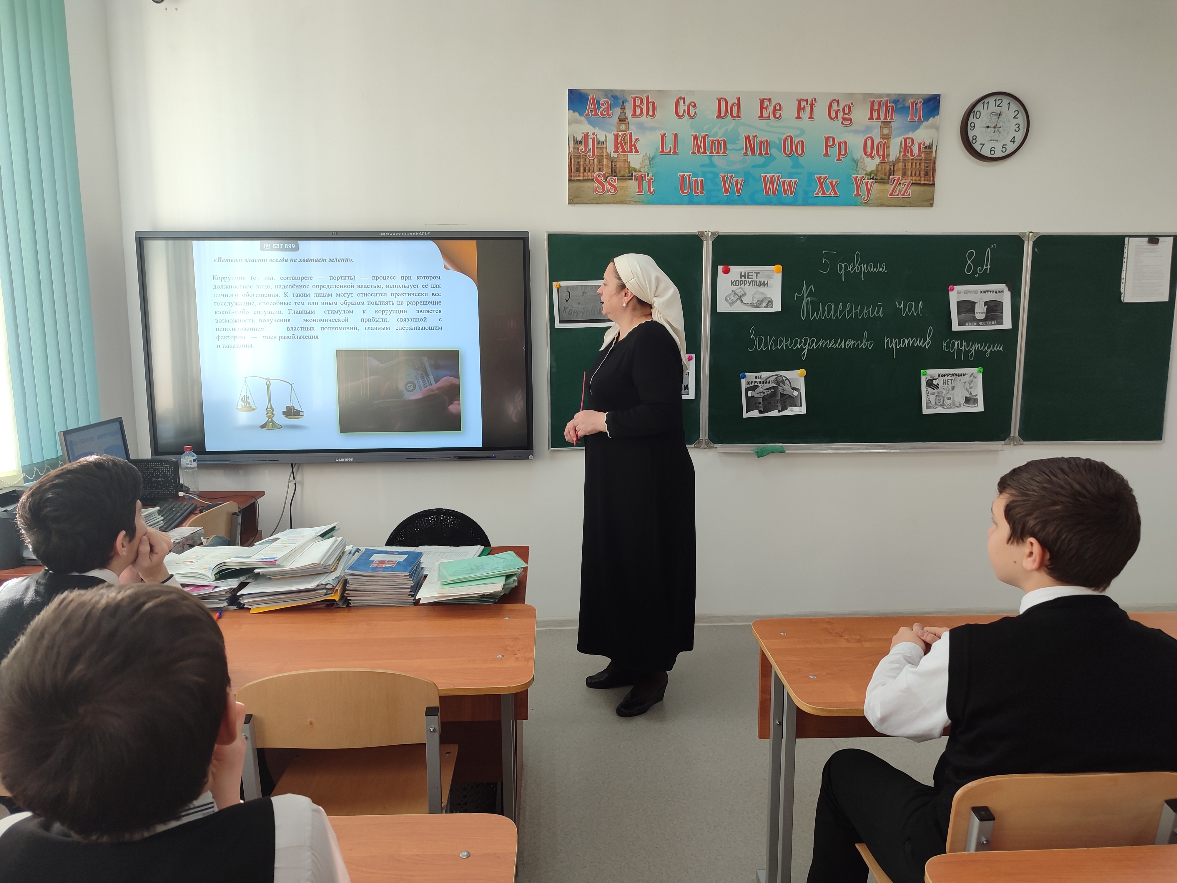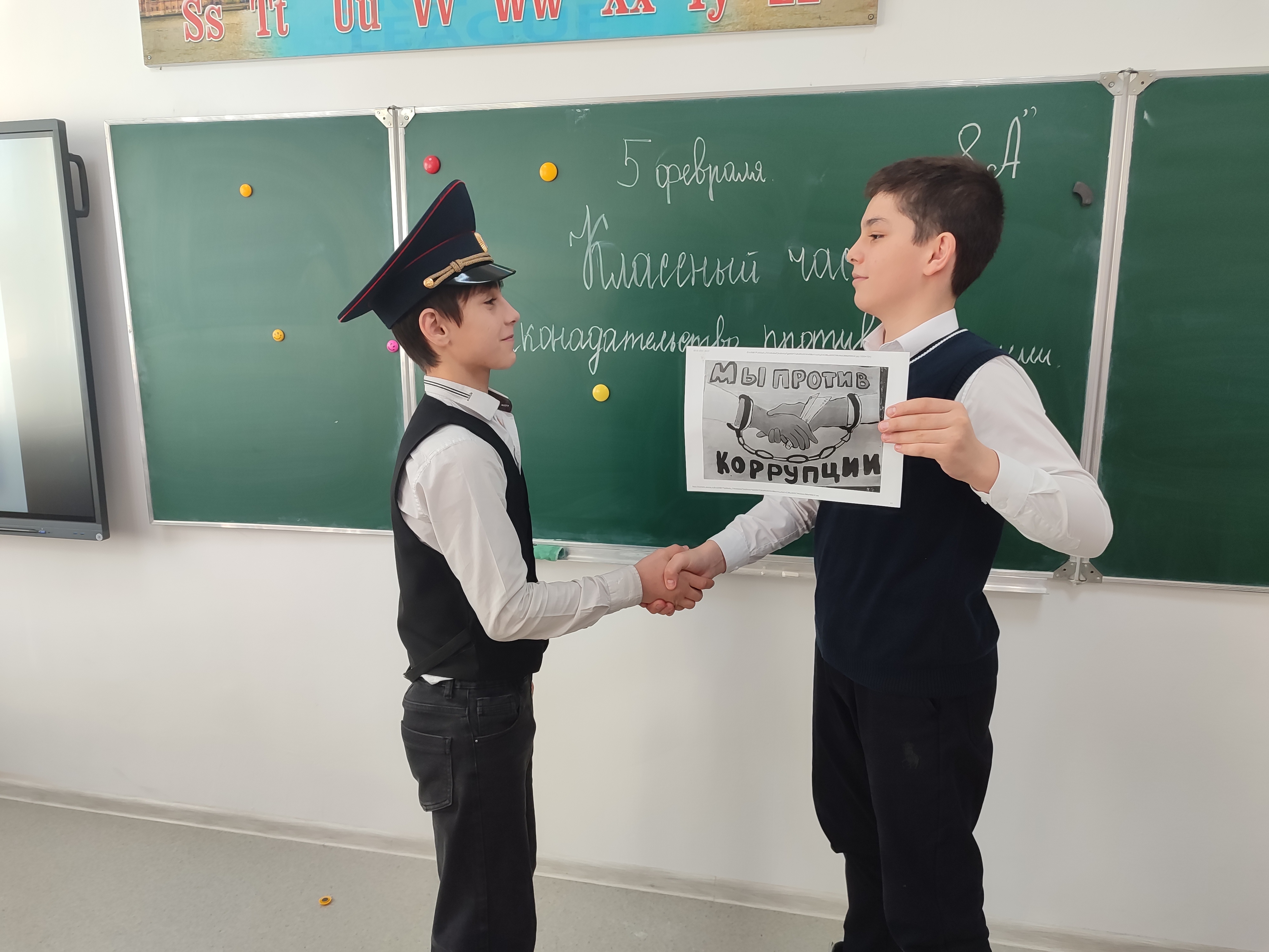 05.02.2024 в 8 "А" классе проведен классный час на тему:"Коррупция как социально опасное явление".