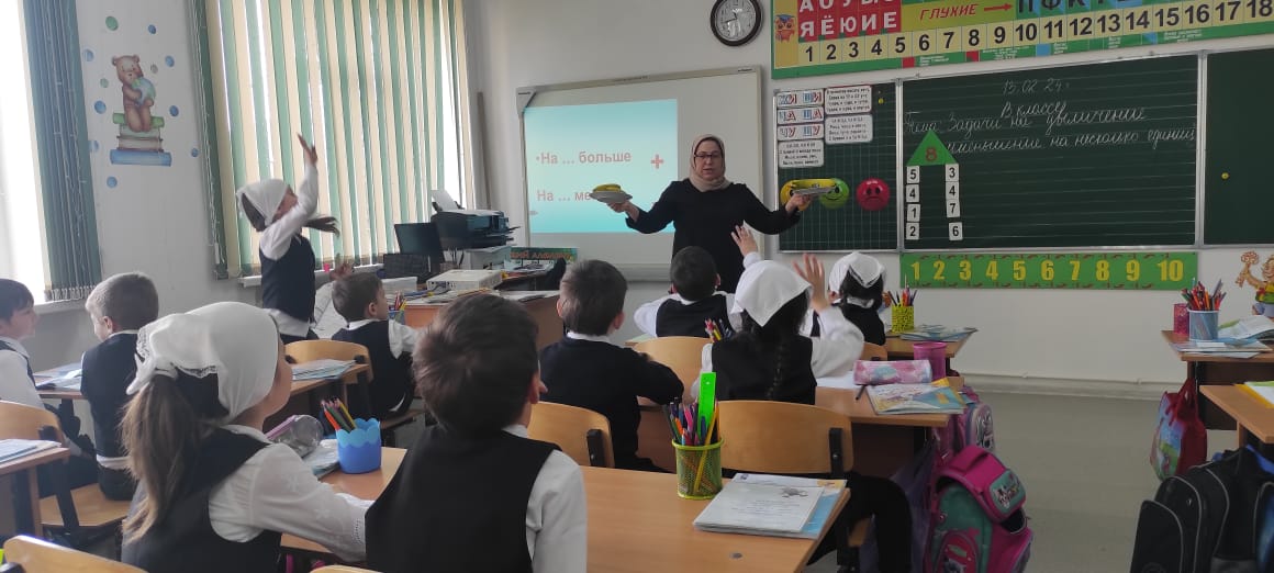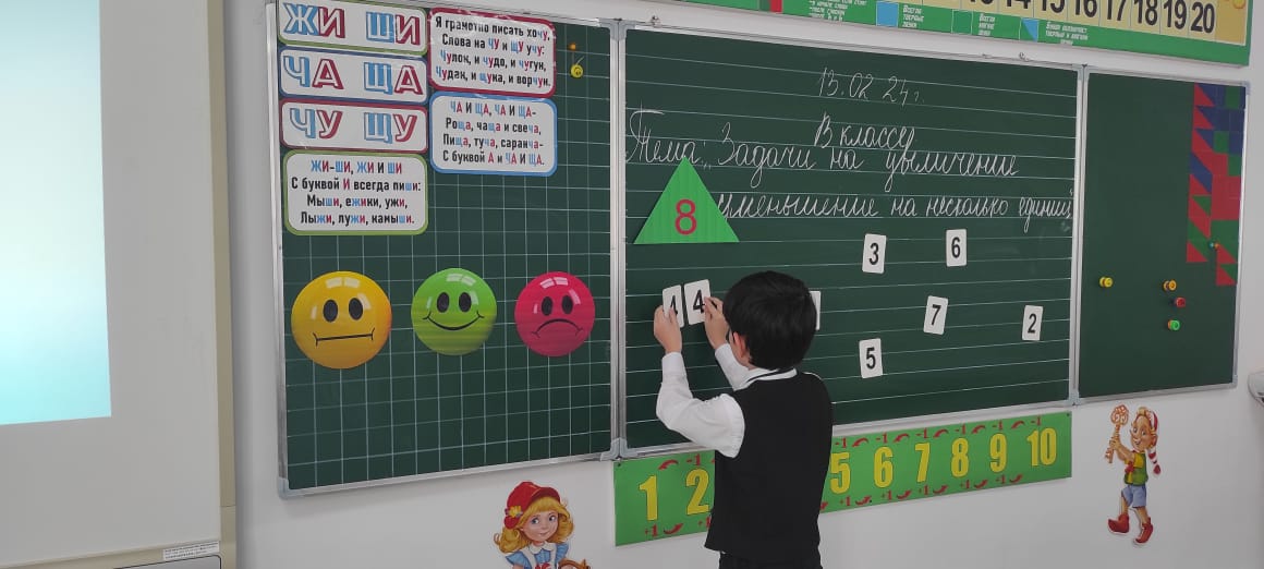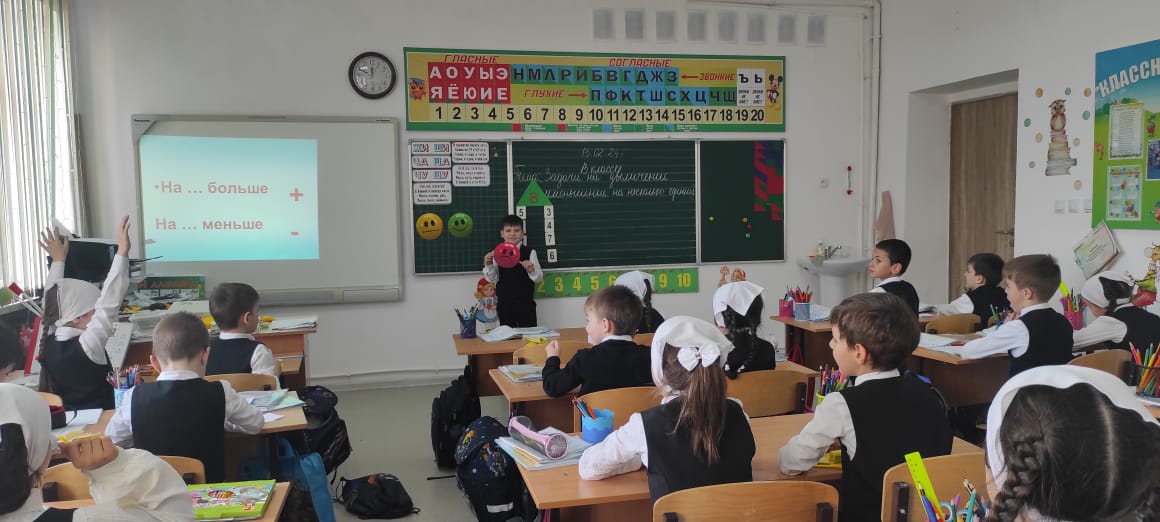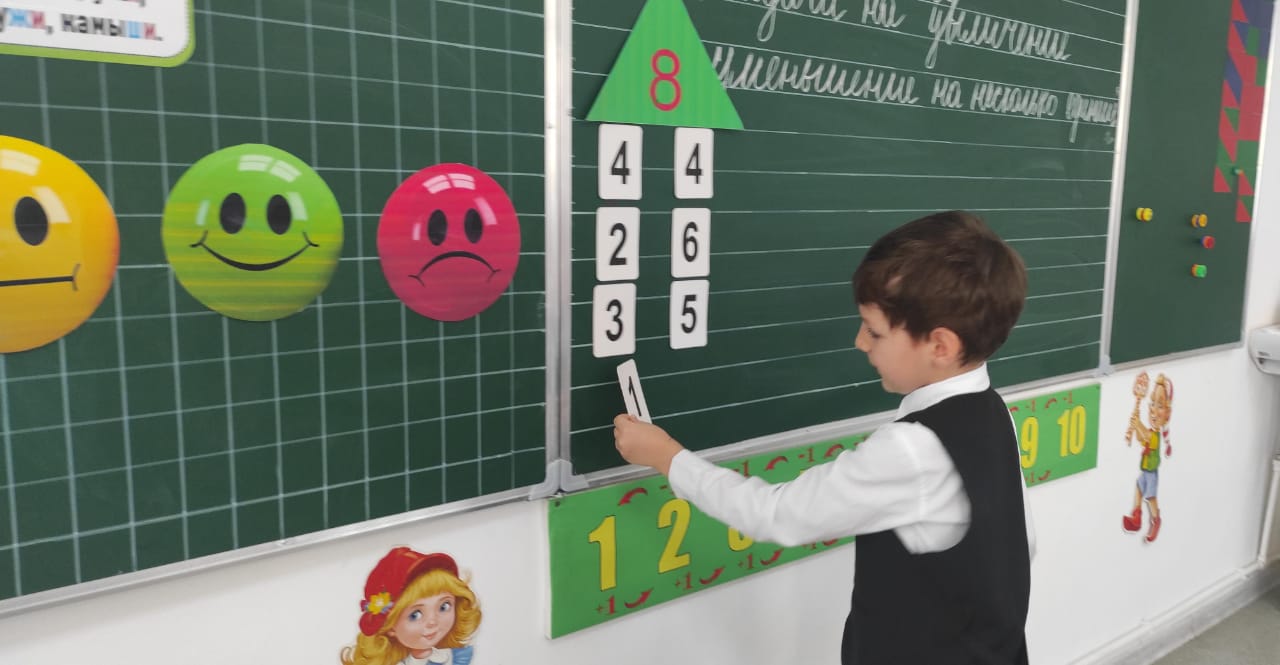 13.02.2024г. в первом классе был проведен урок по математике на тему: "Задачи на увеличение, уменьшение числа на несколько единиц". Цель: Формирование умения решать задачи на увеличение, уменьшение на несколько единиц.
