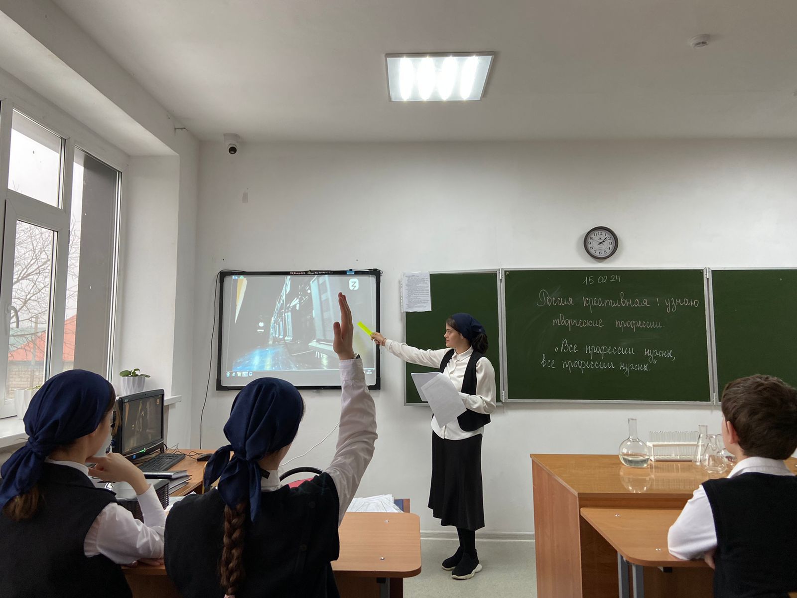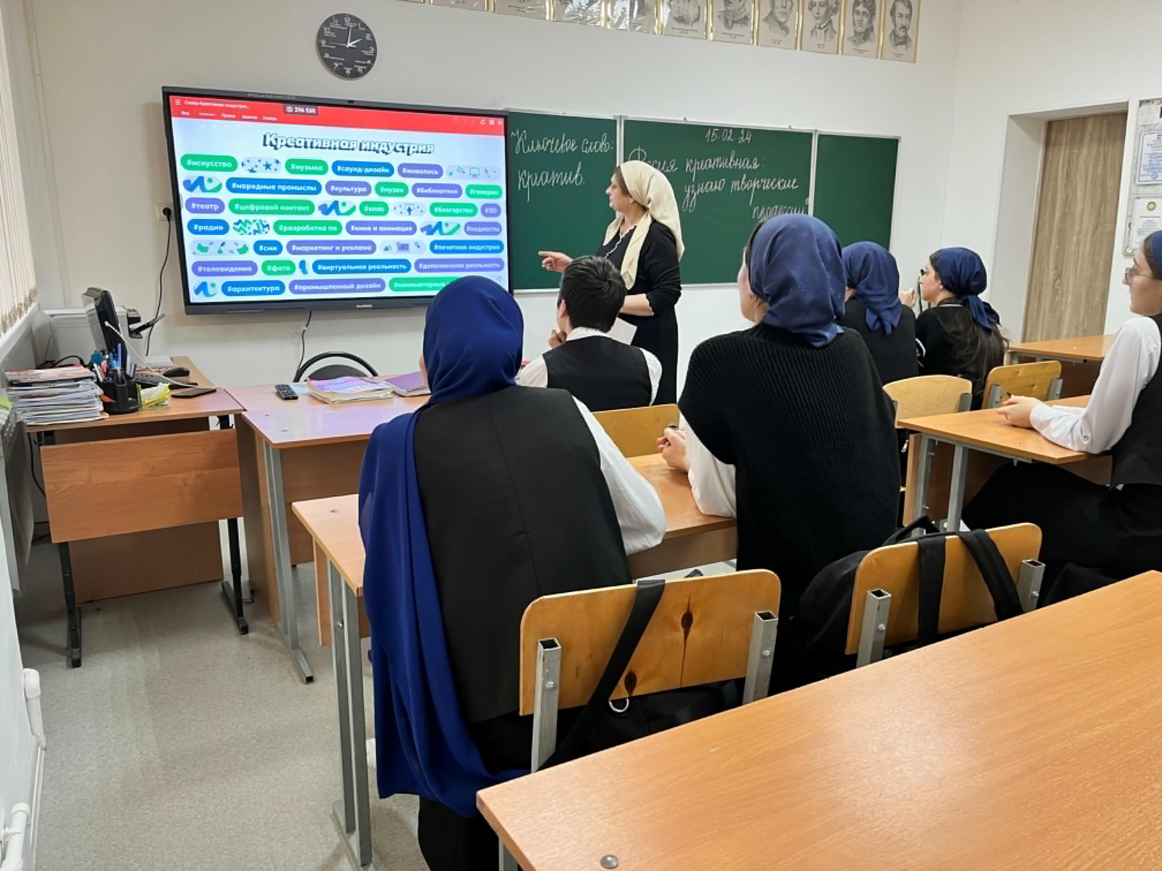 Тема занятия была посвящена «креативу» в хорошем смысле этого слова: сфере культуры и искусства. Мы все вместе посмотрели видеоролик с международной выставки-форума «Россия», которая проходит на ВДНХ в Москве, т.к. эта выставка сама по себе является ярким примером взаимодействия креативных индустрий.