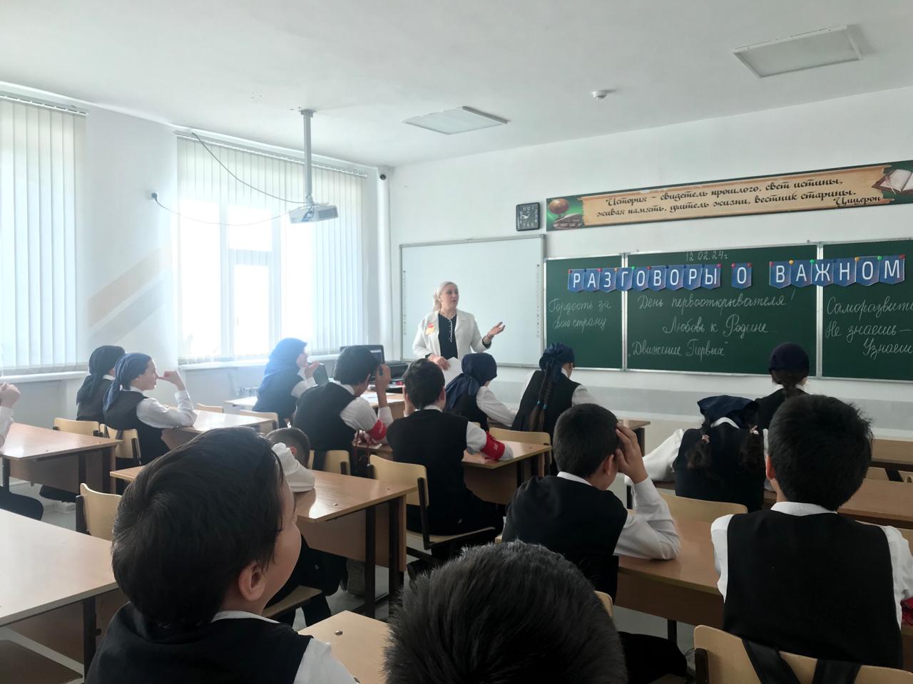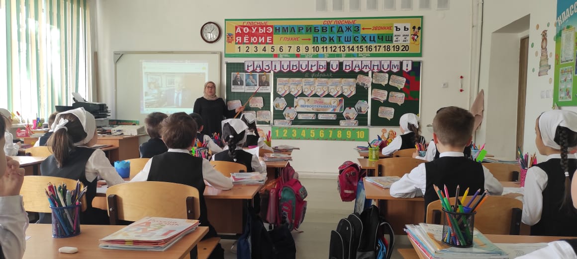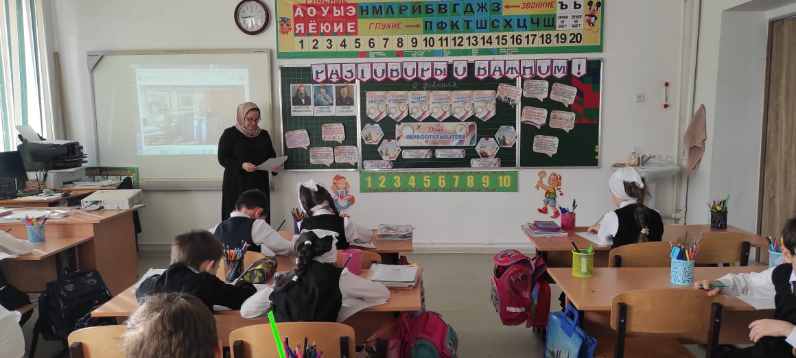 12.02.202412.02.2024 года в МБОУ «Веденская СОШ №2» прошло очередное внеурочное занятие «Разговоры о важном» по теме: «ДЕНЬ ПЕРВООТКРЫВАТЕЛЯ».