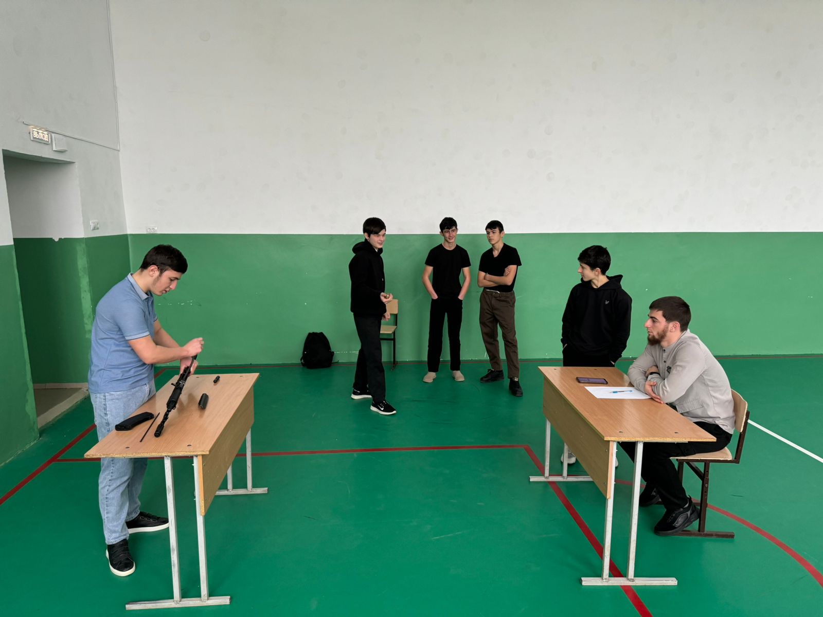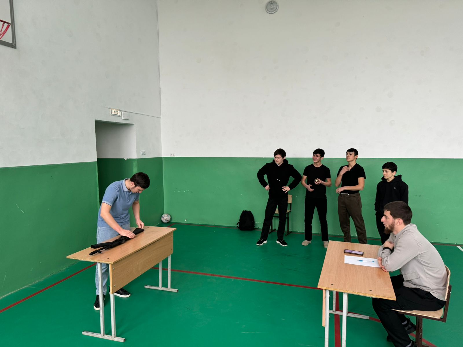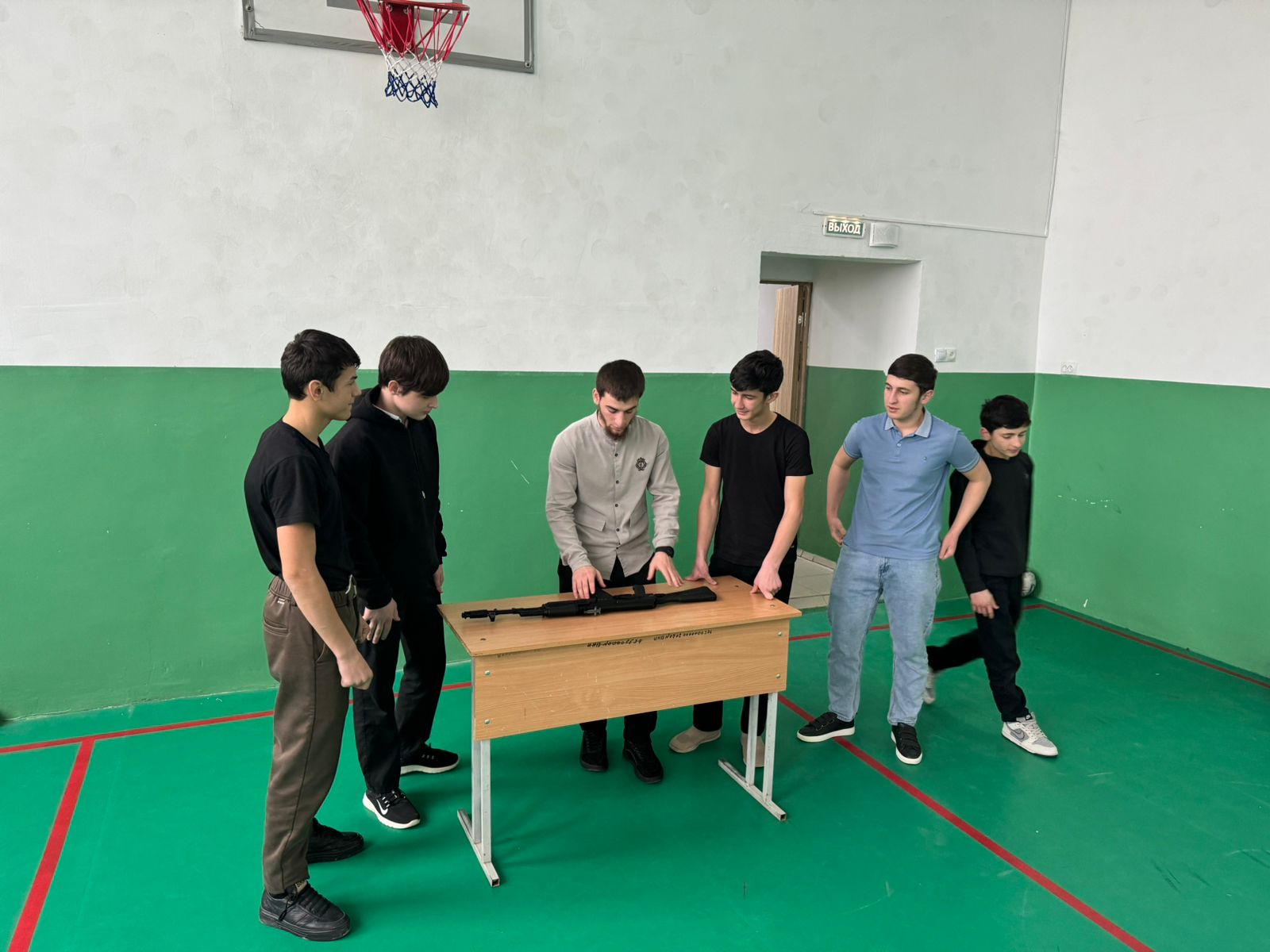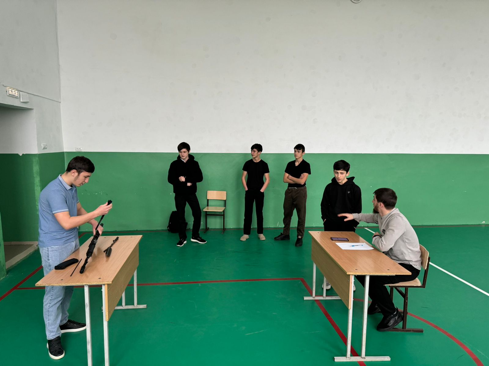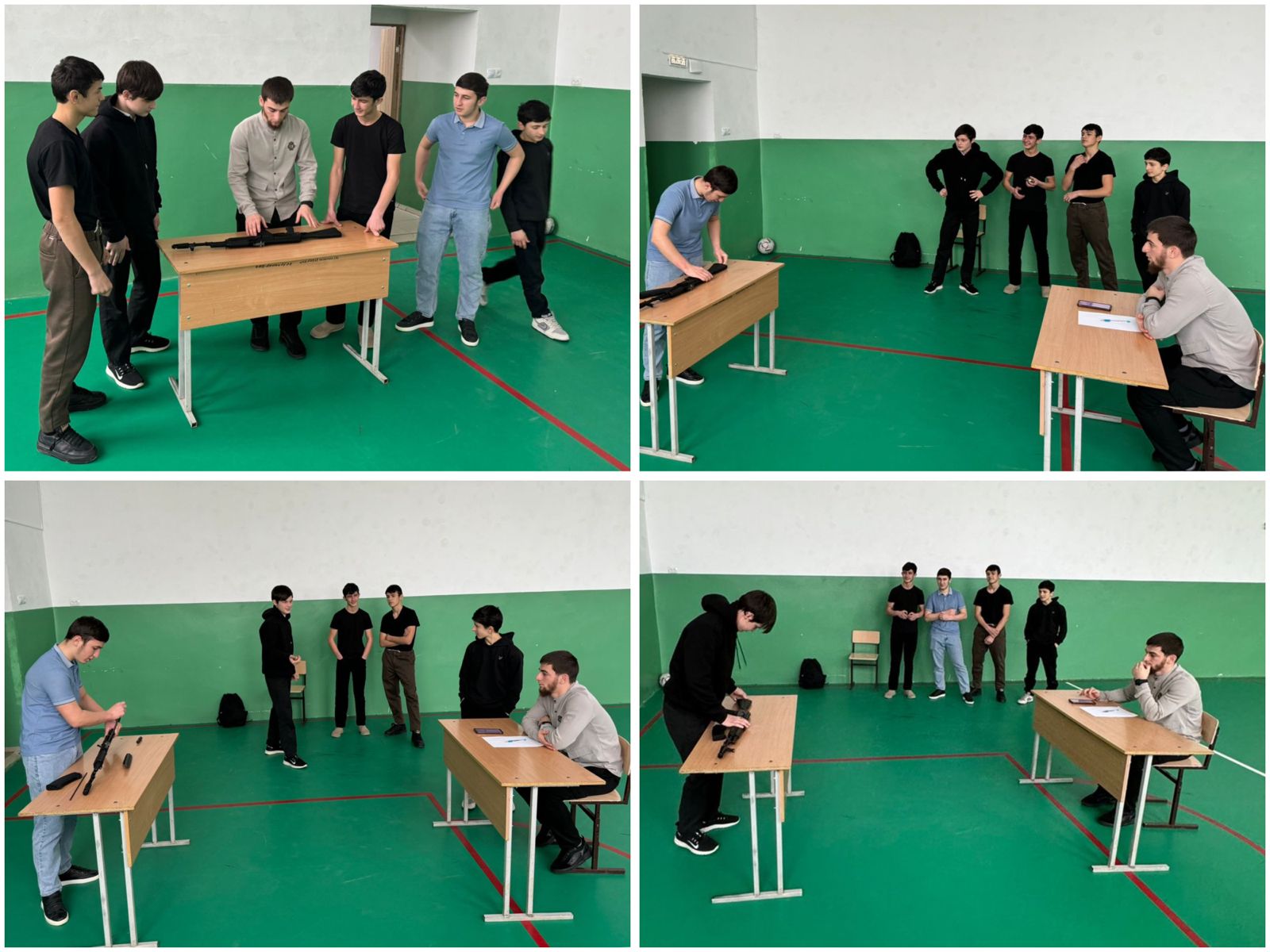 Инасаламов Я.Д. разъяснил учащимся порядок неполной и полной разборки АК-74, а также его сборки. Ребята узнали, что неполная разборка применяется во время чистки, смазки и осмотра автомата, а полная — для чистки при сильном загрязнении автомата, после нахождения его под дождем или в снегу, при переходе на новую смазку и при ремонте.