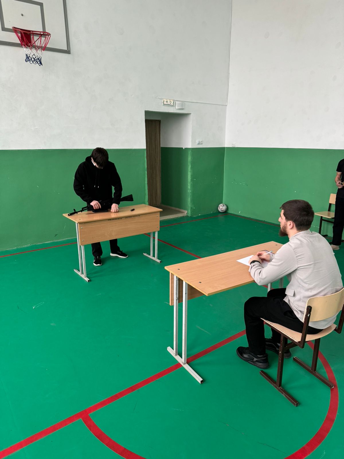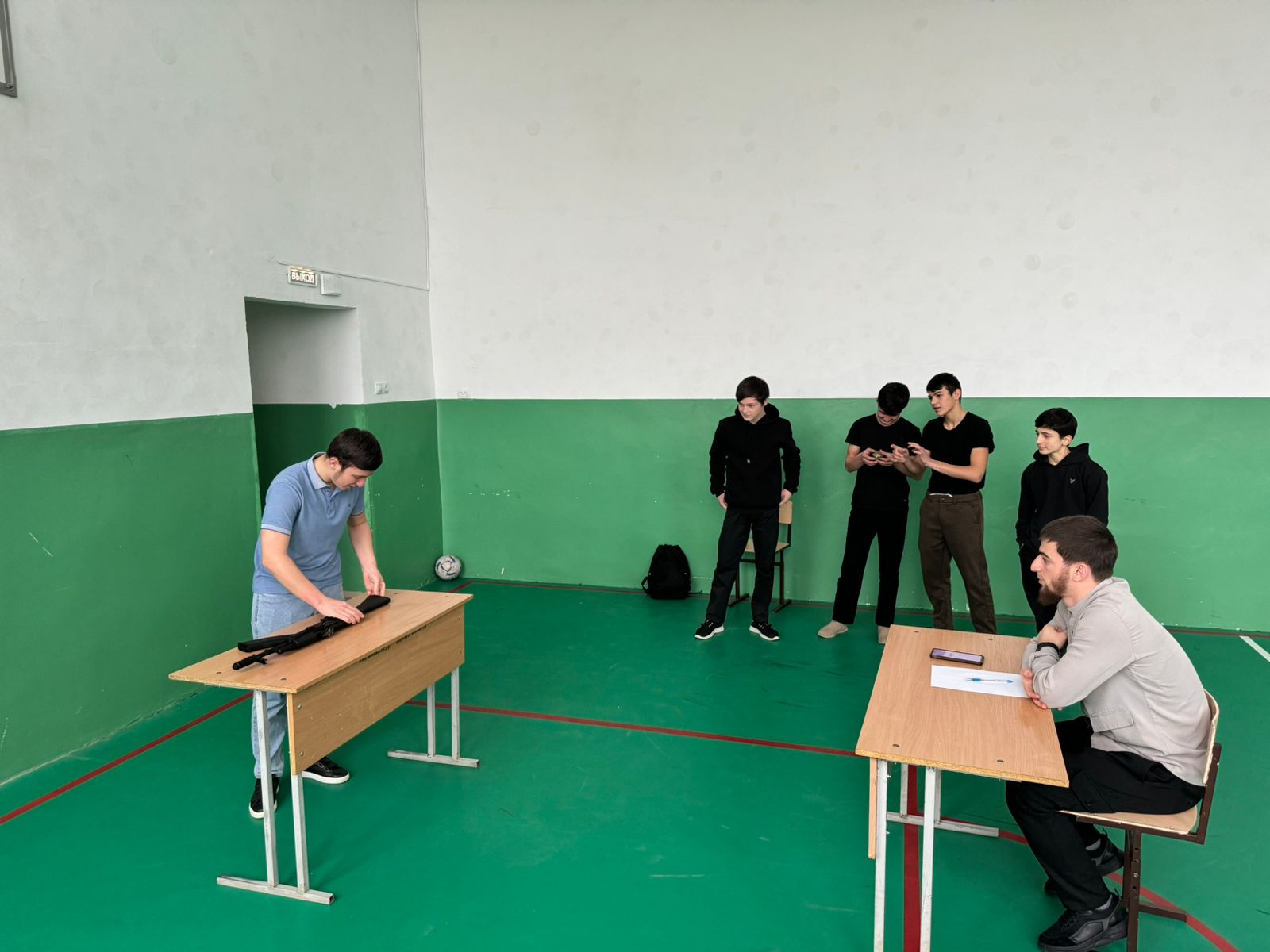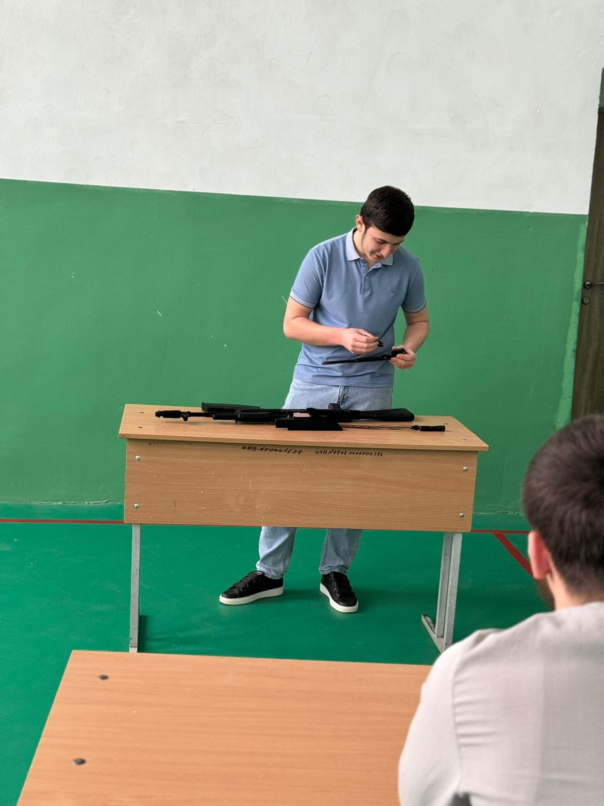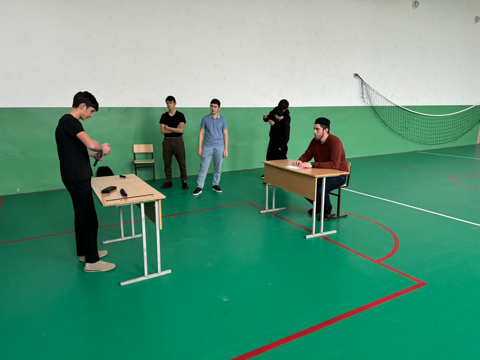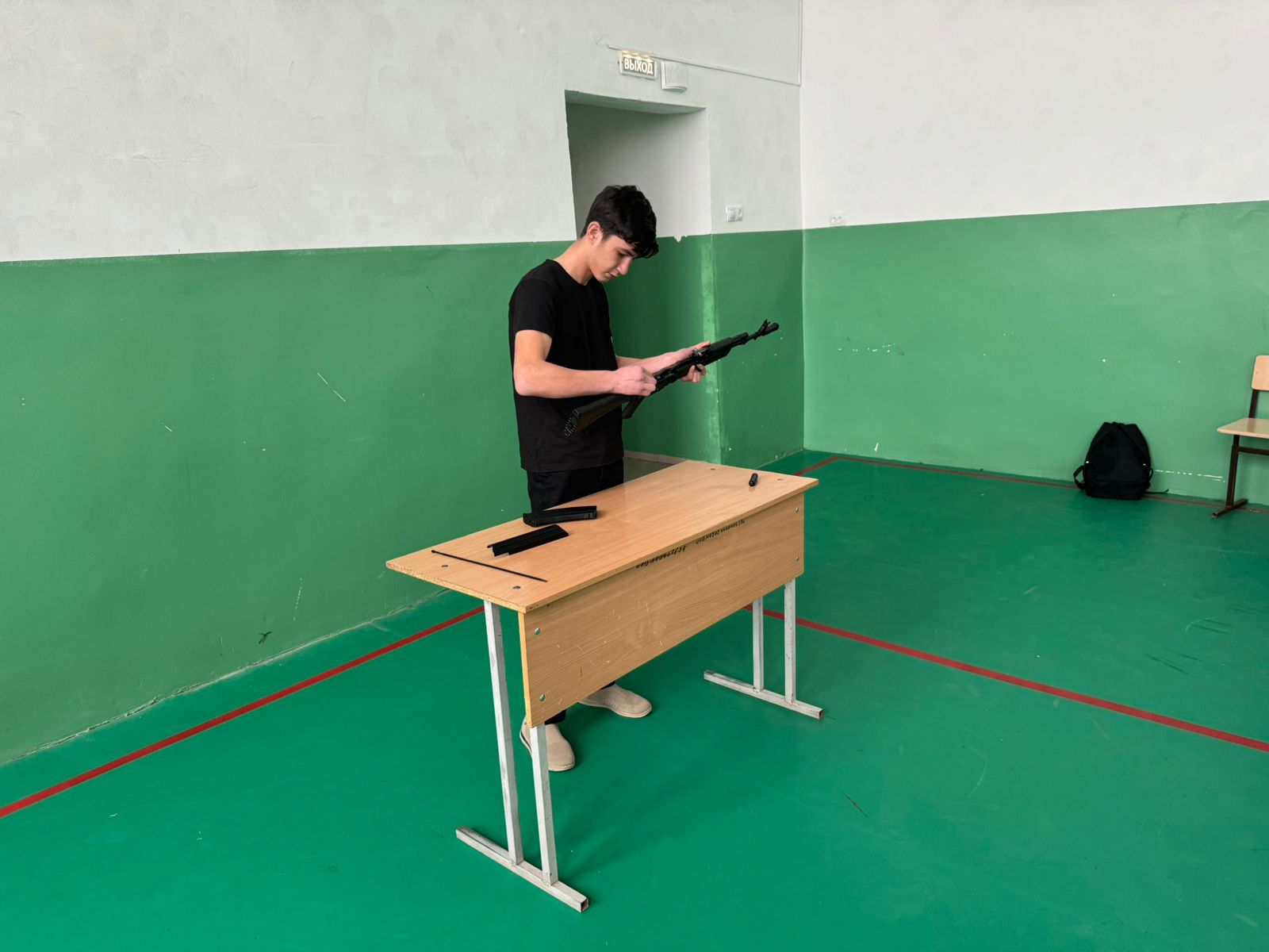 Инасаламов Я.Д. разъяснил учащимся порядок неполной и полной разборки АК-74, а также его сборки. Ребята узнали, что неполная разборка применяется во время чистки, смазки и осмотра автомата, а полная — для чистки при сильном загрязнении автомата, после нахождения его под дождем или в снегу, при переходе на новую смазку и при ремонте.