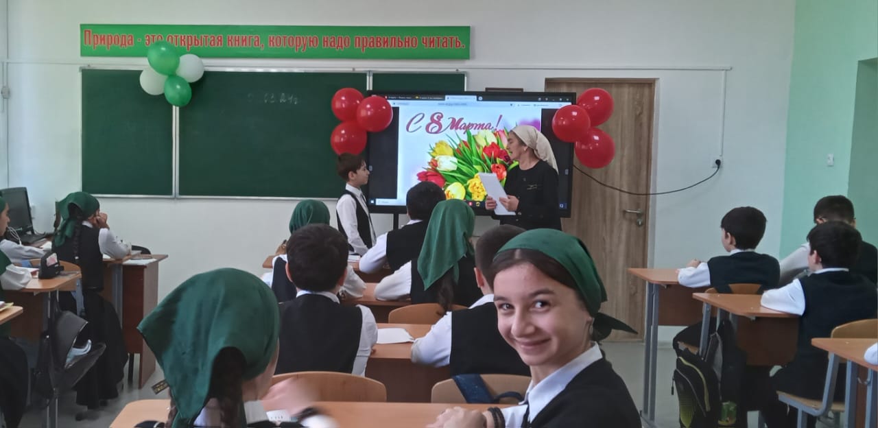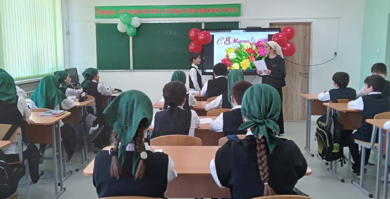 06.03.2024г. Классный руководитель 5 класса Баймурадова Х.Ю. провела классный час на тему : "8 МАРТА".