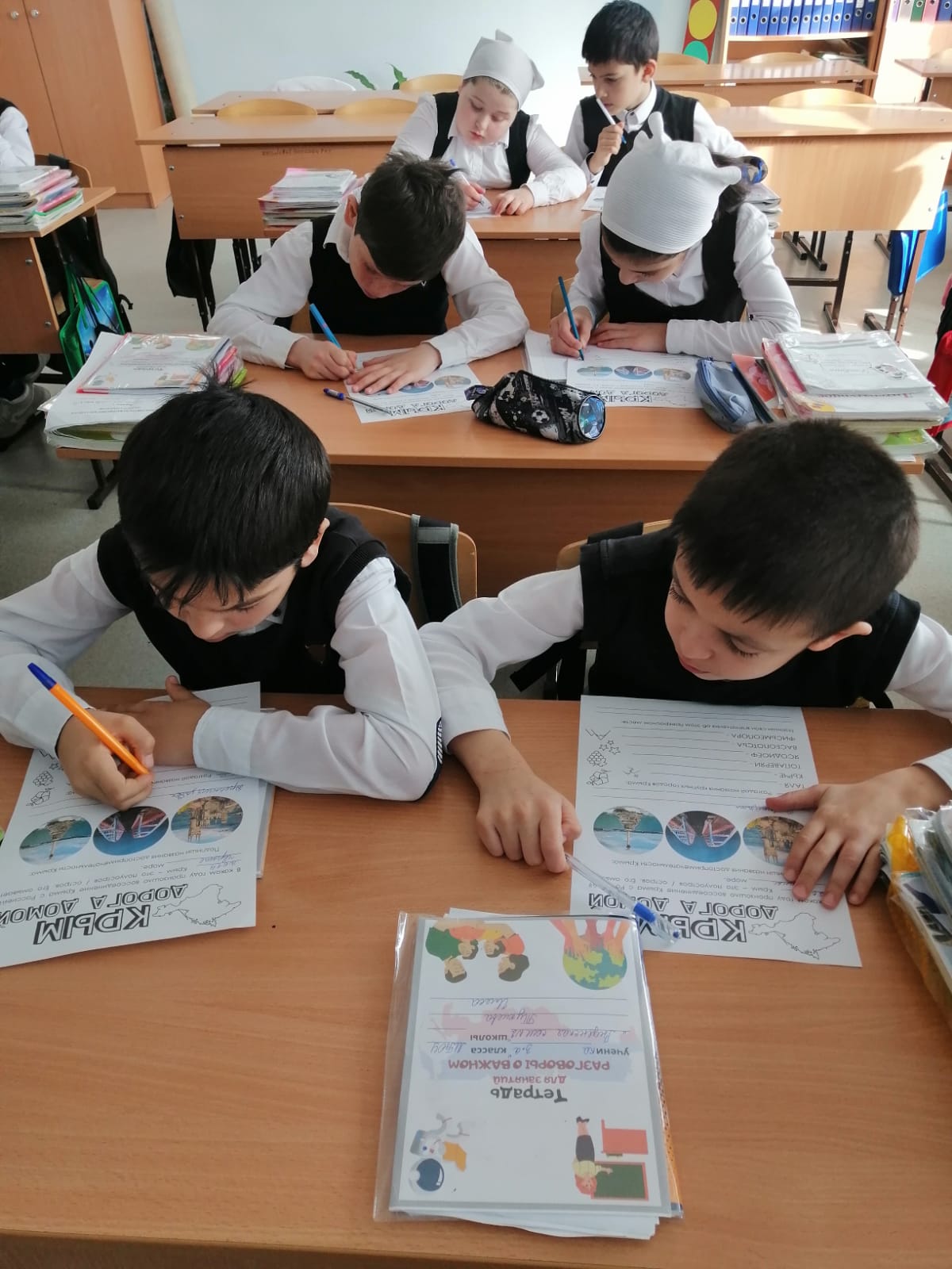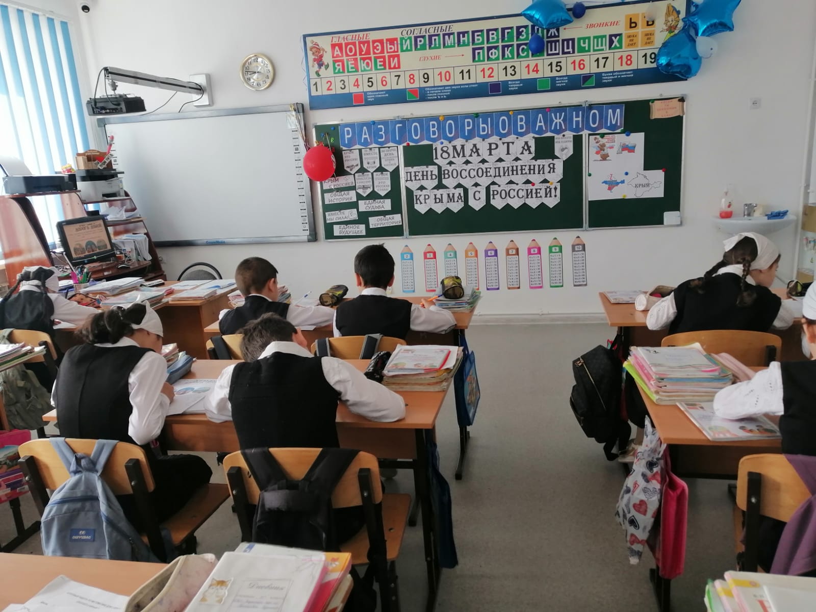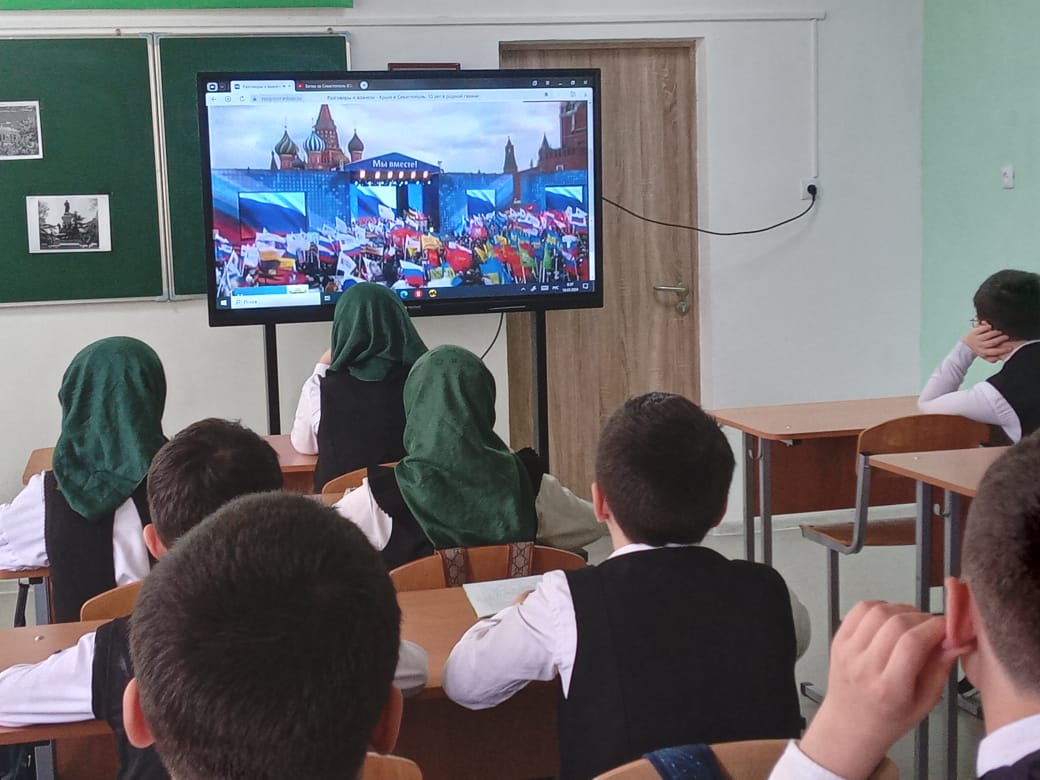18.03.2024г. в МБОУ «Веденская СОШ №2» прошли внеурочные занятия «Разговоры о важном», на тему воссоединения Крыма и Севастополя.