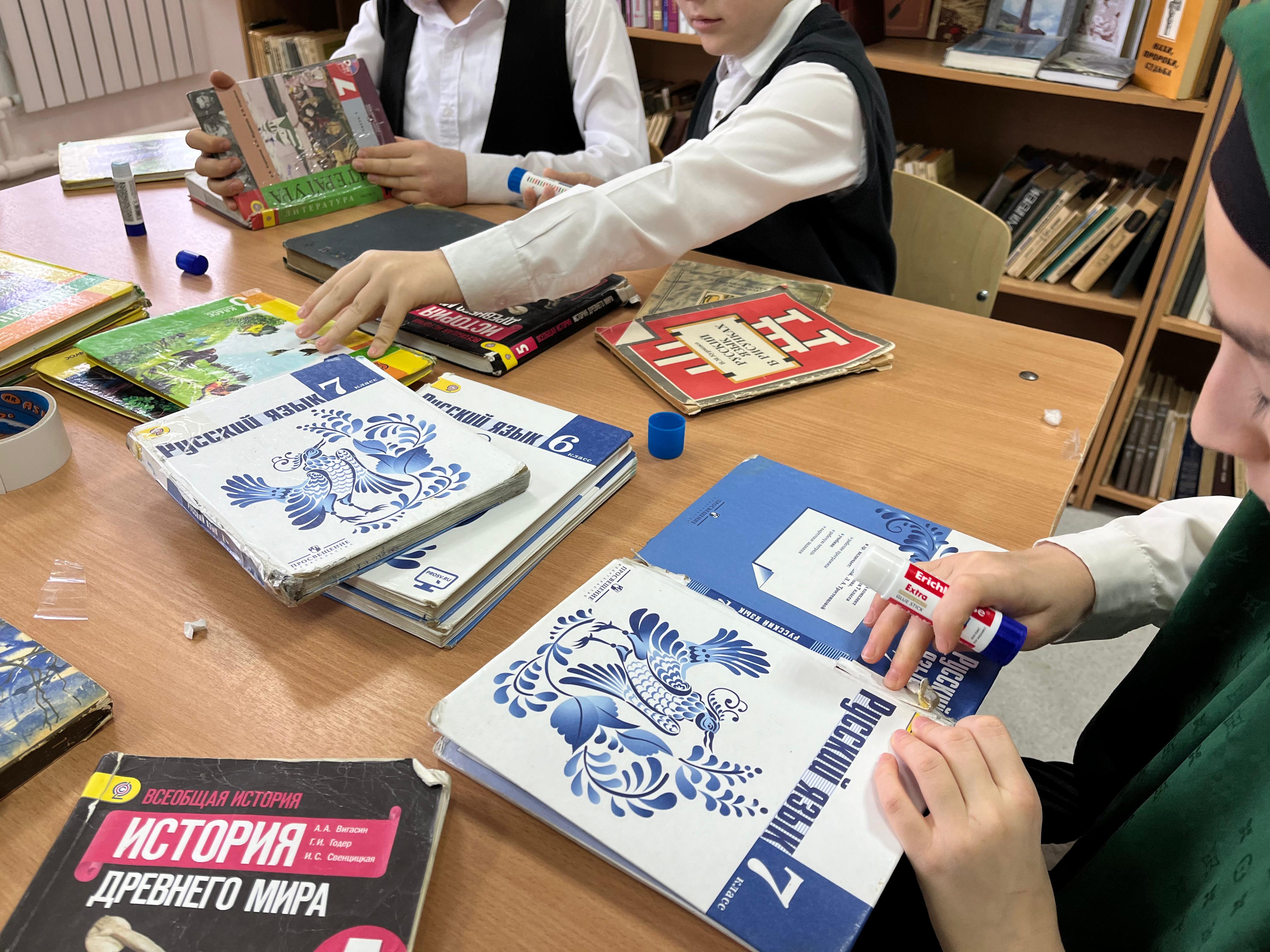 В этот день в школьной библиотеке работала «Книжкина мастерская», где ребята подклеили оторванные обложки, страницы книг и тем самым подарили им новую жизнь.