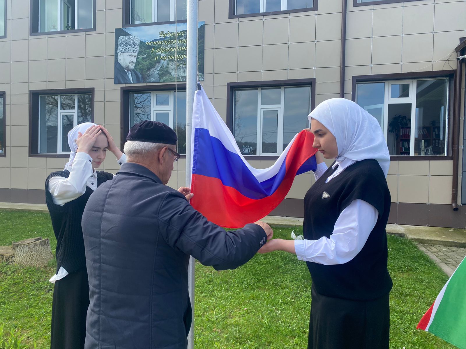 Церемония поднятия флагов РФ и ЧР.