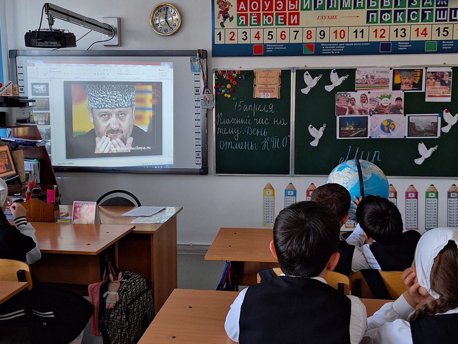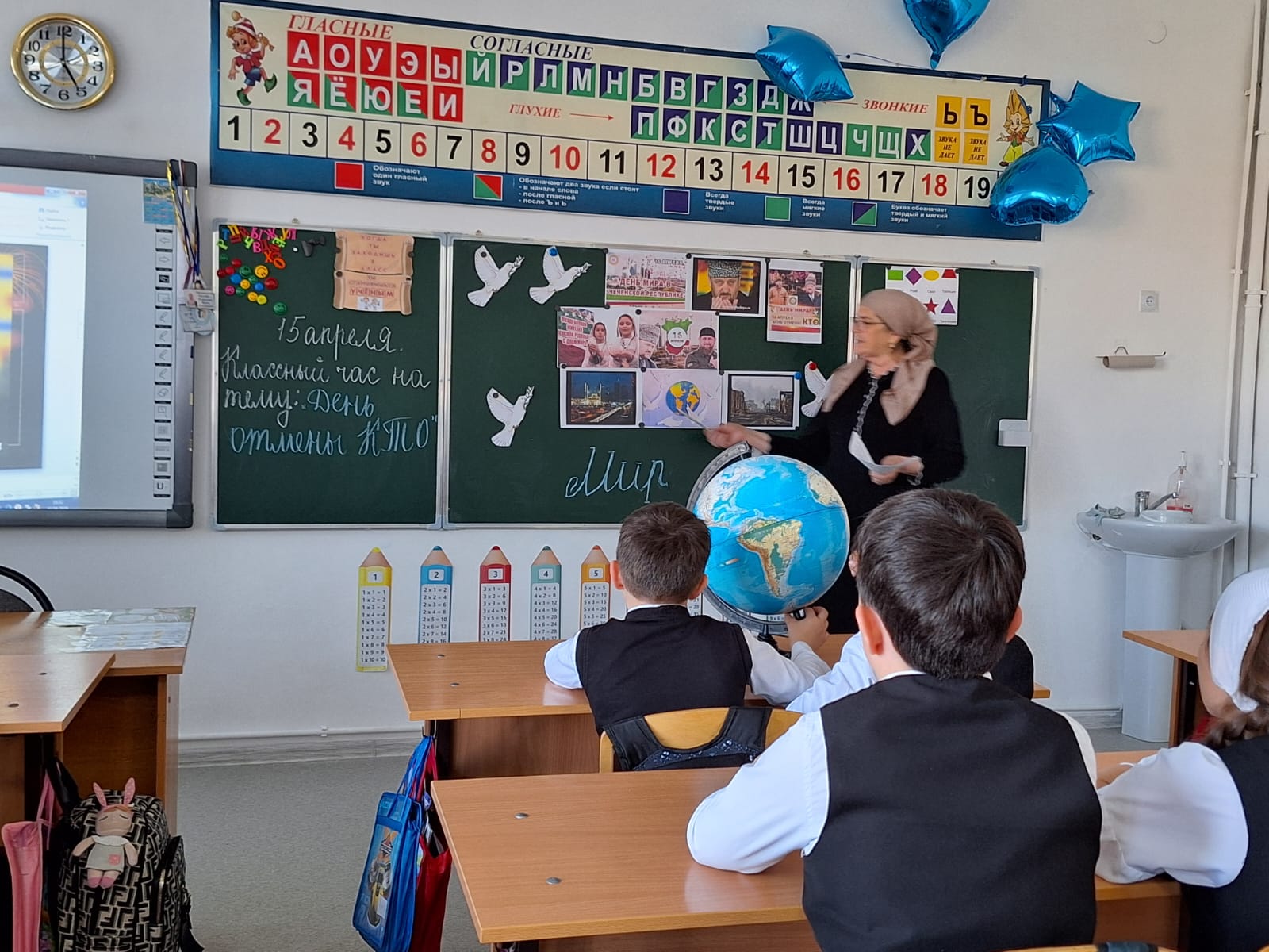 15.04.2024г. классный руководитель Исраилова И.С. провела классный час в 3 "А" и 3 "В" классе на тему:"День Мира.Отмена КТО".