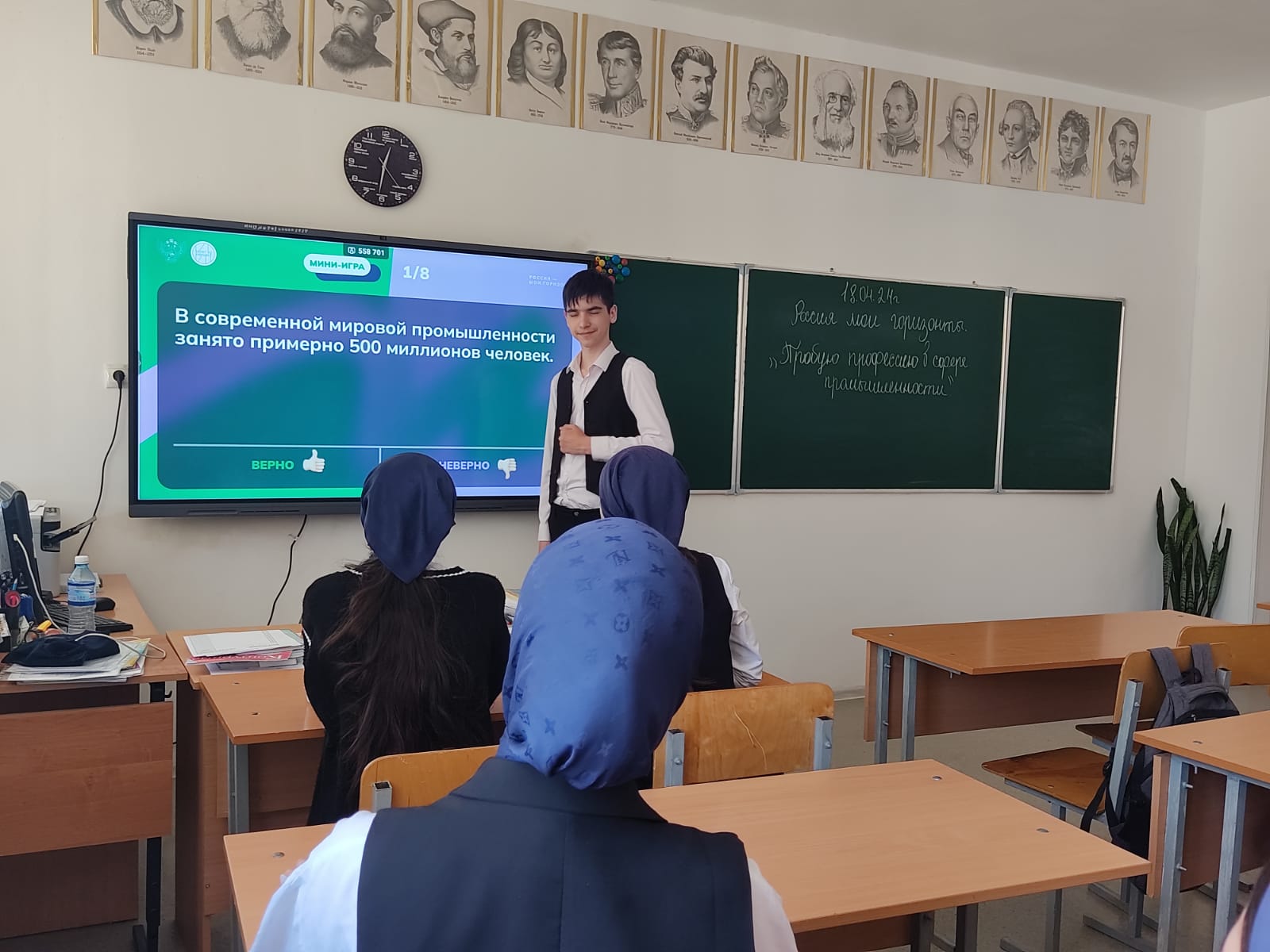 18.04.2024г. в МБОУ «Веденская СОШ №2» в рамках профориентационного курса «Россия-мои горизонты» прошли внеурочные занятия на тему «Пробую профессию в сфере промышленности».