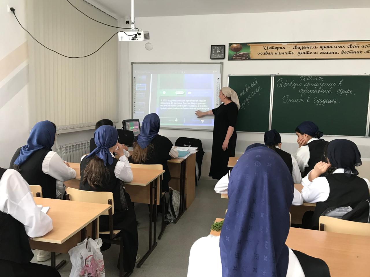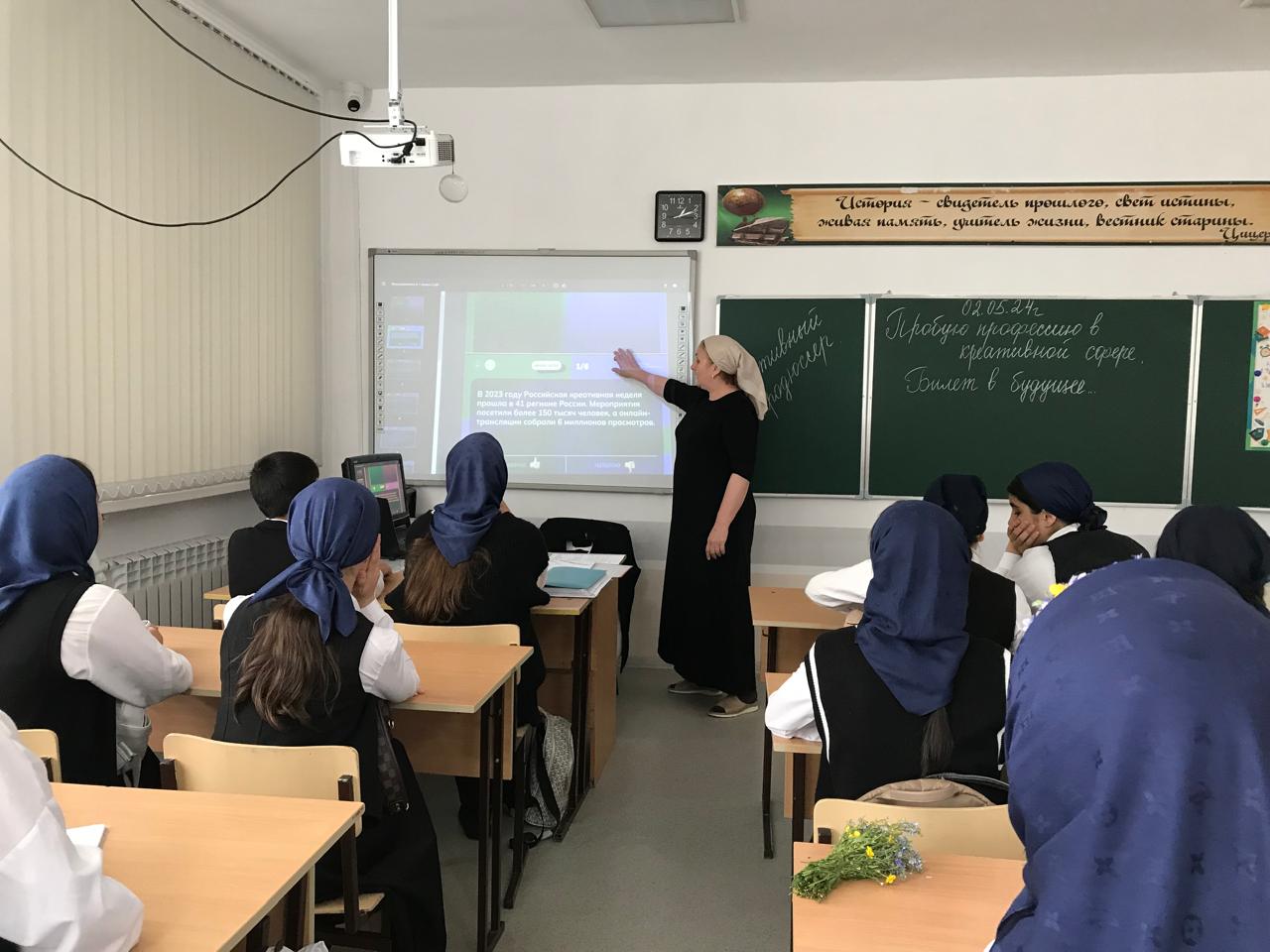 02.05.2024г. в МБОУ «Веденская СОШ №2» прошли внеурочные занятия в рамках проекта «Россия-мои горизонты» на тему «Пробую профессию в креативной сфере».
