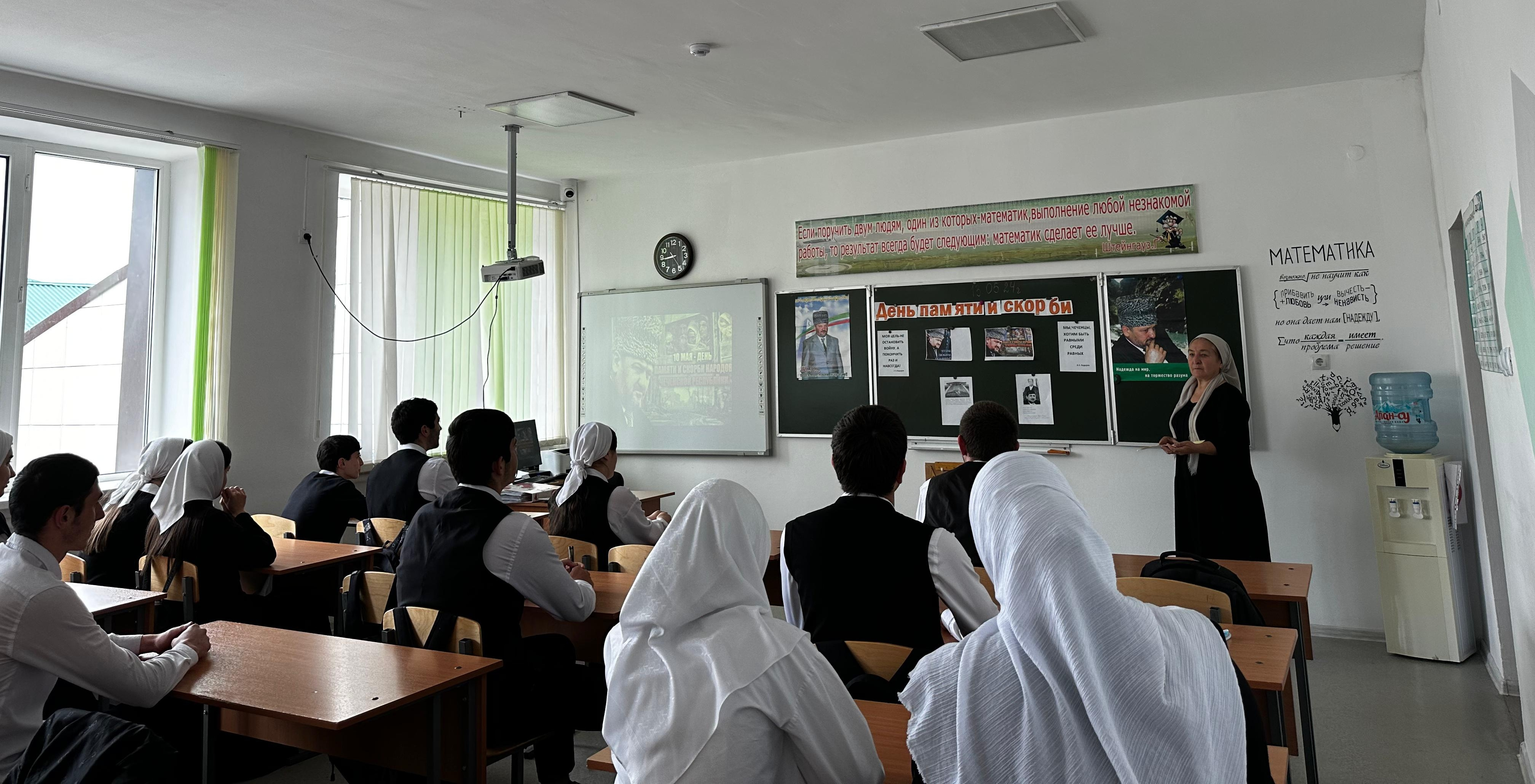 13.05.2024г. Халилаева Эсет Шудиевна провела видеолекторий ко Дню памяти и скорби народов Чеченской Республики «Мы вспомним всех вас поименно» среди учащихся 11 класса.