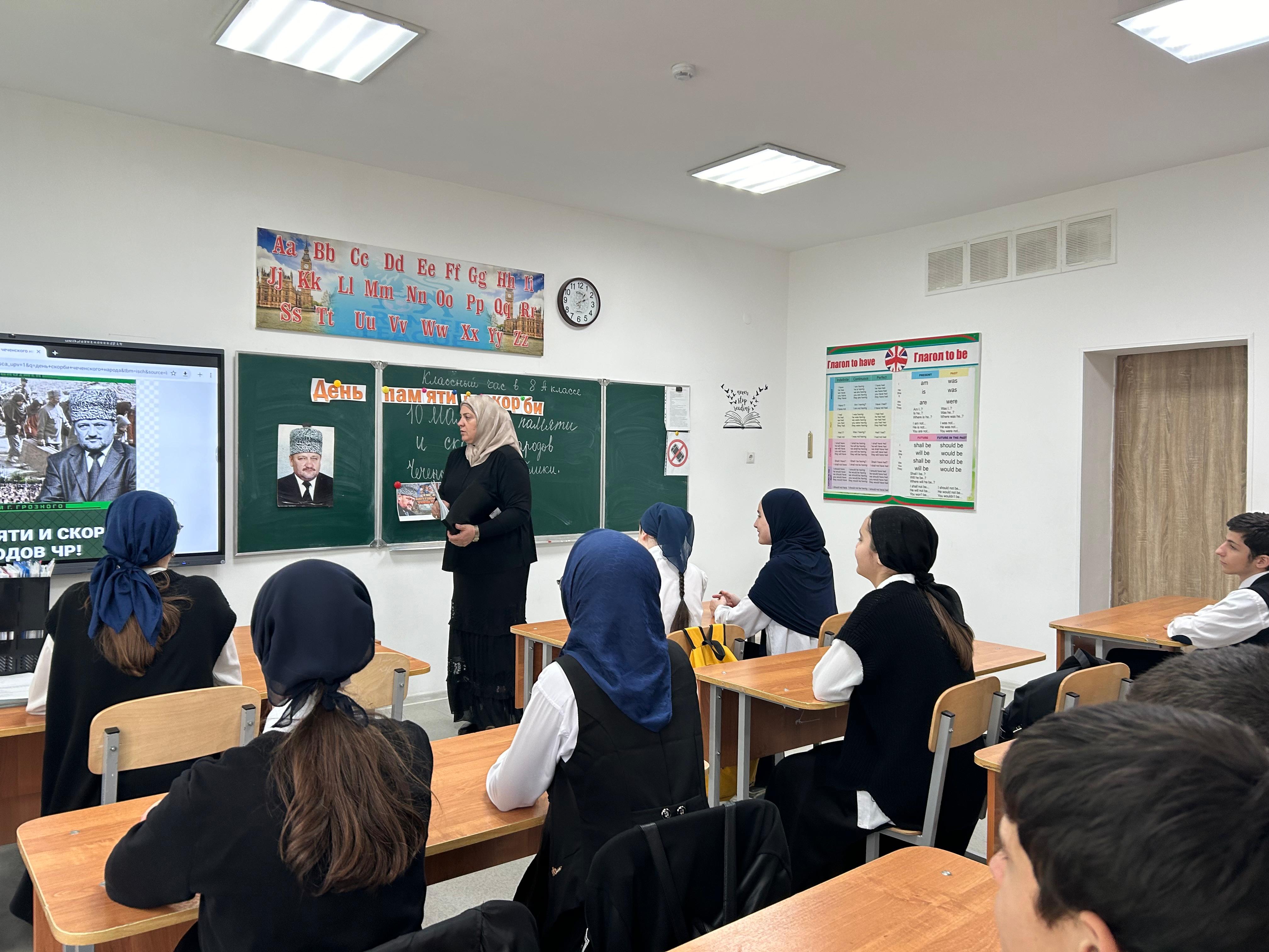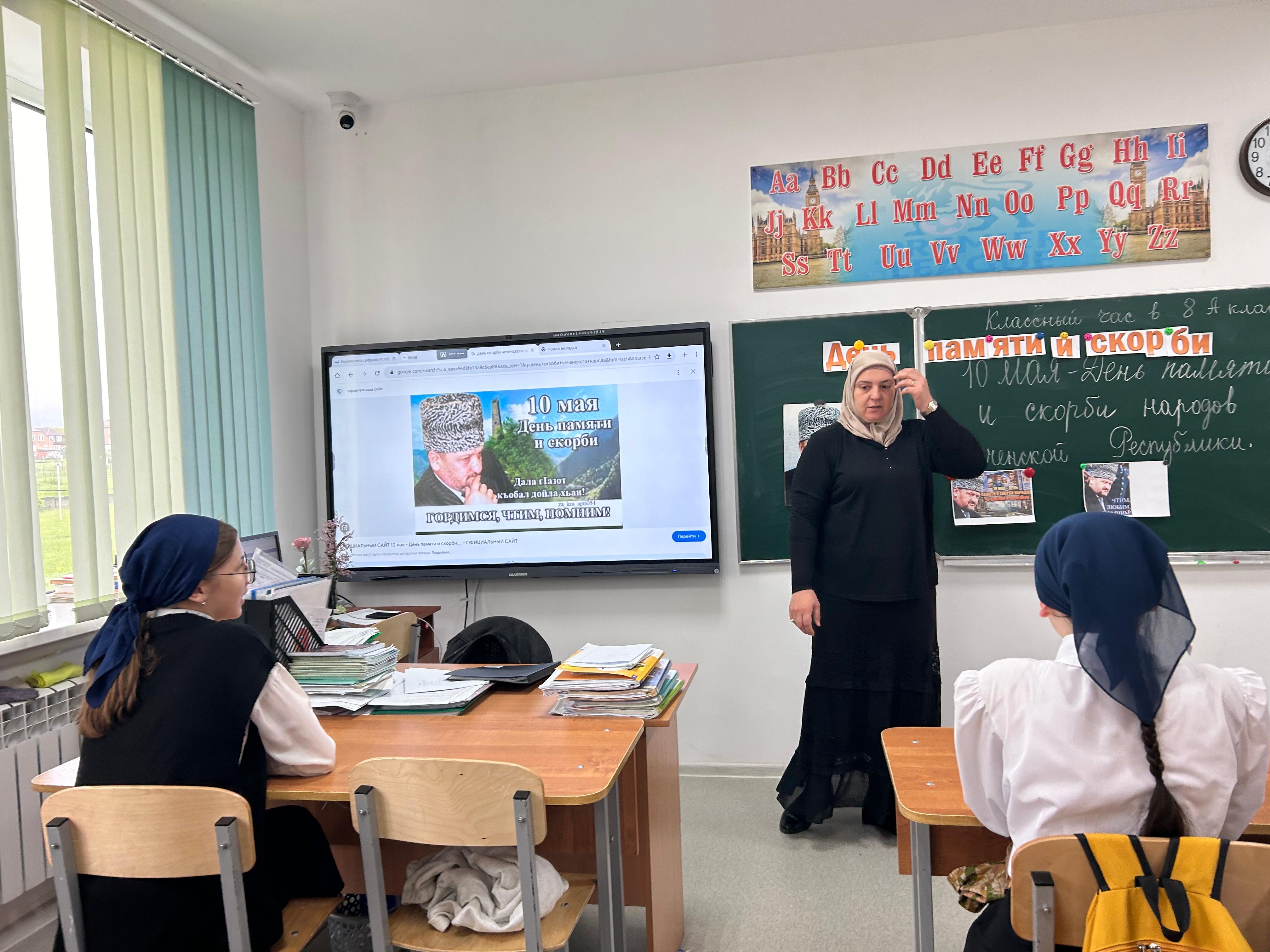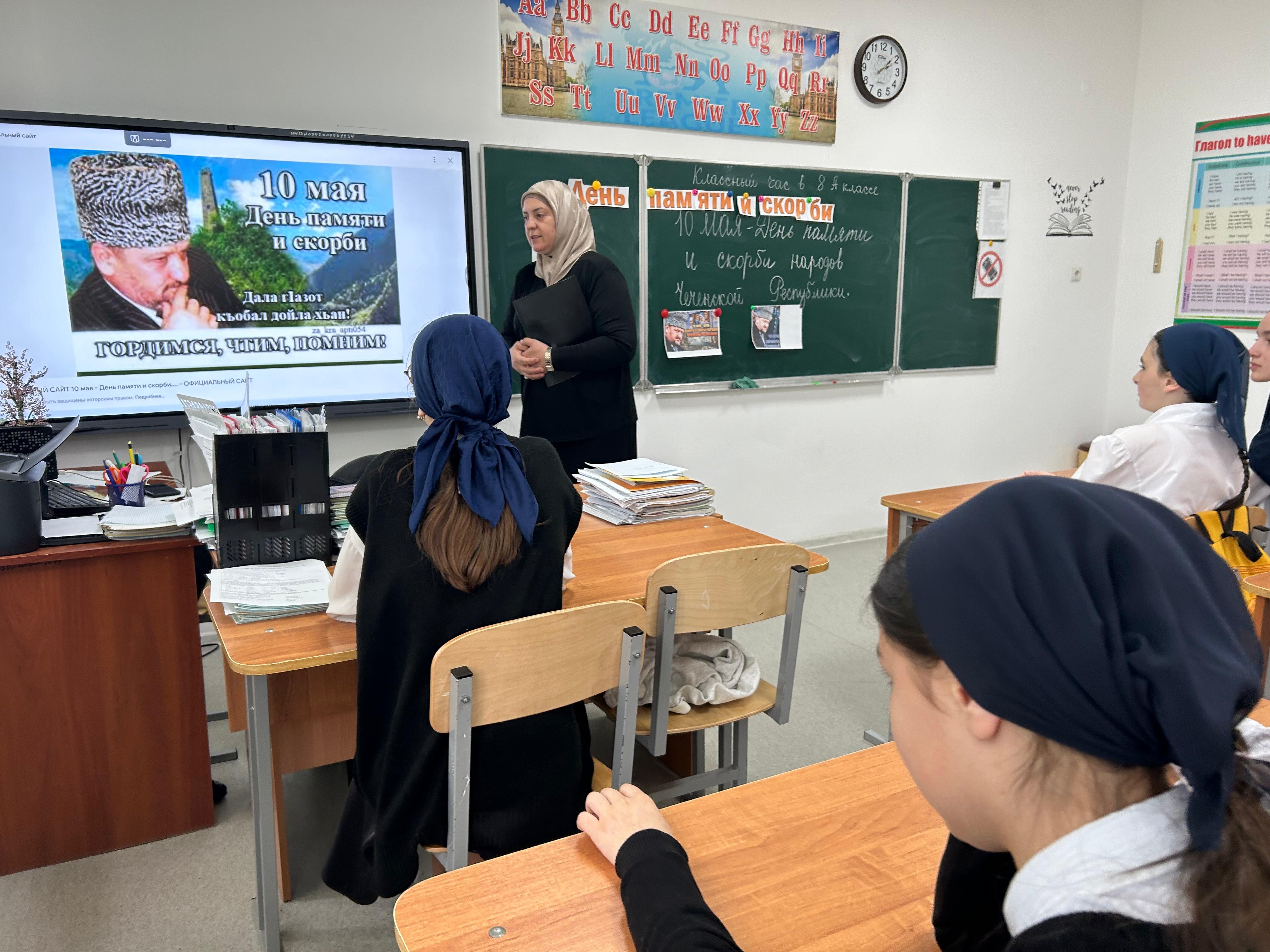 15.05.2024 в 8 "А" классе проведен классный час, посвященный Дню памяти и скорби народов Чеченской Республики.