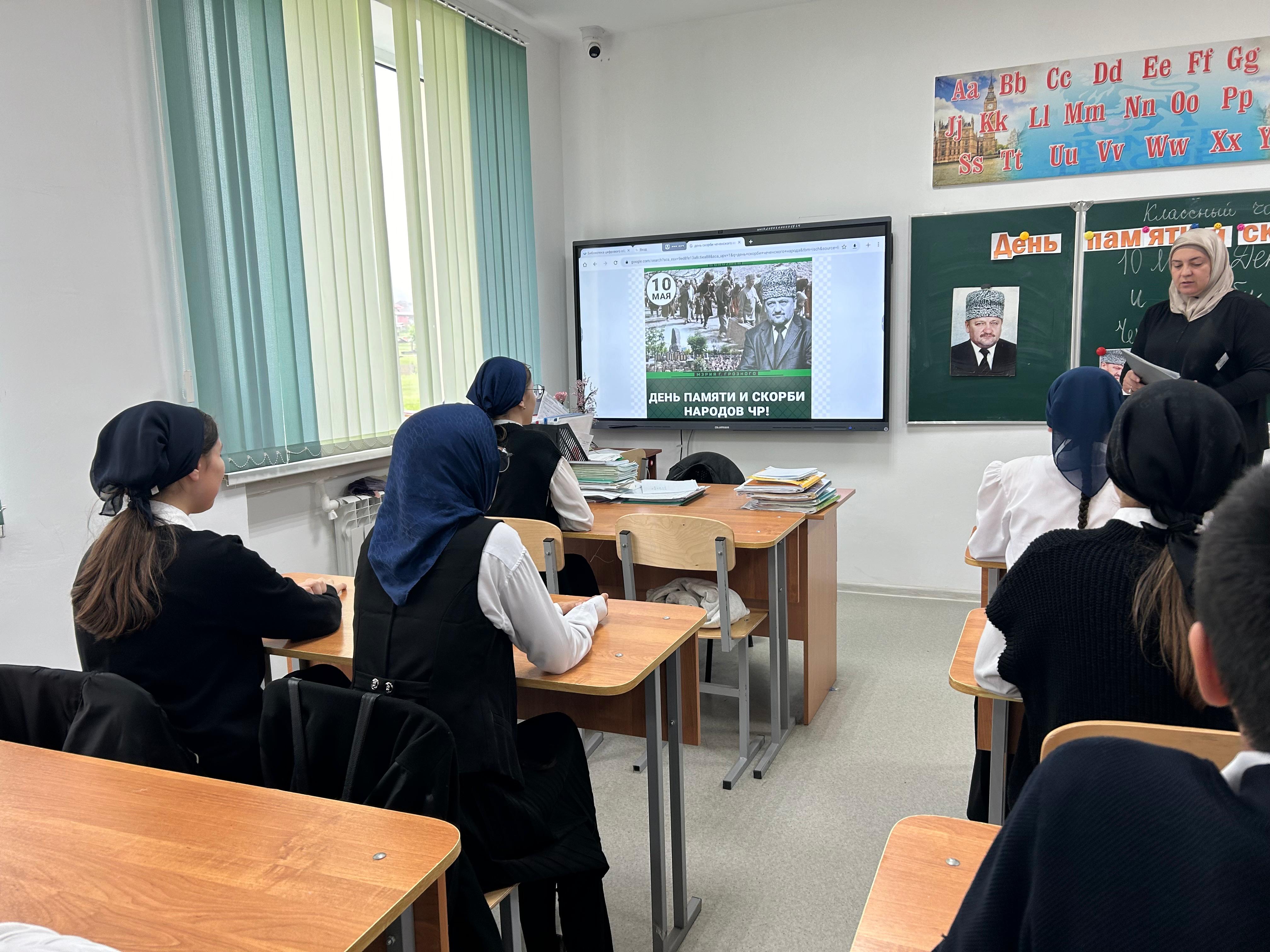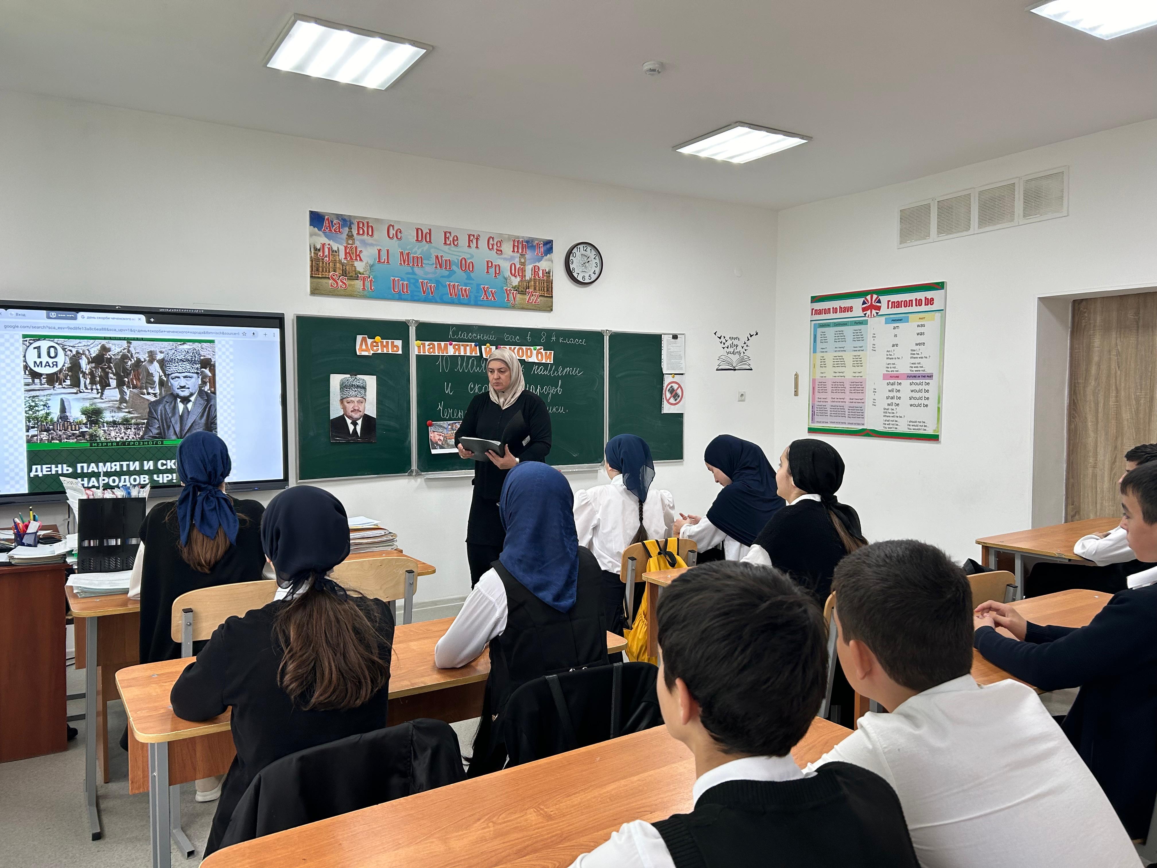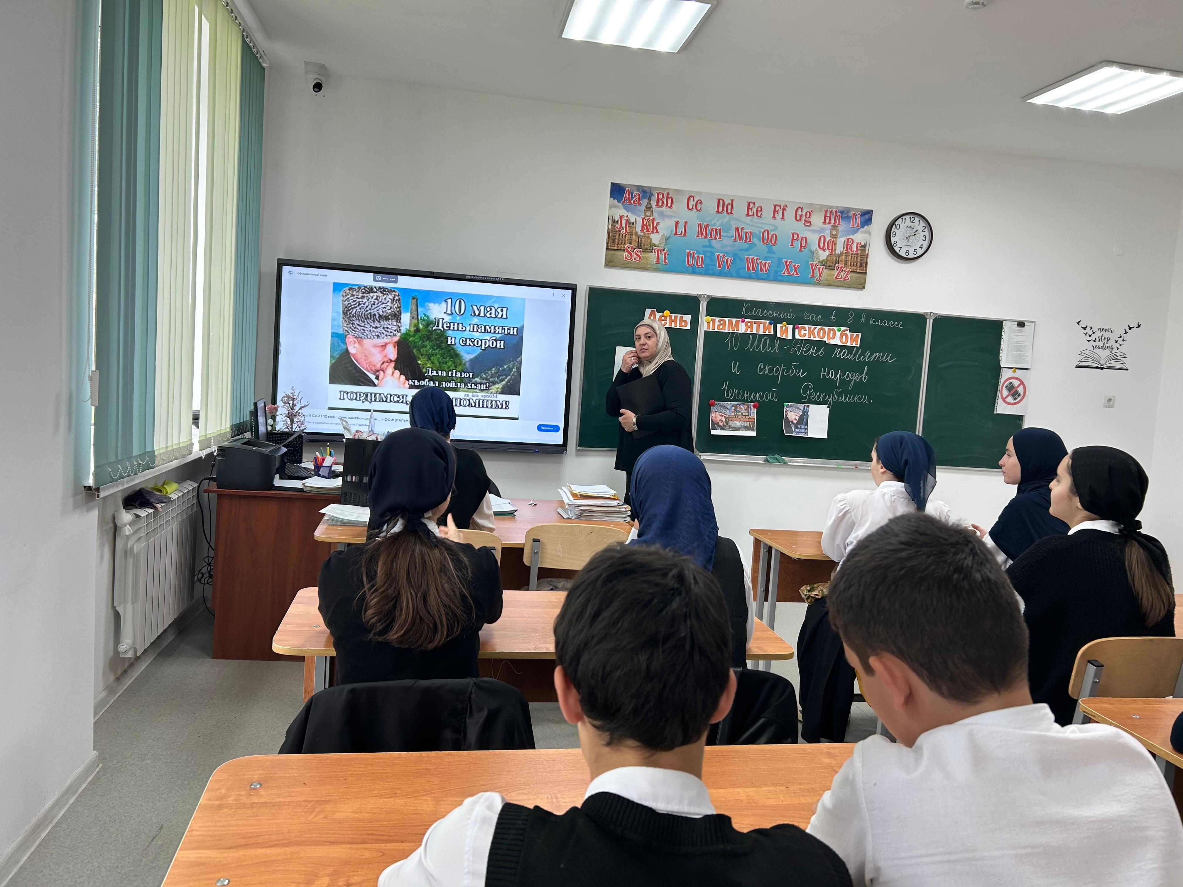 15.05.2024 в 8 "А" классе проведен классный час, посвященный Дню памяти и скорби народов Чеченской Республики.