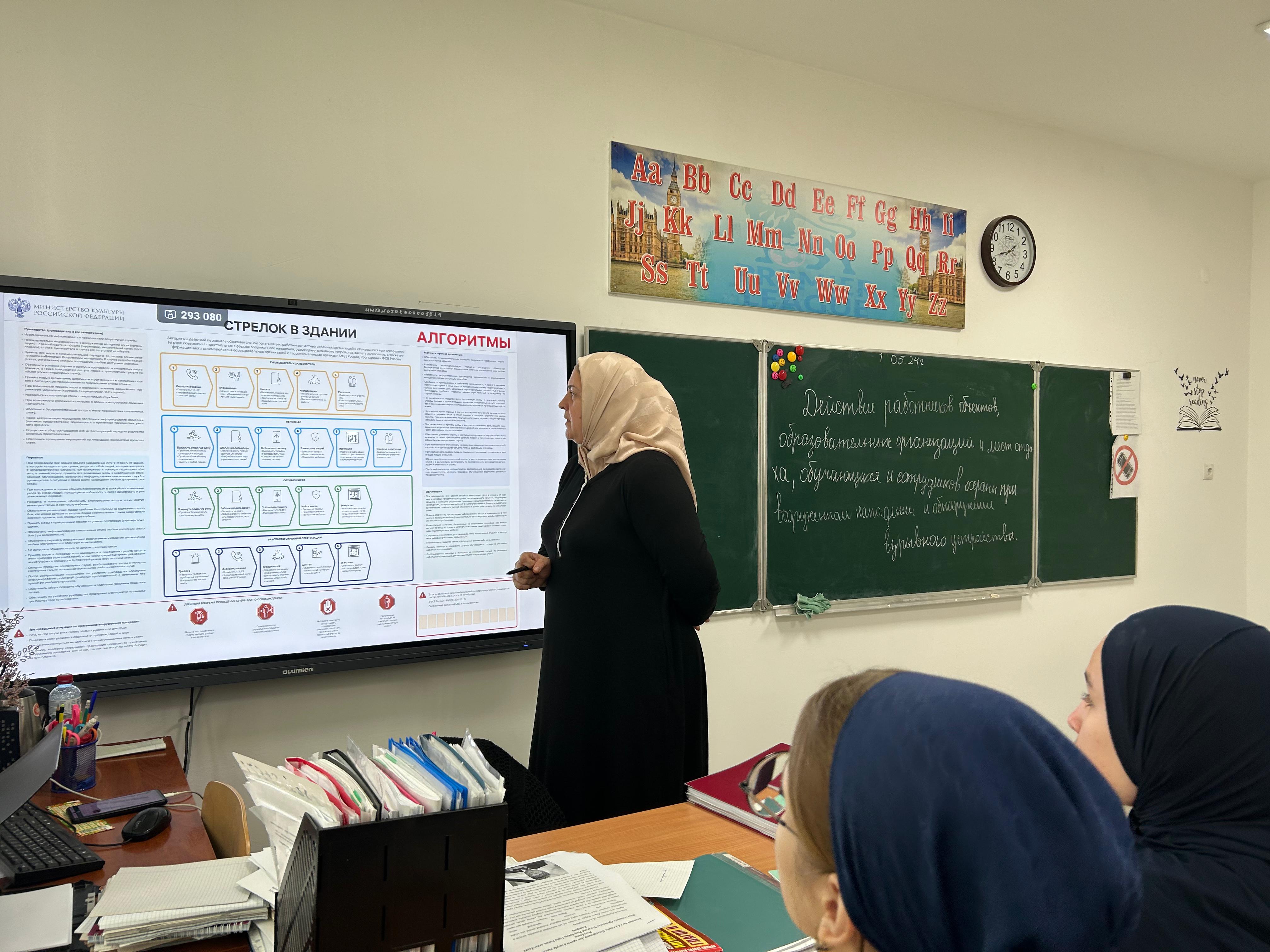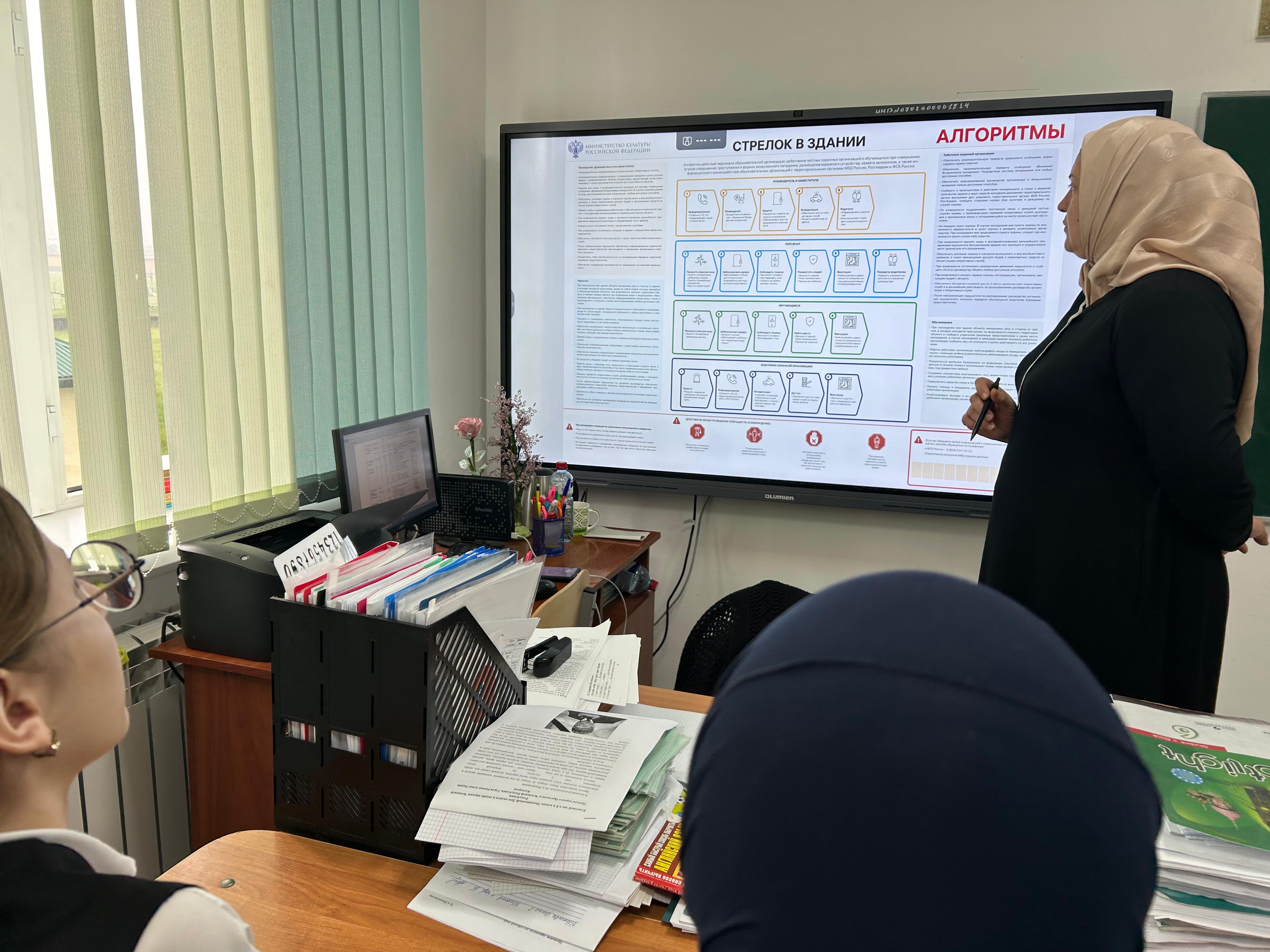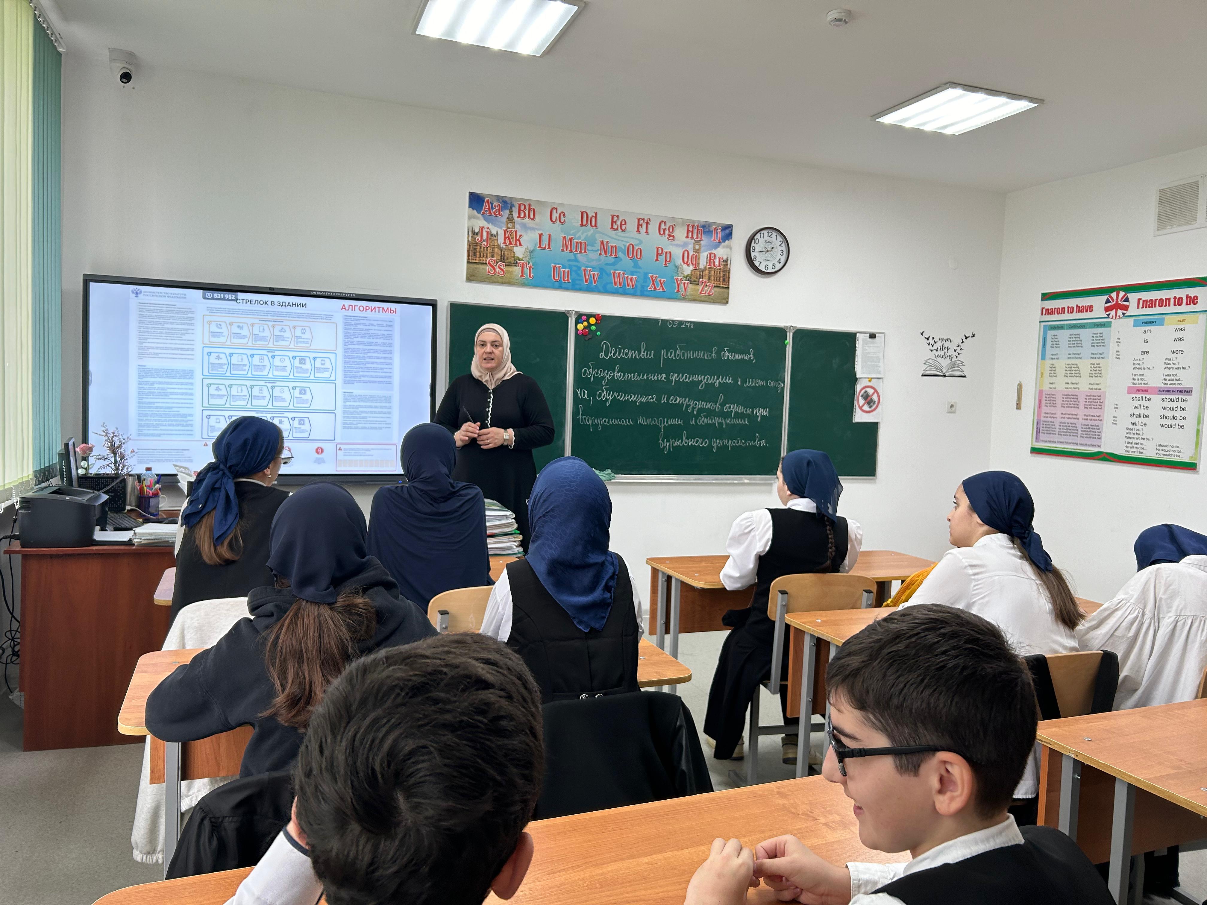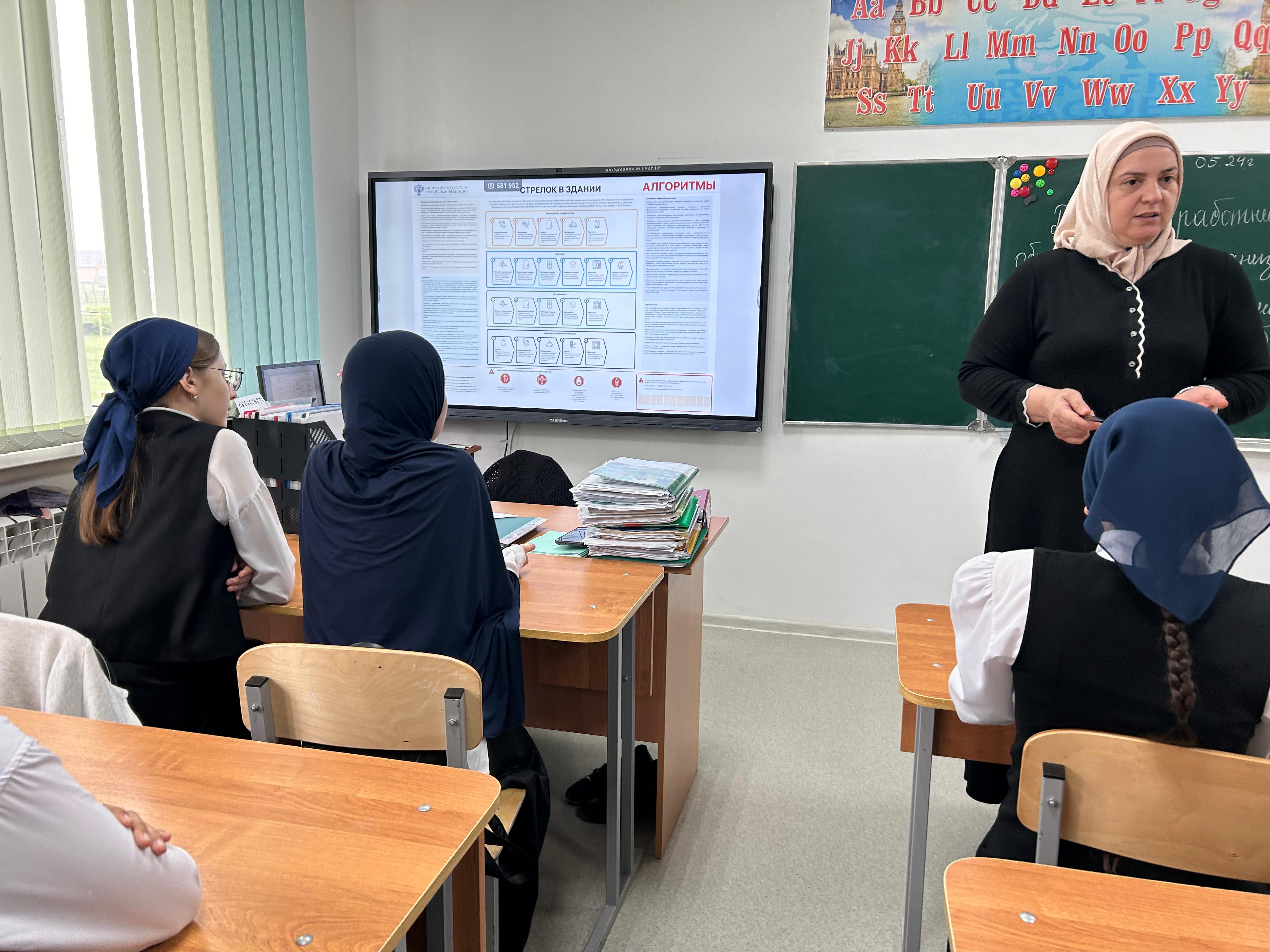 16.05.2024 в 8 "А" классе классным руководителем Инасаламовой И.А ,в рамках темы: "Действия работников обьектов образовательных организаций и мест отдыха обучающихся и сотрудников охраны при вооруженном нападении и обнаружении взрывного устройства" проведена профилактическая беседа.