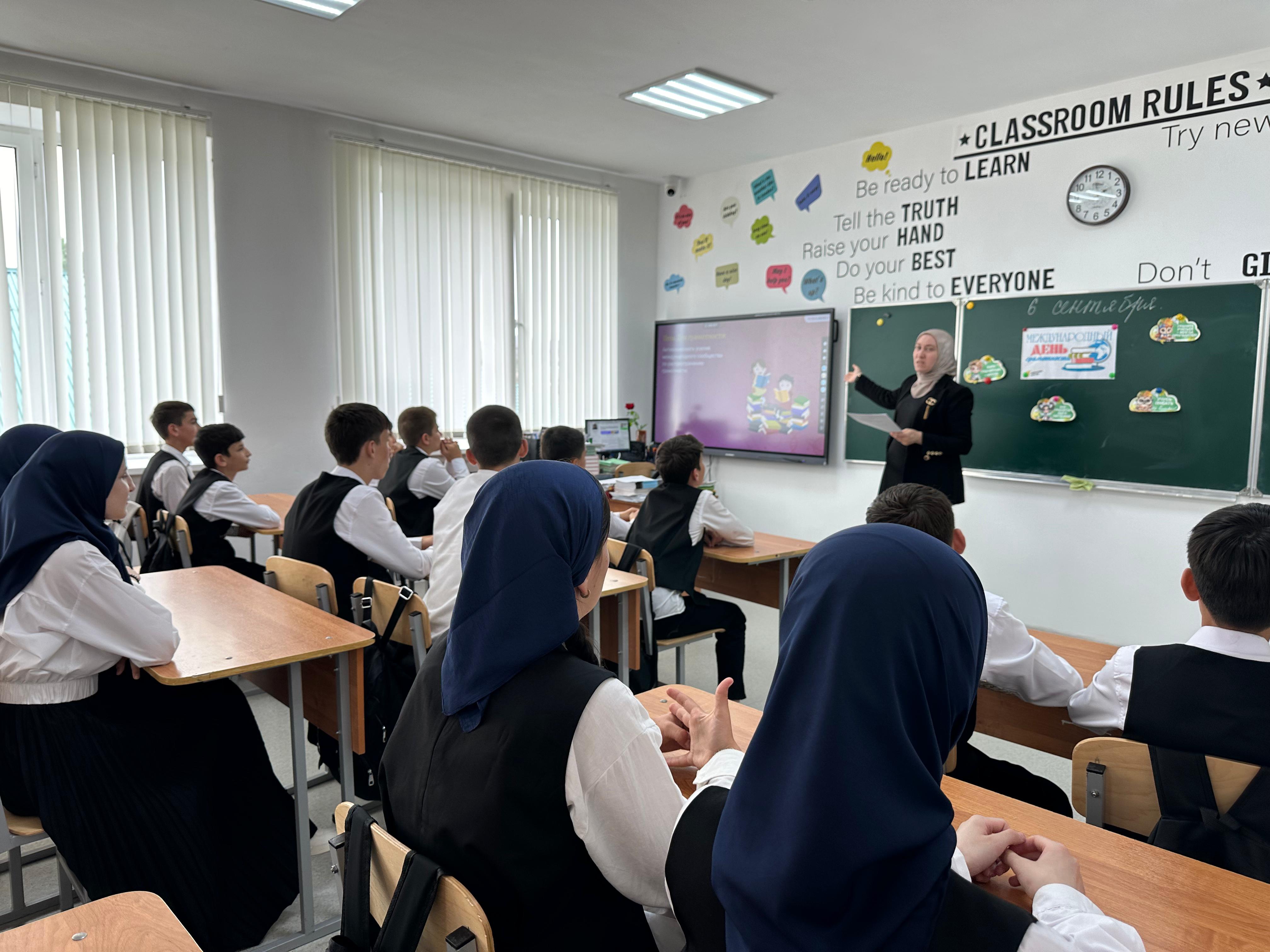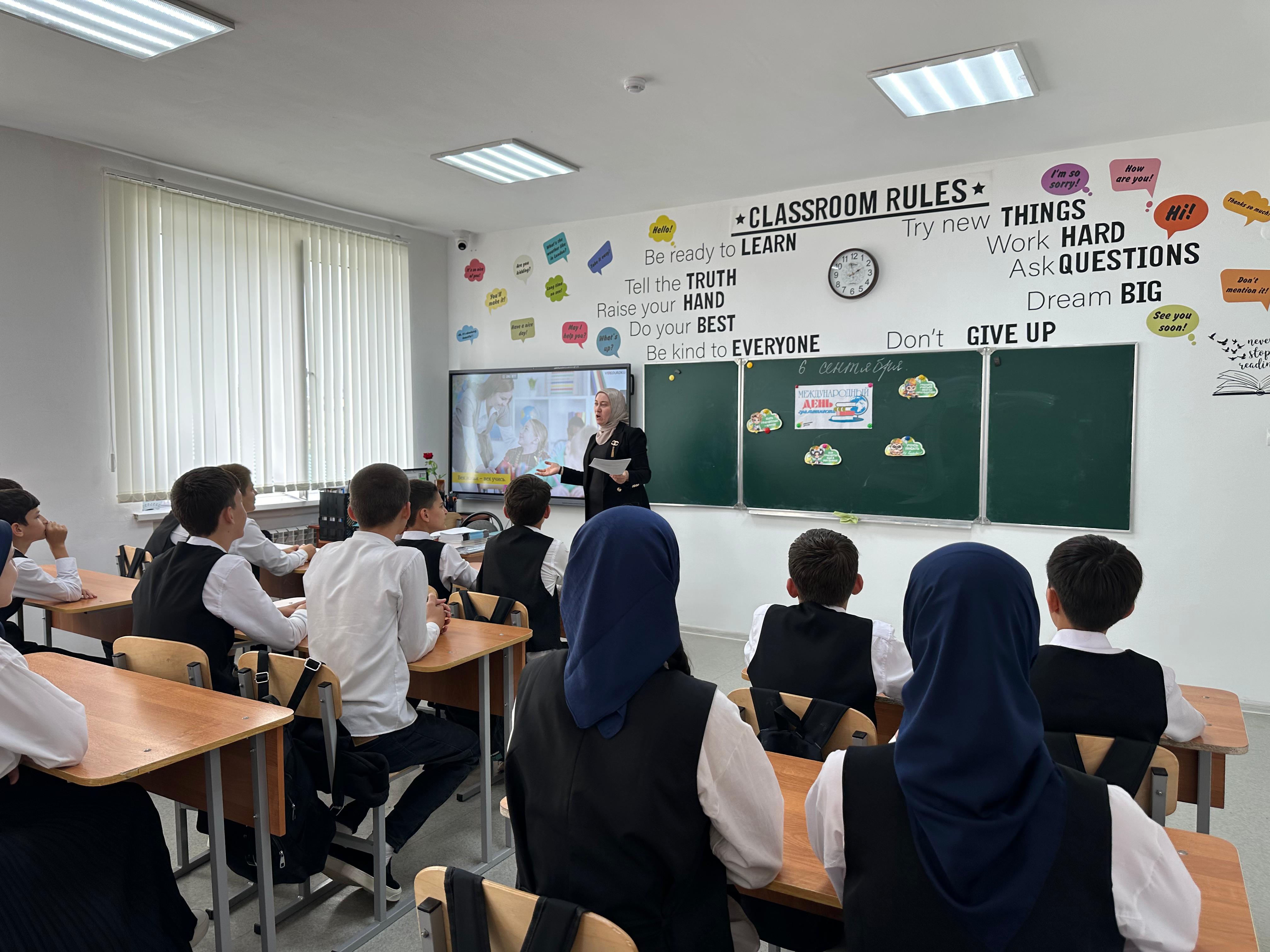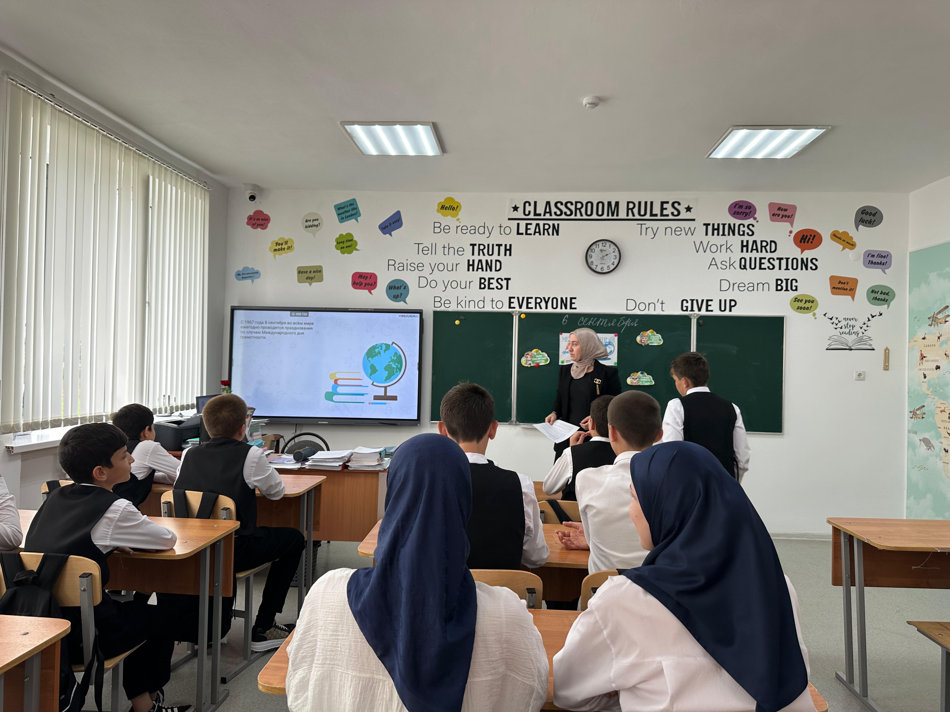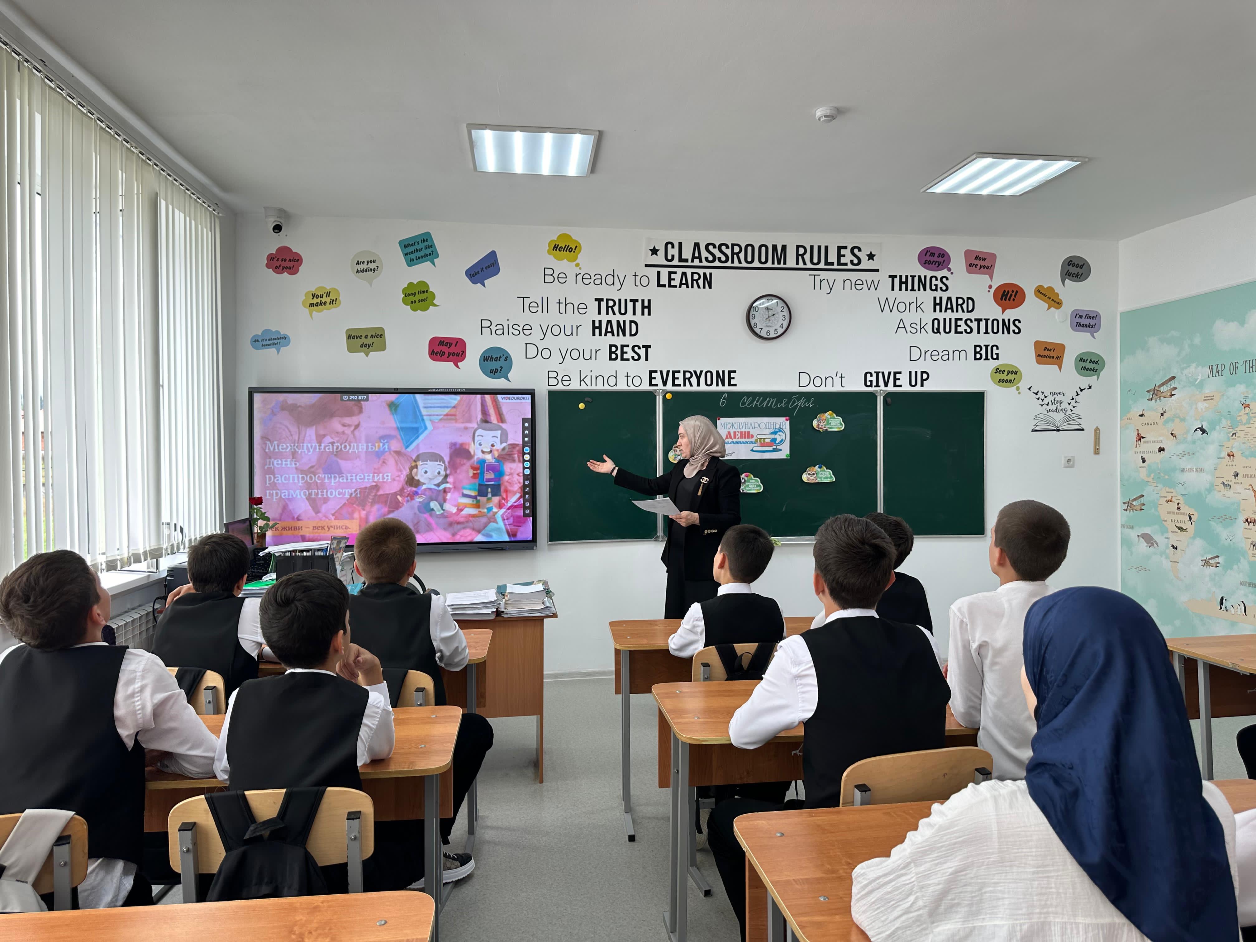 7 сентября 2024 года в МБОУ "Веденская СОШ № 2» было проведено мероприятие, посвящённое Международному дню распространения грамотности. Советник директора по воспитанию и взаимодействию с детскими общественными объединениями Салбанова К.Н. провела кинолекторий с учащимися.