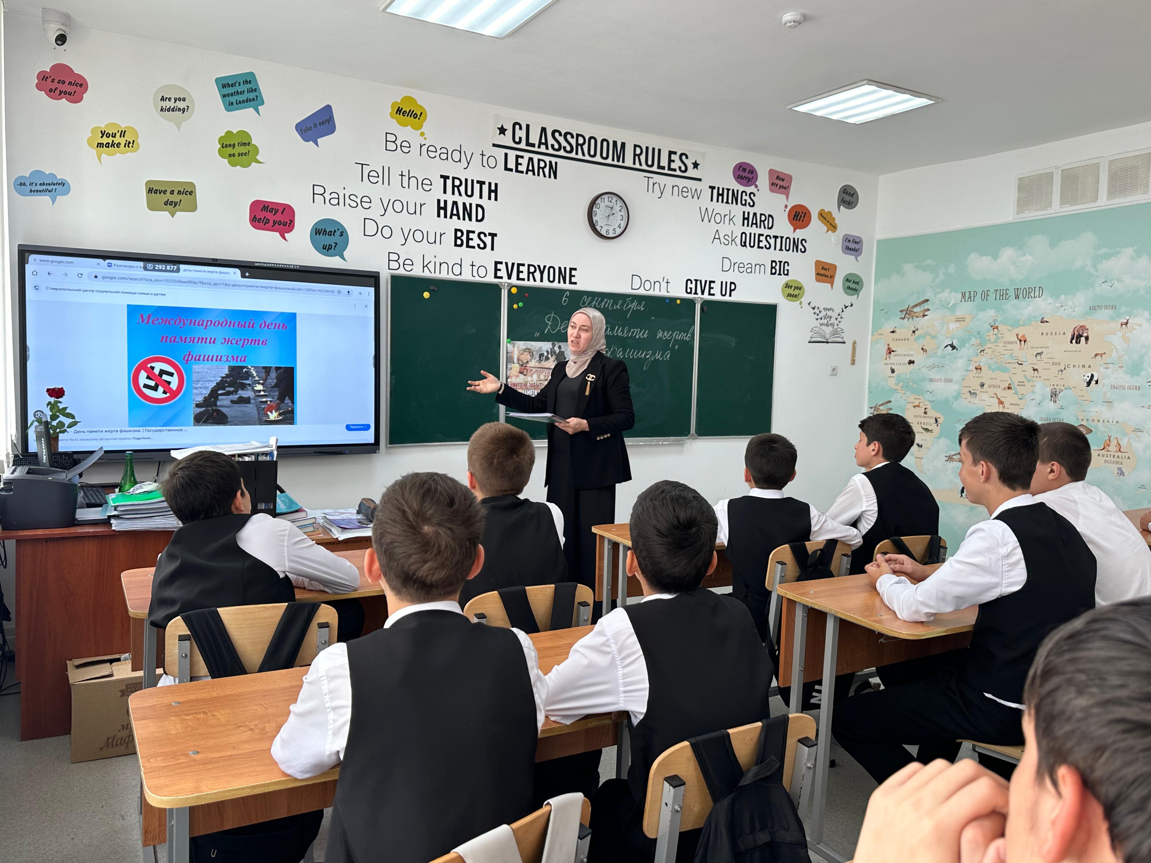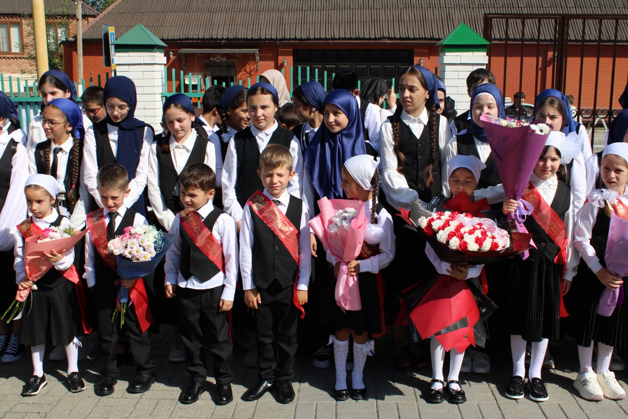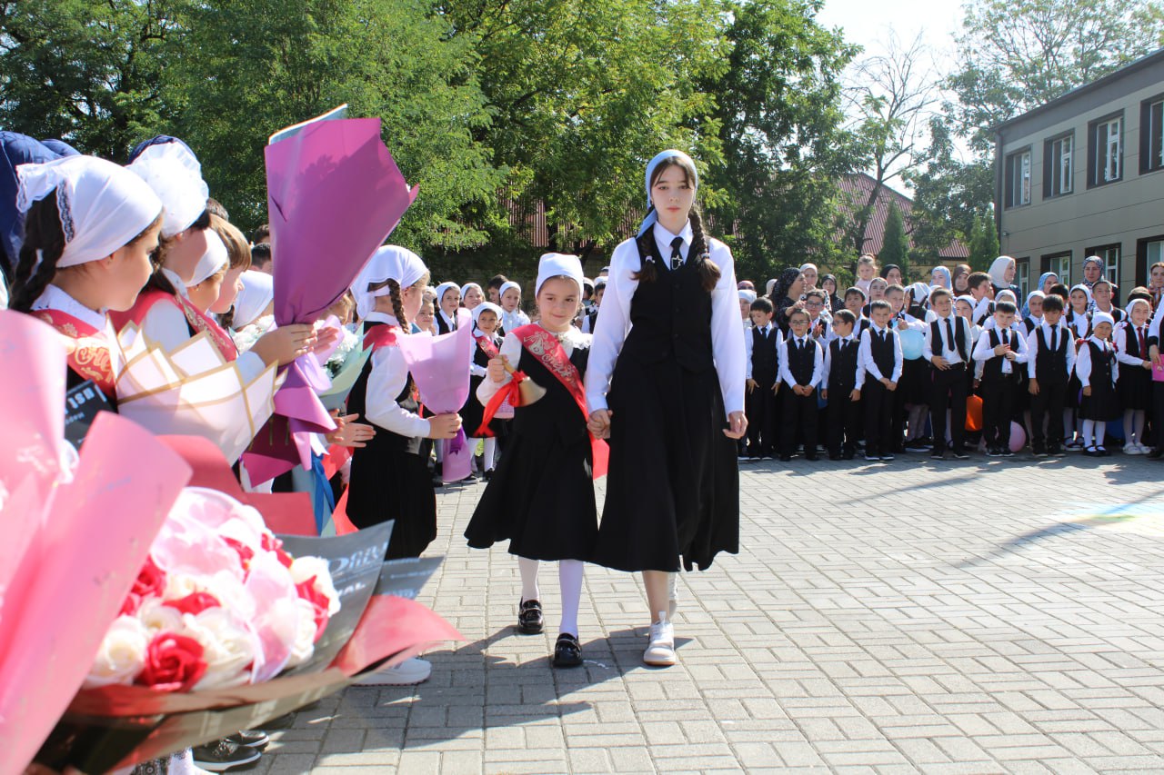 Линейку, посвящённую «Дню Знаний» открыли по традиции с поднятия флагов РФ и ЧР под гимны. После поднятия флагов слово дали заместителю директора по учебно-воспитательной работе Ахматукаевой Л. М. она поздравила всех с началом учебного года и вручила учащимся грамоты за прошлый учебный год.