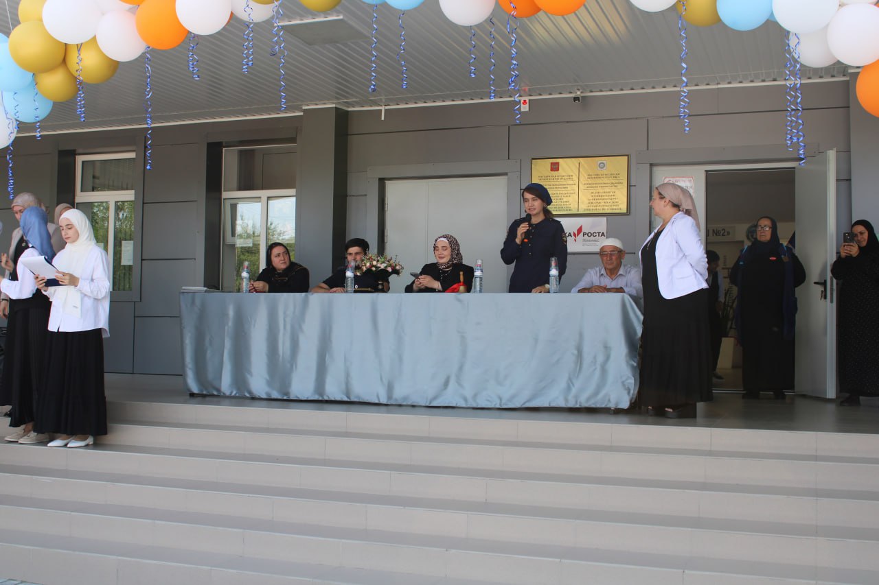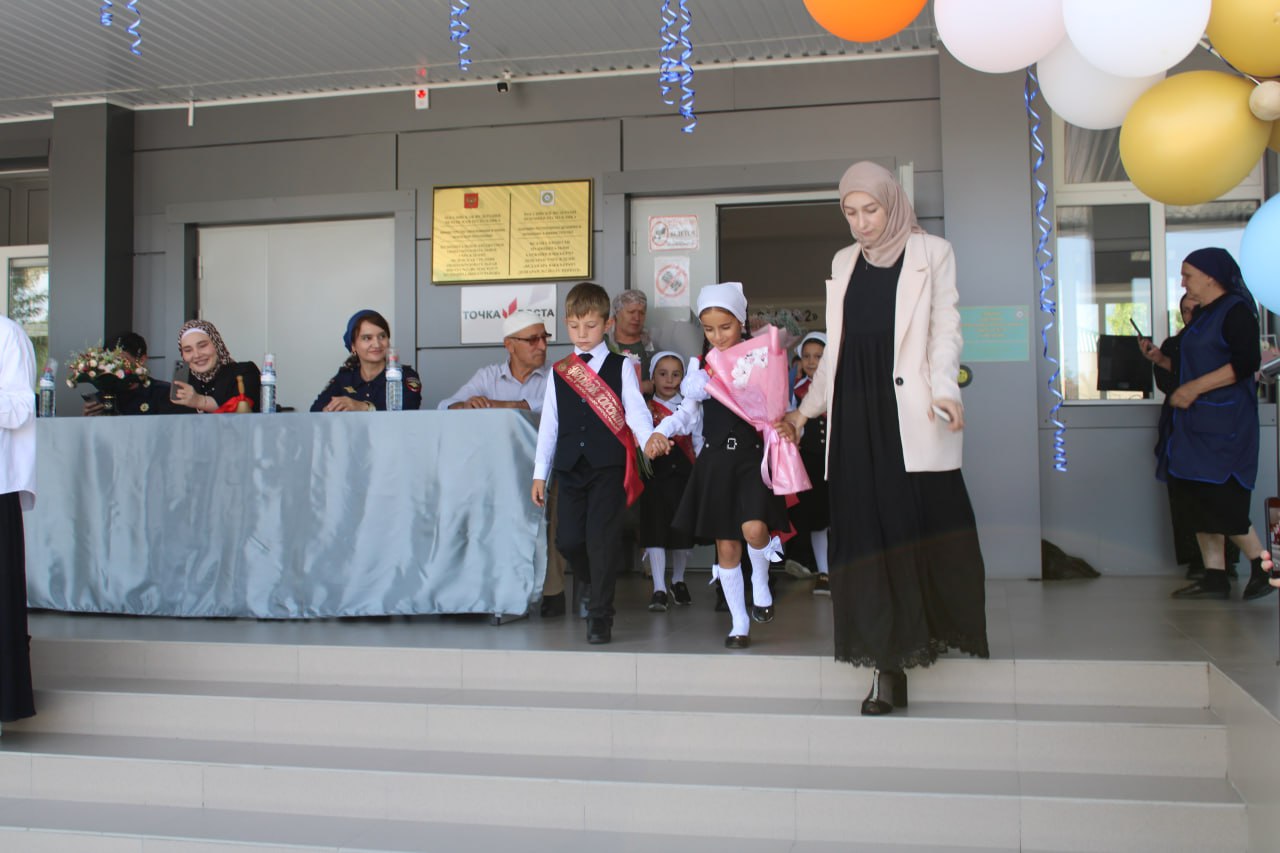 - Районный управ делами Эскиева Х.К., которые поздравили учащихся, родителей и педагогический коллектив школы с началом учебного года.