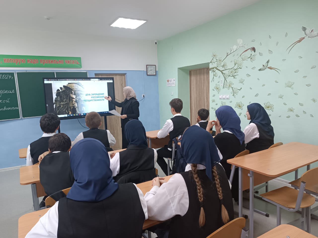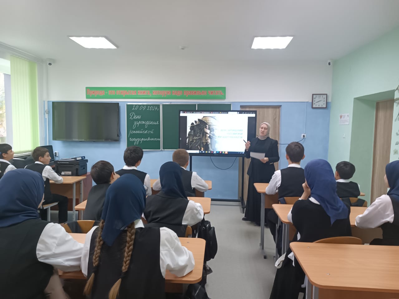 20.09.2024г. в МБОУ «Веденская СОШ №2» советник директора по воспитанию и взаимодействию с детскими общественными объединениями Салбанова К.Н. провела кинолекторий на тему «День зарождения российской государственности».