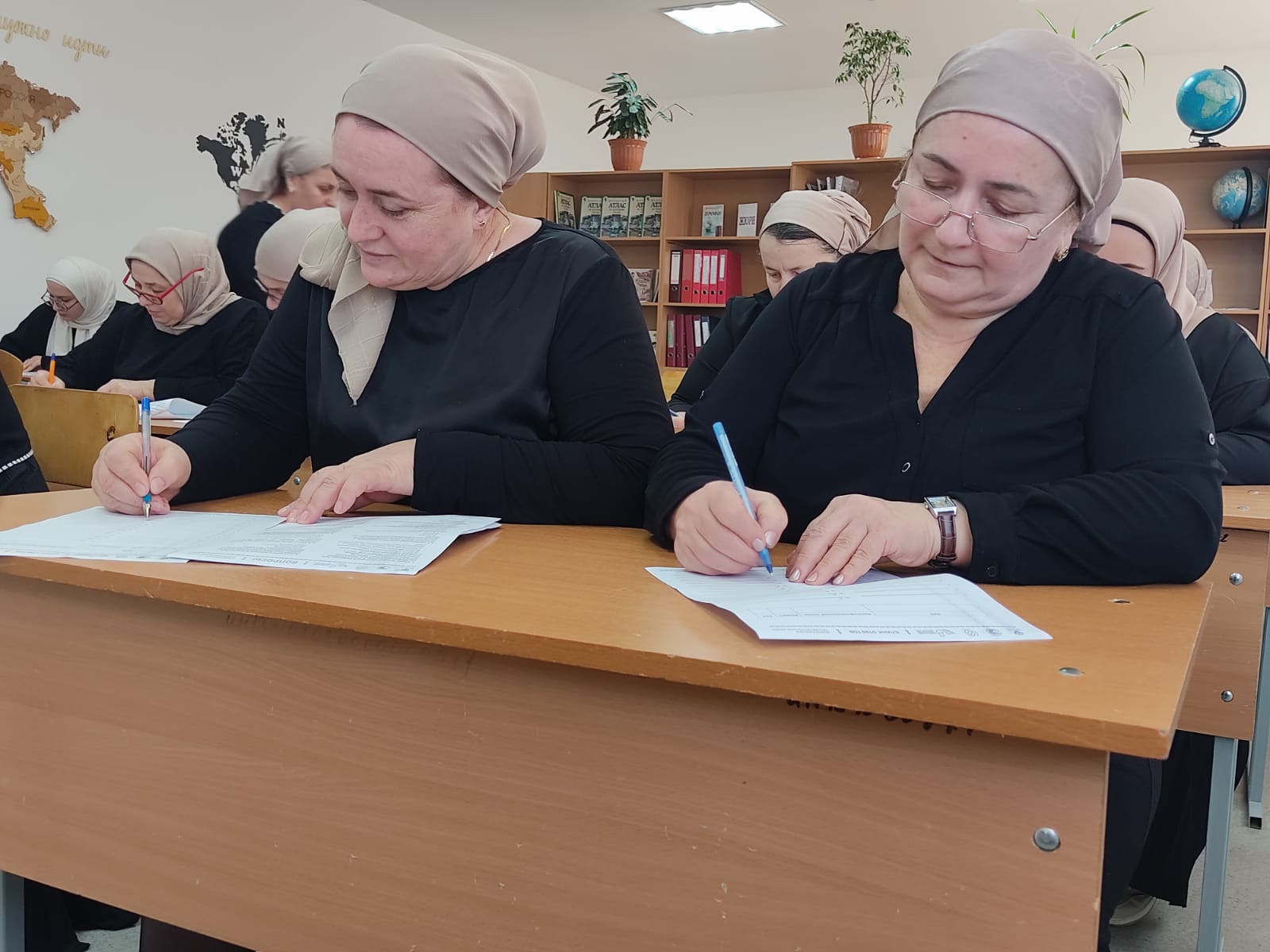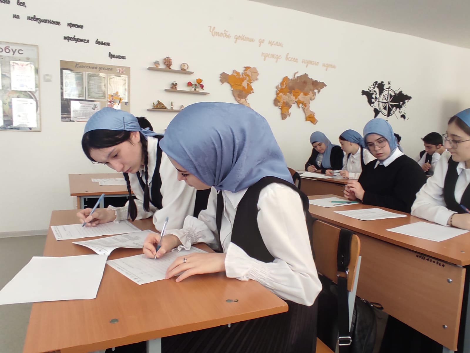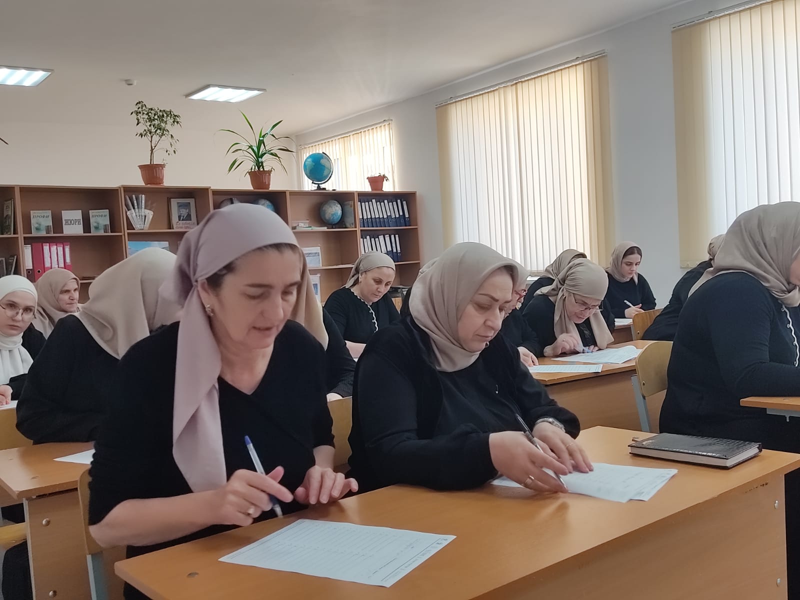 В течение 45 минут взрослые отвечали на 30 вопросов: из них 20 на федеральную тематику и 10 заданий, связанных с национальной спецификой Чеченской Республики. Учащиеся же выполняли 20 заданий.