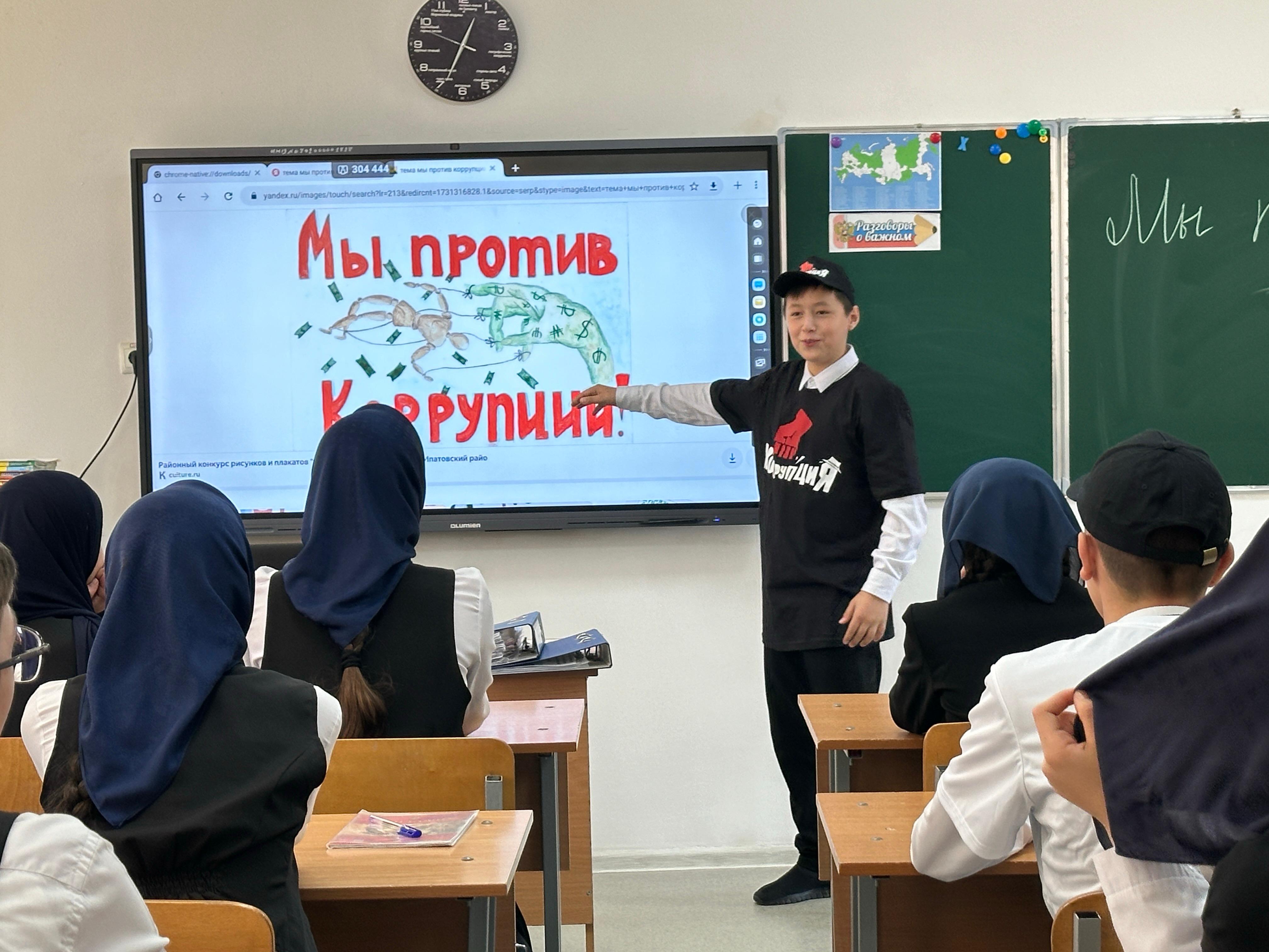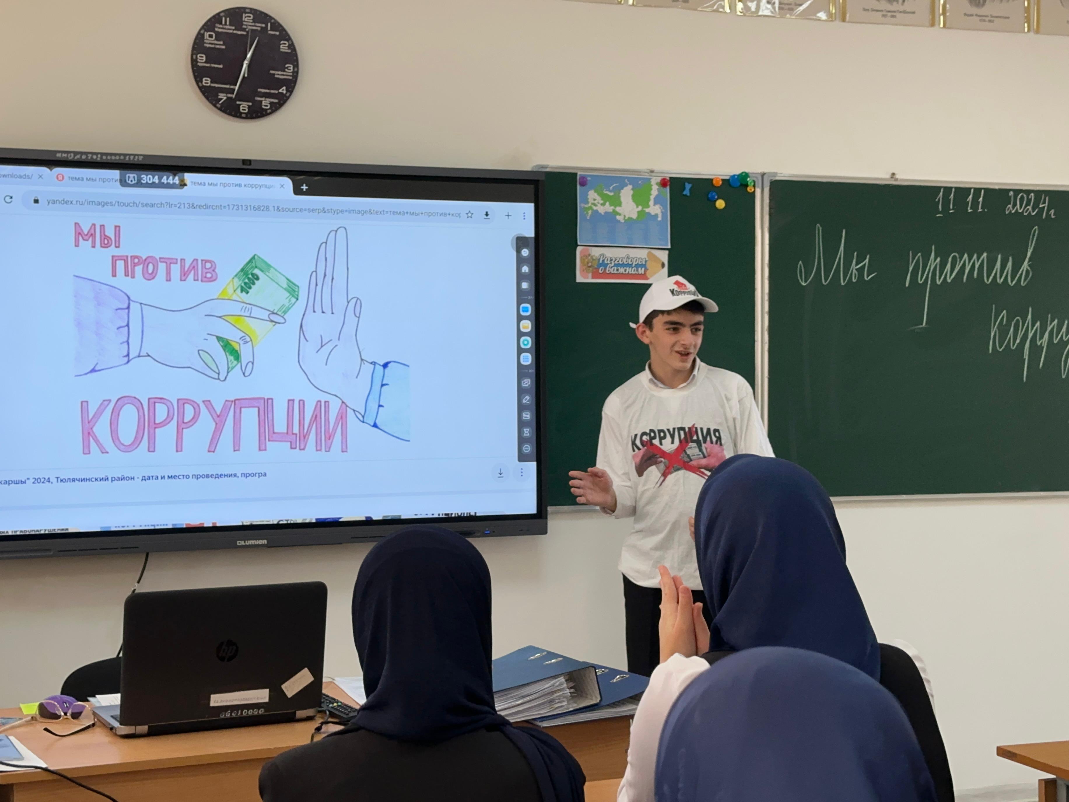 11 ноября .2024 года зам.дир.по ВР Магомедова Р.Л. провела мероприятие на тему: «Мы против коррупции».