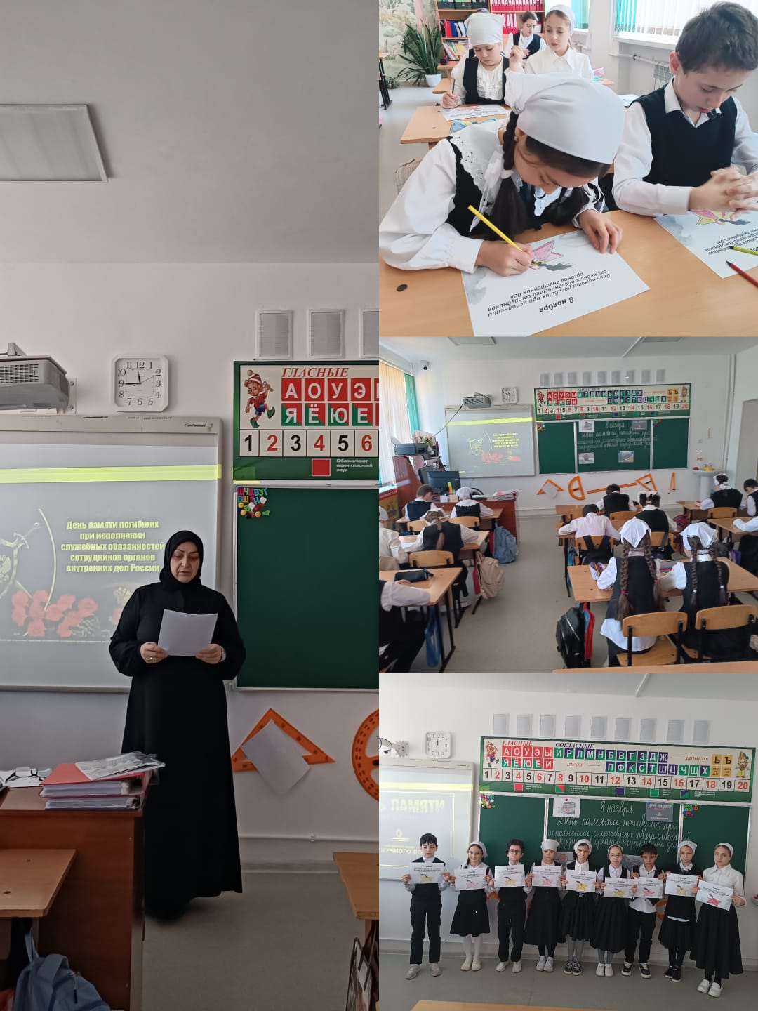 15.11.2024 г. классный руководитель Досуева М Т. в 4 "Б" классе провела классный час на тему: "Вечно молодые", посвященный погибшим полицейским.