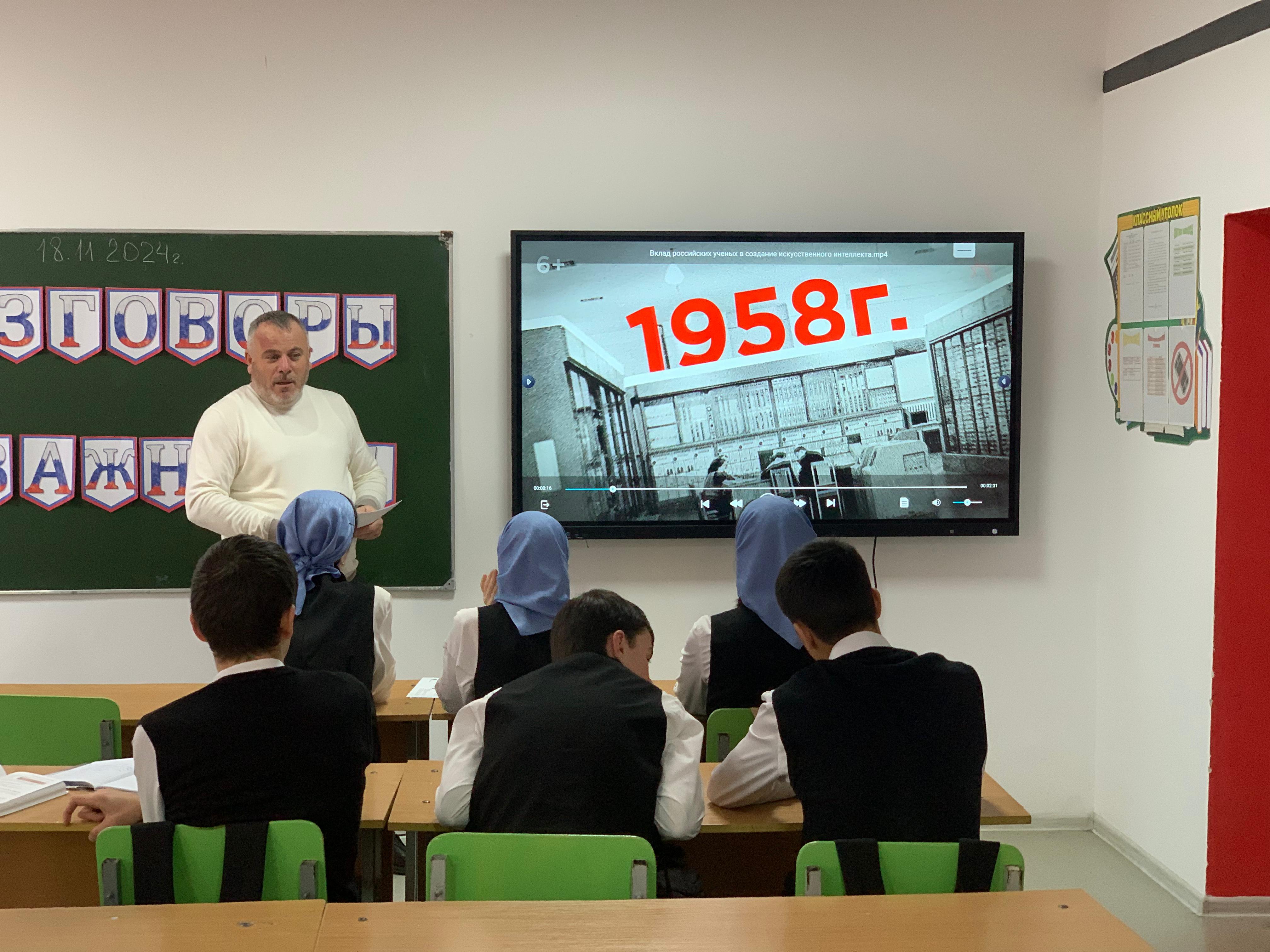 18.11.2024г. классный руководитель Арсимиков Ш.А. провел внеурочное занятие в 11 классе по теме:«ИСКУССТВЕННЫЙ ИНТЕЛЛЕКТ И ЧЕЛОВЕК».