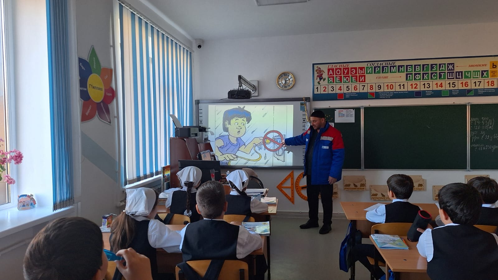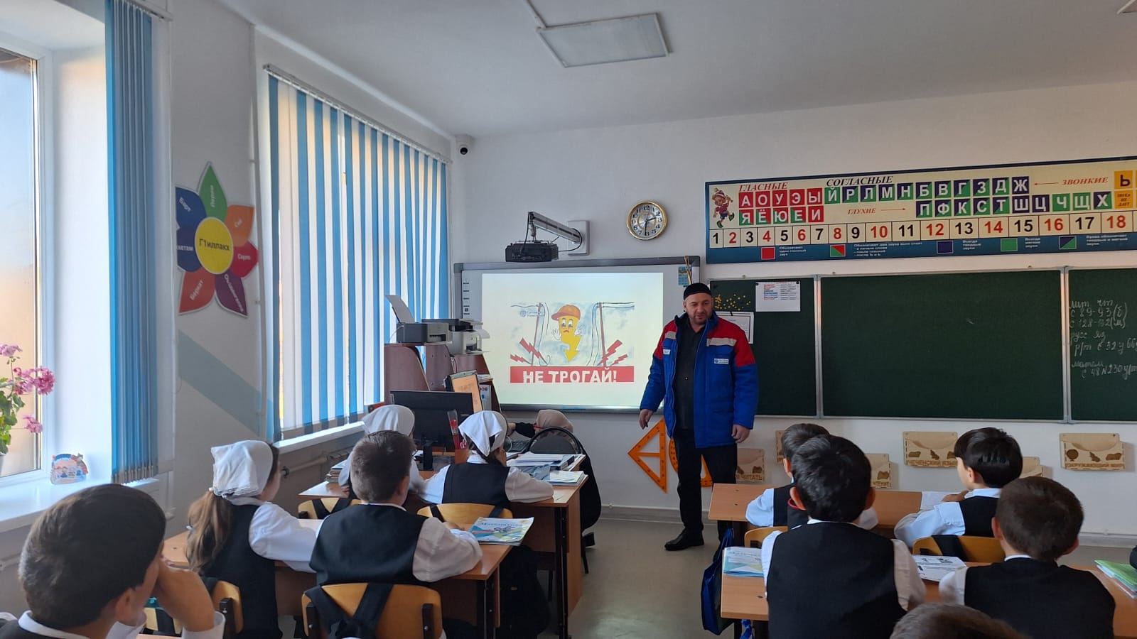 18.12.2024г. представитель АО "Чеченэнерго" Гацаев Т. провел урок с учащимися начальных классов на тему:"Электричество-доттаг1 ву я мостаг1 ву?".