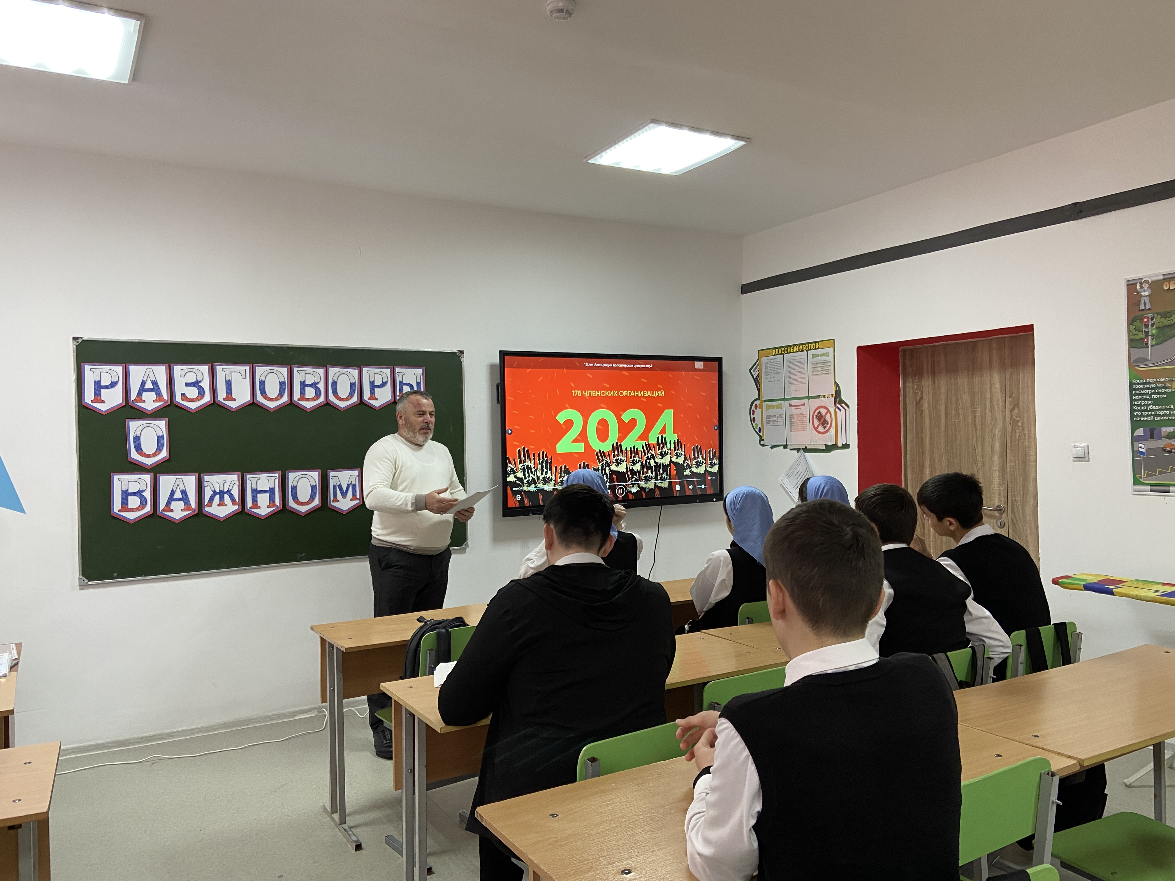 2 декабря 2024 г. в нашей школе прошла торжественная линейка, которая началась с выноса Государственных флагов и исполнения гимнов Российской Федерации и Чеченской Республики.