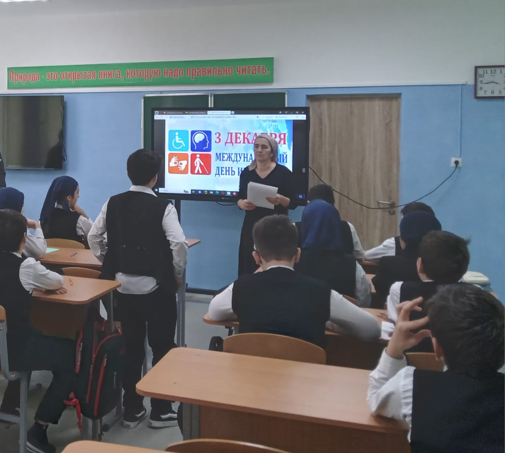 03.12.2024г. Баймурадова Х.Ю. провела классный час в 6 классе на тему:"Люди с ограниченными возможностями" .