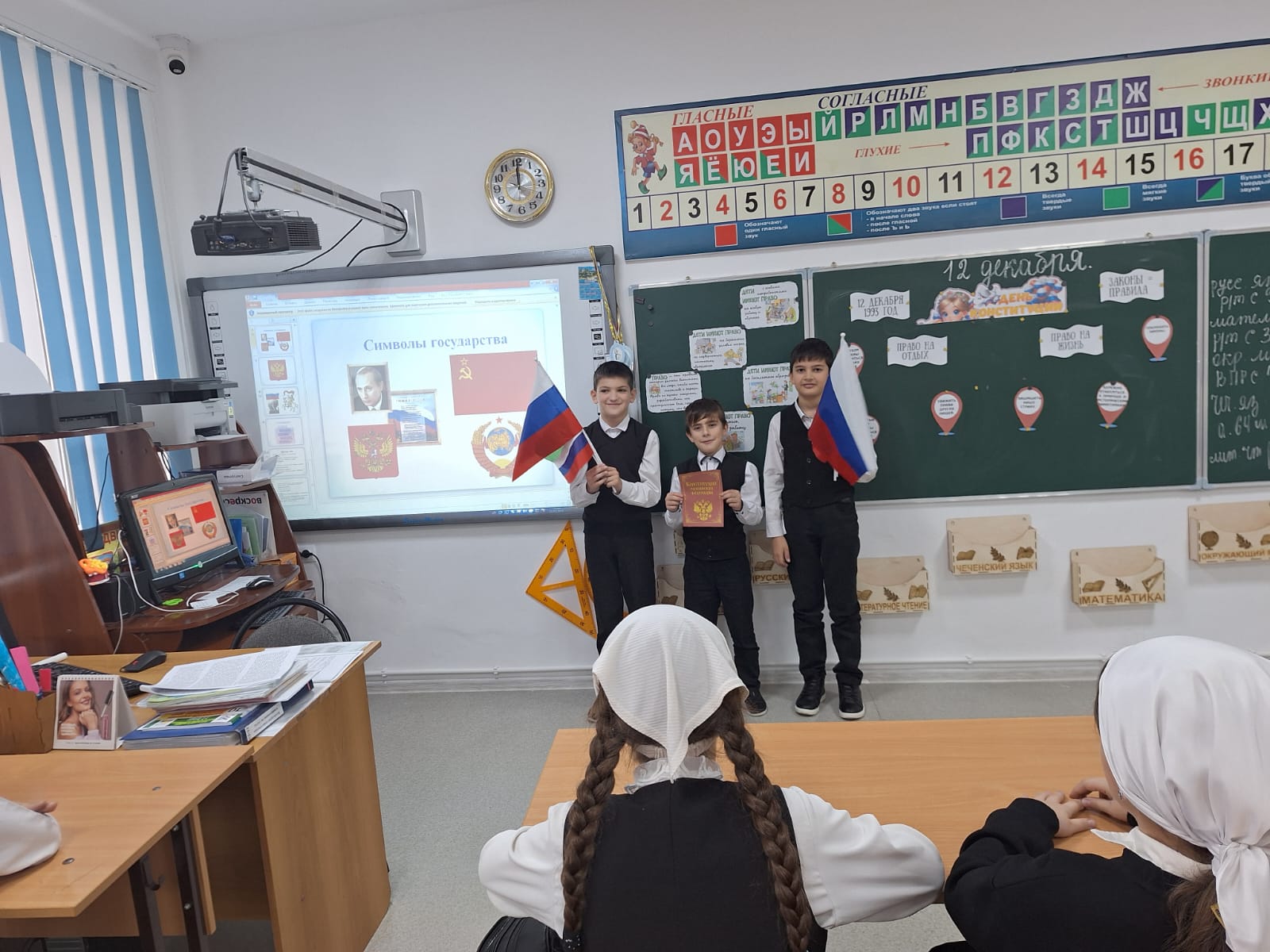 12.12.2024 г. классный руководитель Исраилова И С. в 4 А классе провела классный час на тему:День Конституции Российской Фелерации"