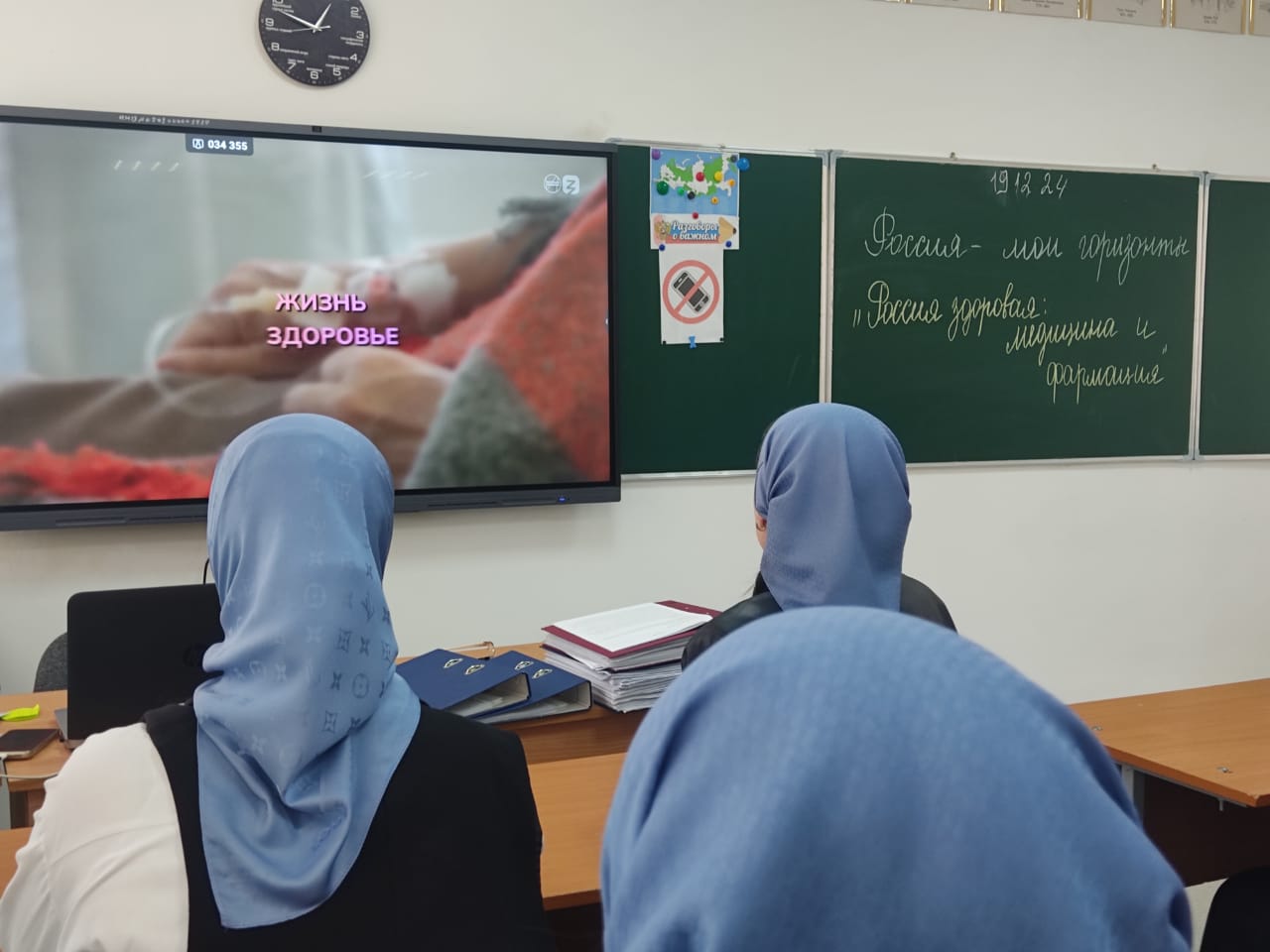19 декабря 2024 г. в рамках курса внеурочной деятельности «Россия — мои горизонты» для учащихся 6-11 классов прошло внеурочное занятие на тему:«Россия здоровая: медицина и фармация».