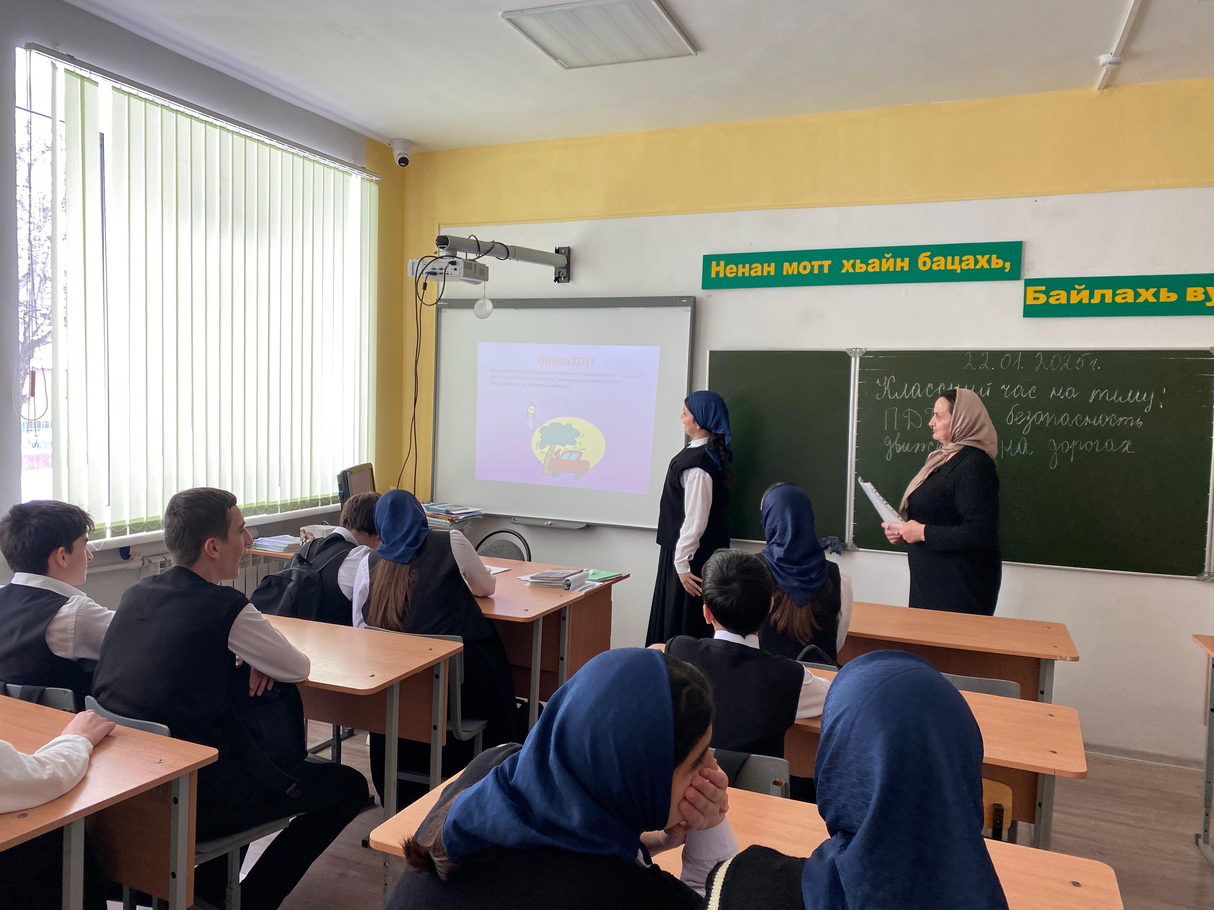 23.01.2025г. в 8" Б" классе классный руководитель Гатаева Т.Х. провела беседу по профилактике ПДД.