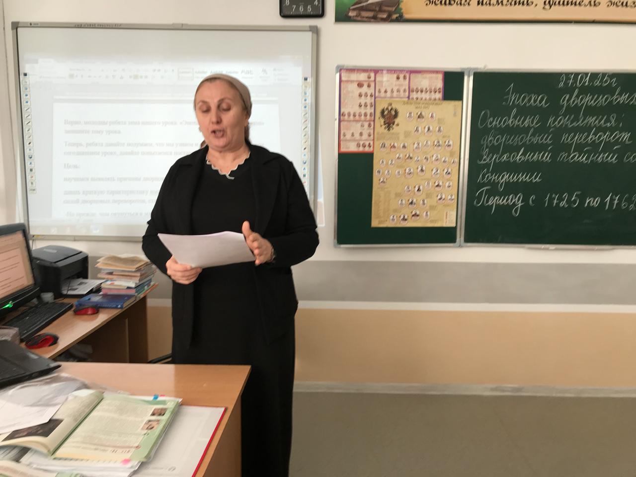 27.01.2025 г. учитель истории Телипова М.Н. провела открытый урок по истории России в 8-ом «А» классе, на тему: «Эпоха дворцовых переворотов». Цель урока: познакомить учащихся с историей дворцовых переворотов в России, которая занимала период с 1725 по 1762 гг. На этом открытом уроке учащиеся узнали о том, сколько всего преемников было у первого российского императора Петра 1. Учащиеся также выяснили что такое дворцовый переворот, кондиции, хронология, и конечно, сколько правителей сменилось за этот период времени в России.