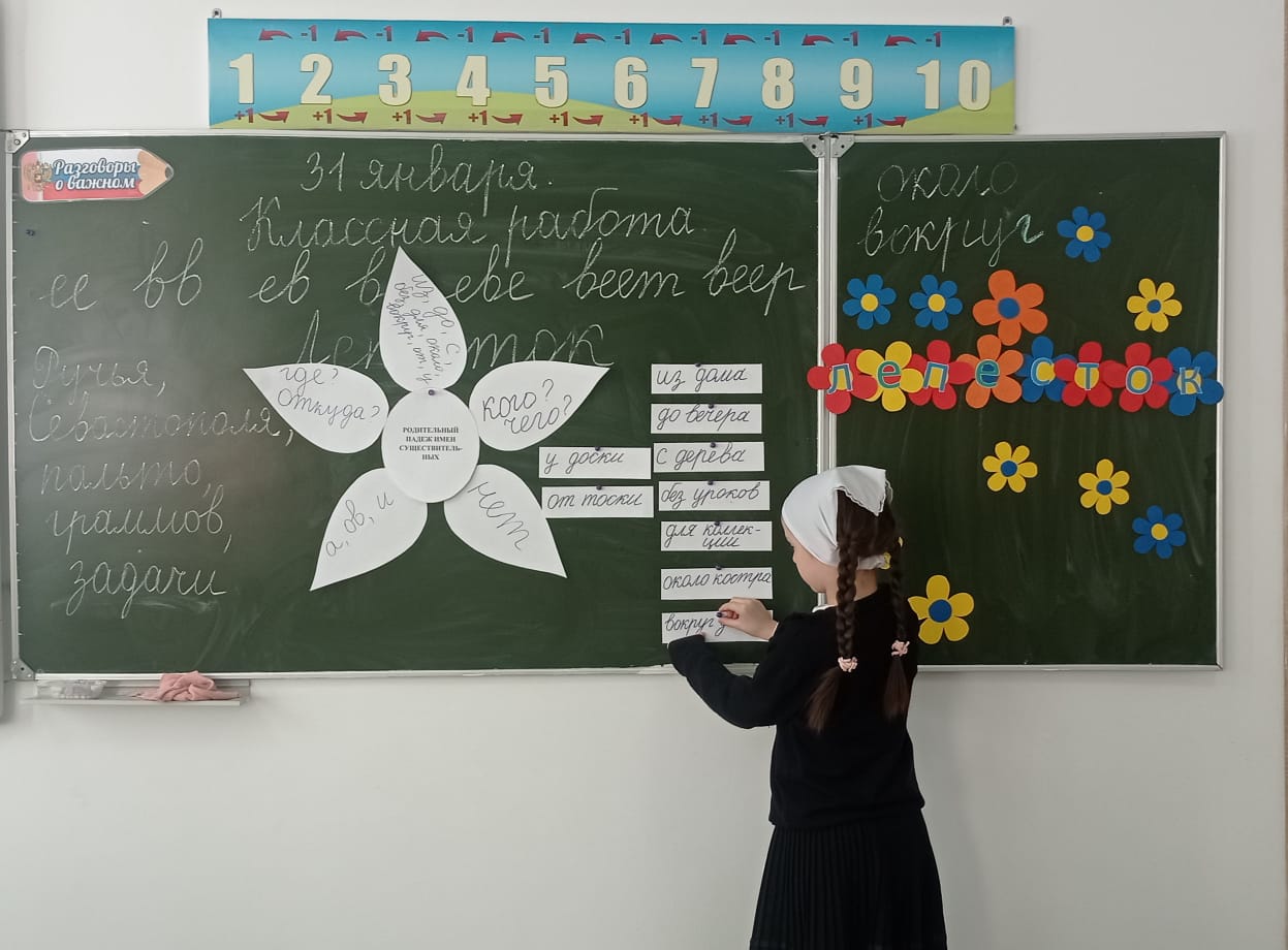31 января в 3 классе Хизриева Л. М. провела урок русского языка на тему:"Родительный падеж имени существительного".