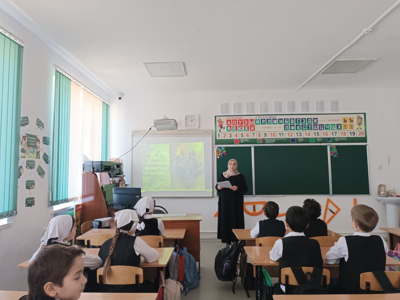 31.01.2025 г. в 4 "Б" классе классный руководитель Досуева М.Т. провела урок Мужества на тему:"Патриотизм и СВО Российской Армии".
