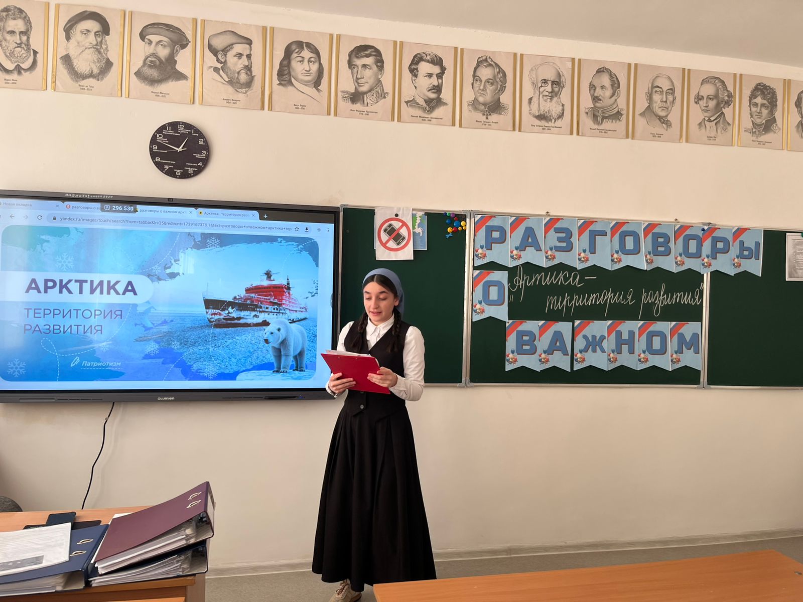 10 февраля 2025 года в МБОУ "Веденская СОШ №2" прошли «Разговоры о важном» на тему: «Арктика – территория развития».