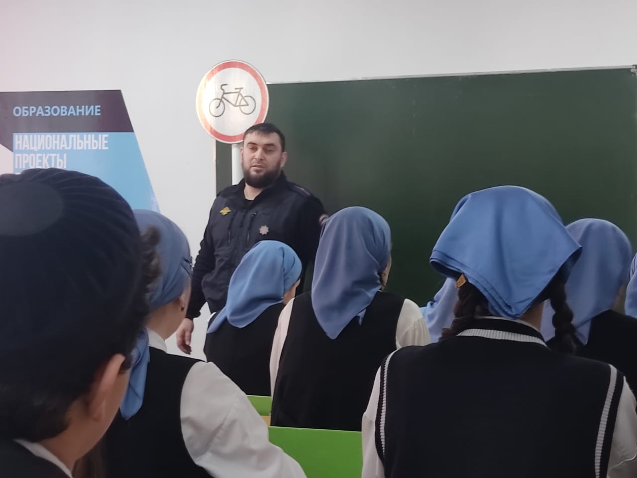 12 февраля 2025 года в МБОУ «Веденская СОШ №2» старший Государственный инспектор ОГИБДД ОМВД России по Веденскому району Мукаев Ю.Р. и инспектор по пропаганде ОГИБДД ОМВД России по Веденскому району Шамилев Р.Р. осуществили проверку мер по предотвращению детского дорожно-транспортного травматизма. А также провели профилактическую беседу по правилам дорожного движения учащимися 10-х классов.