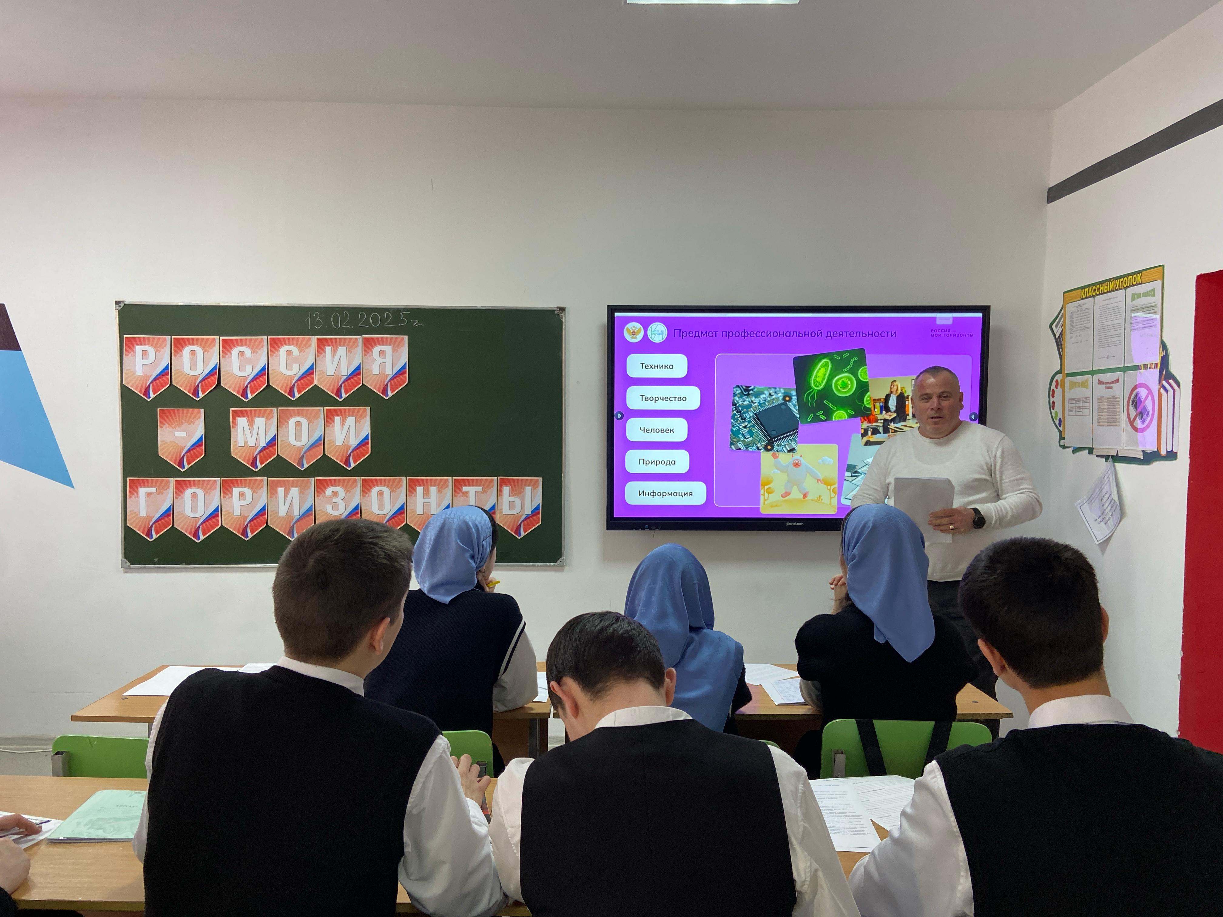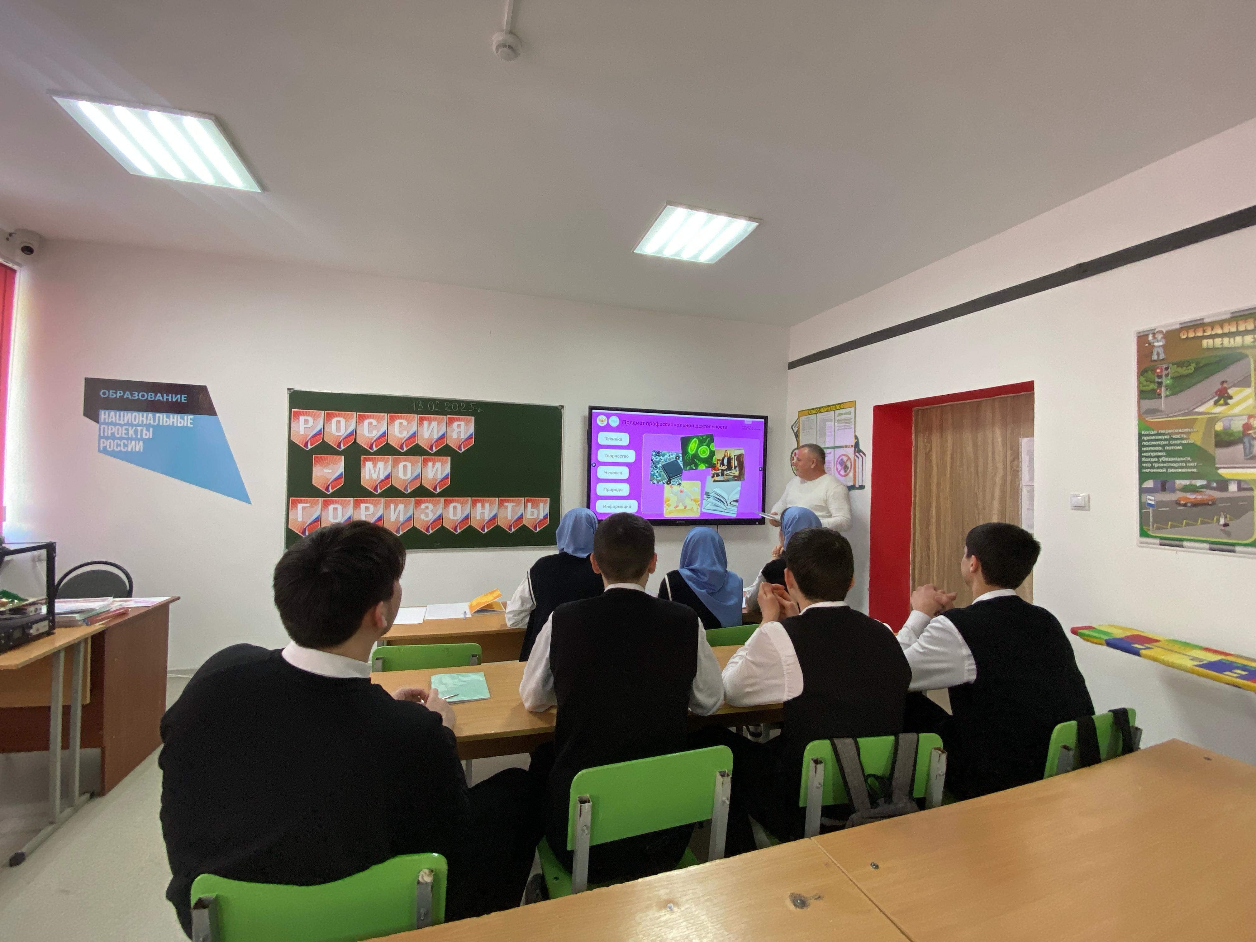 13.02.2025 года в МБОУ «Ведененская СОШ №2» в рамках профориентационного курса «Россия – мои горизонты» для 6-11 классов прошло практико-ориентированное занятие внеурочной деятельности «Россия - мои горизонты» по теме «Россия комфортная», «Россия индустриальная», «Россия умная» по выбору.