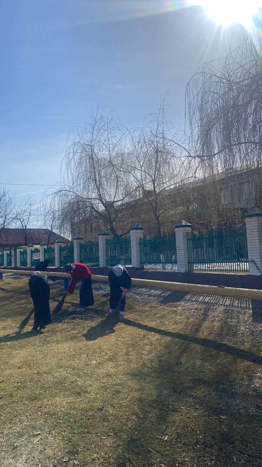 Коллектив школы вышел на субботник, где активно и организованно чистили закрепленные территории после зимнего периода, вооружившись необходимым инвентарем и позитивным настроем.