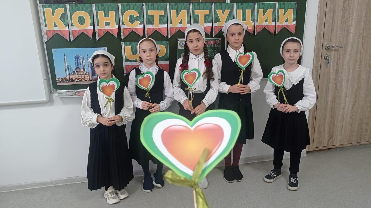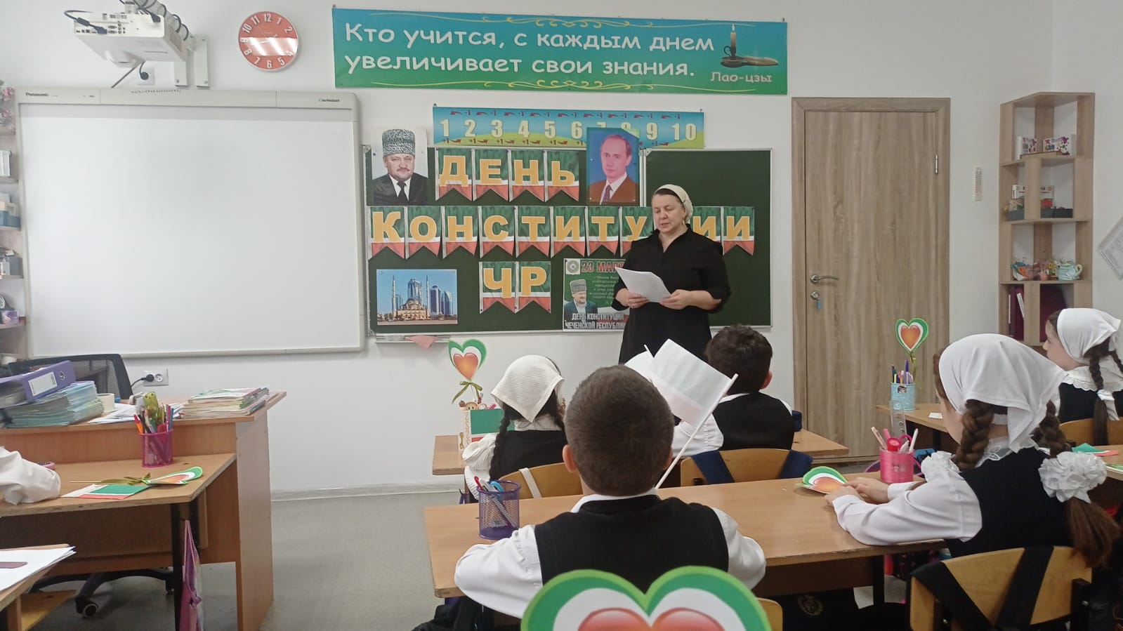 21.03.2024г. Хизриева Л М. провела классный час в 3 классе посвященный Дню Конституции ЧР. Учащиеся узнали о значимости даты 23 марта, когда народ ЧР решил заявить о своем желании жить и трудиться в составе РФ, и о роли первого Президента, Героя России А-Х. Кадырова в выборе мирного пути и в проведении референдума, и это стало первым шагом к мирной жизни и процветанию республики.