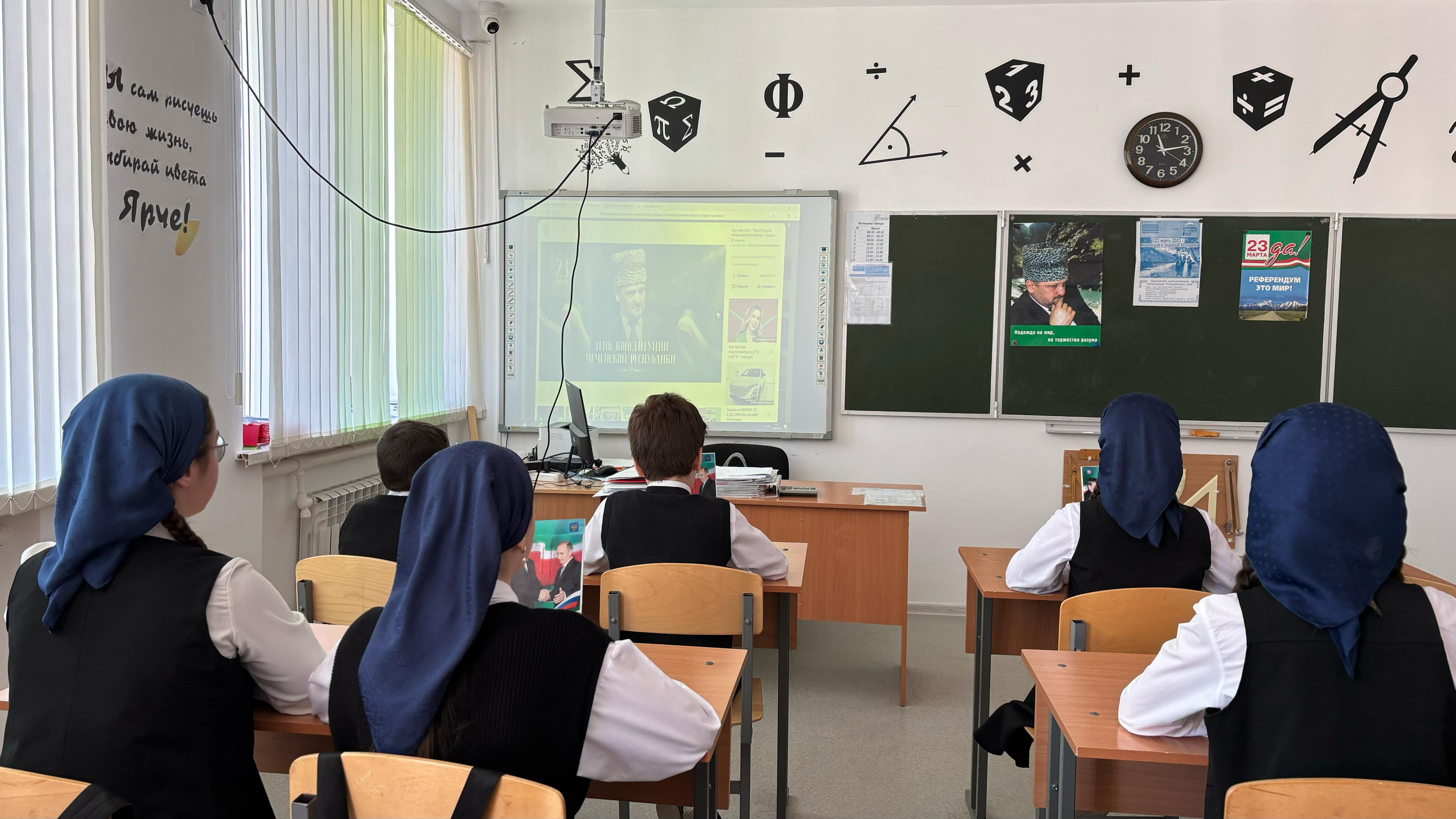 24 марта 2025 года классным руководителем 5 "А" класса Халилаевой Э.Ш. был проведён классный час посвещенный Дню Конституции Чеченской Республики.