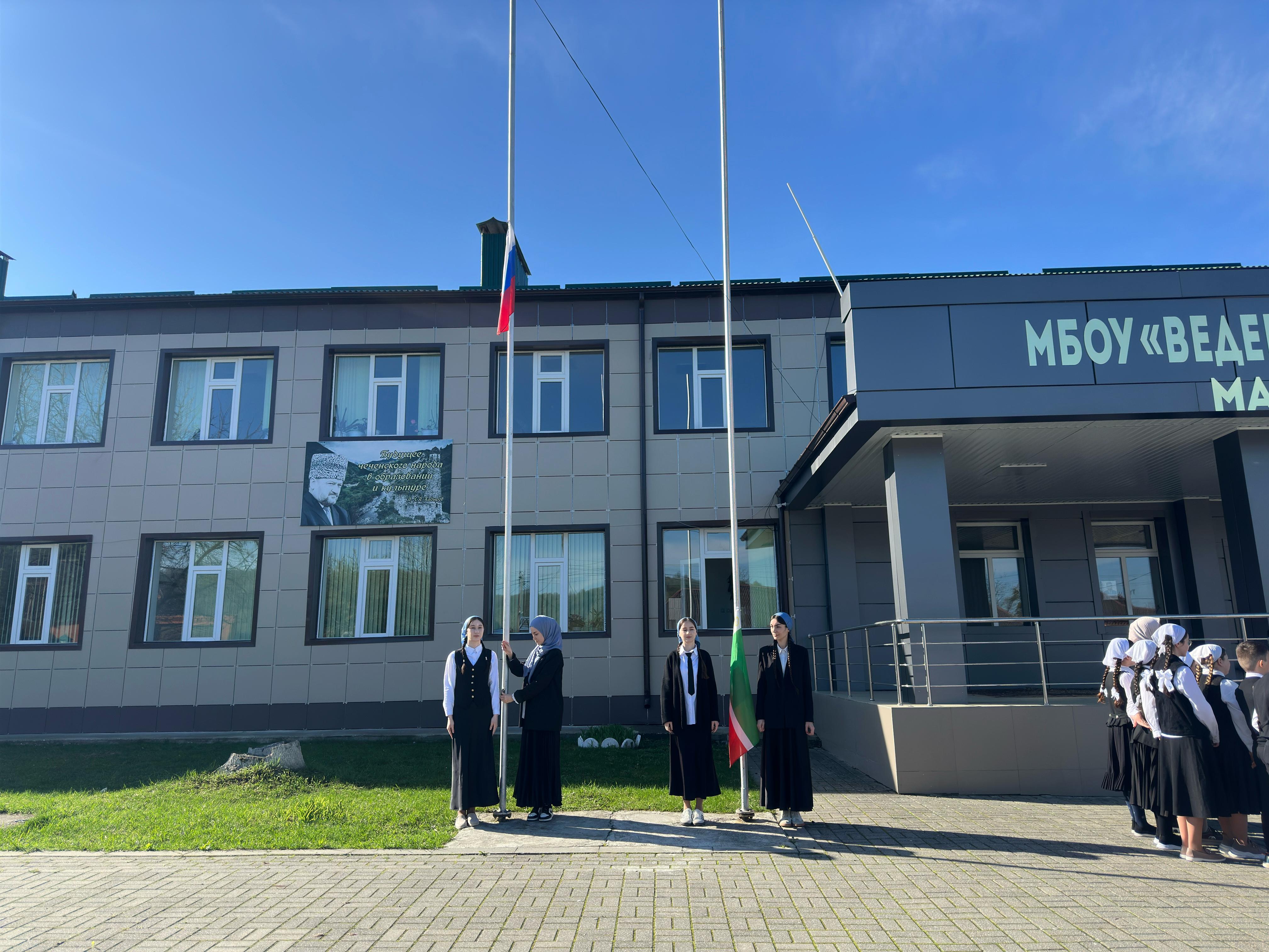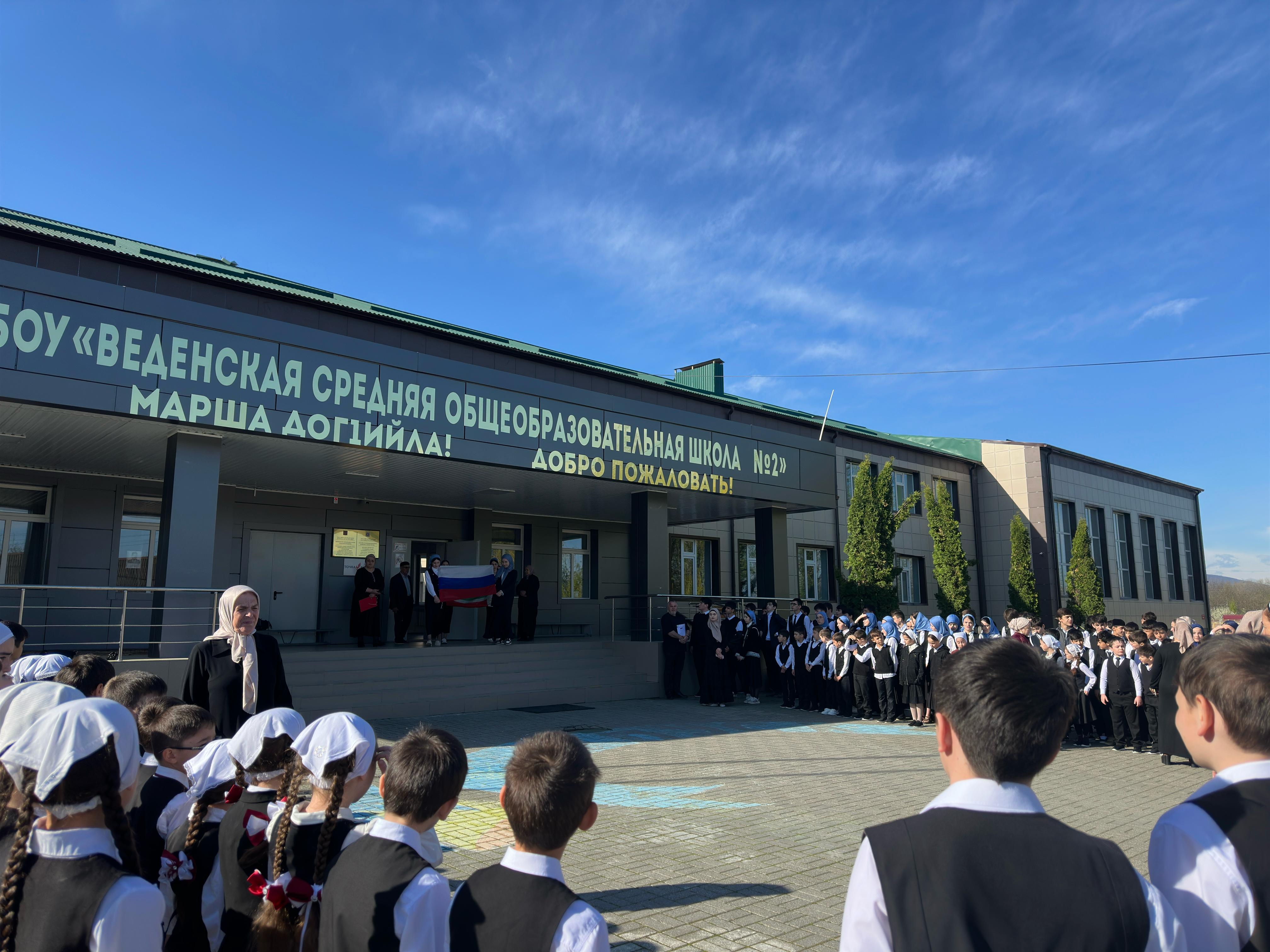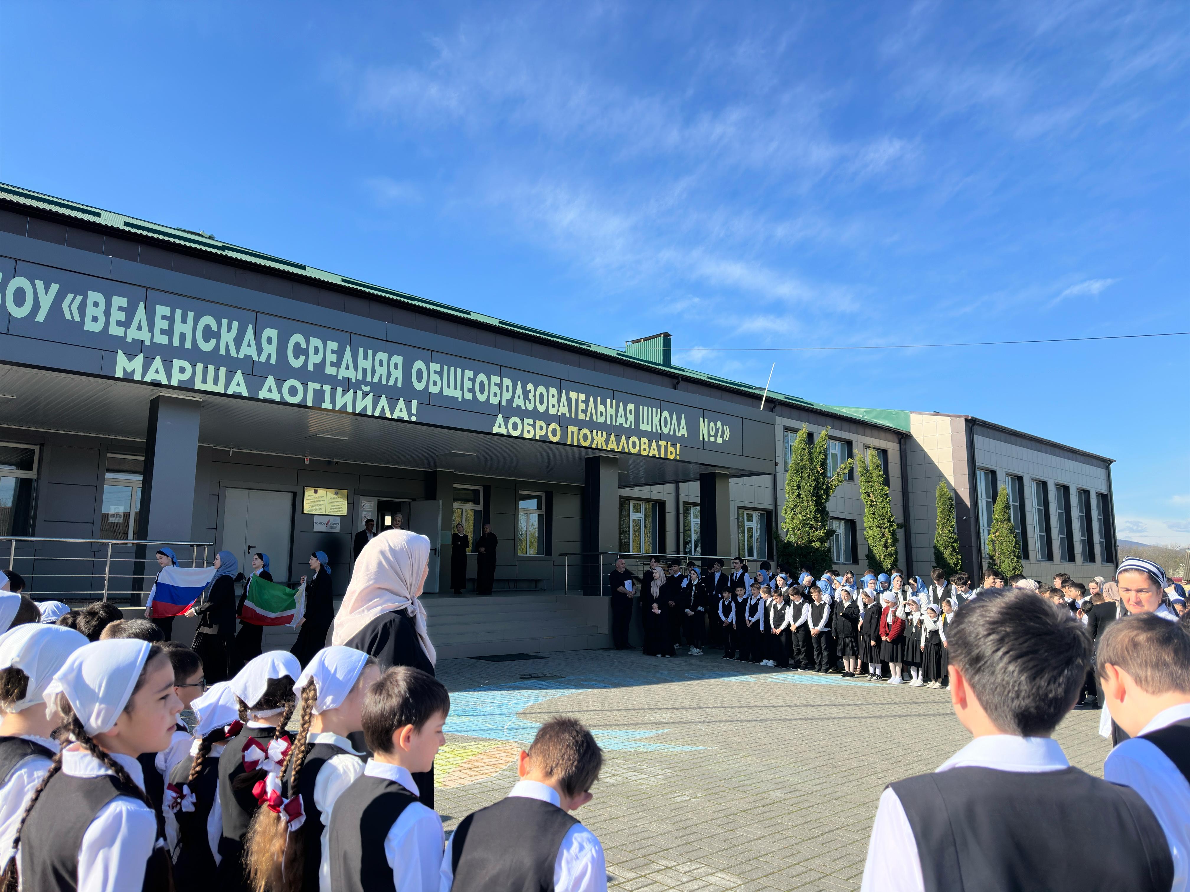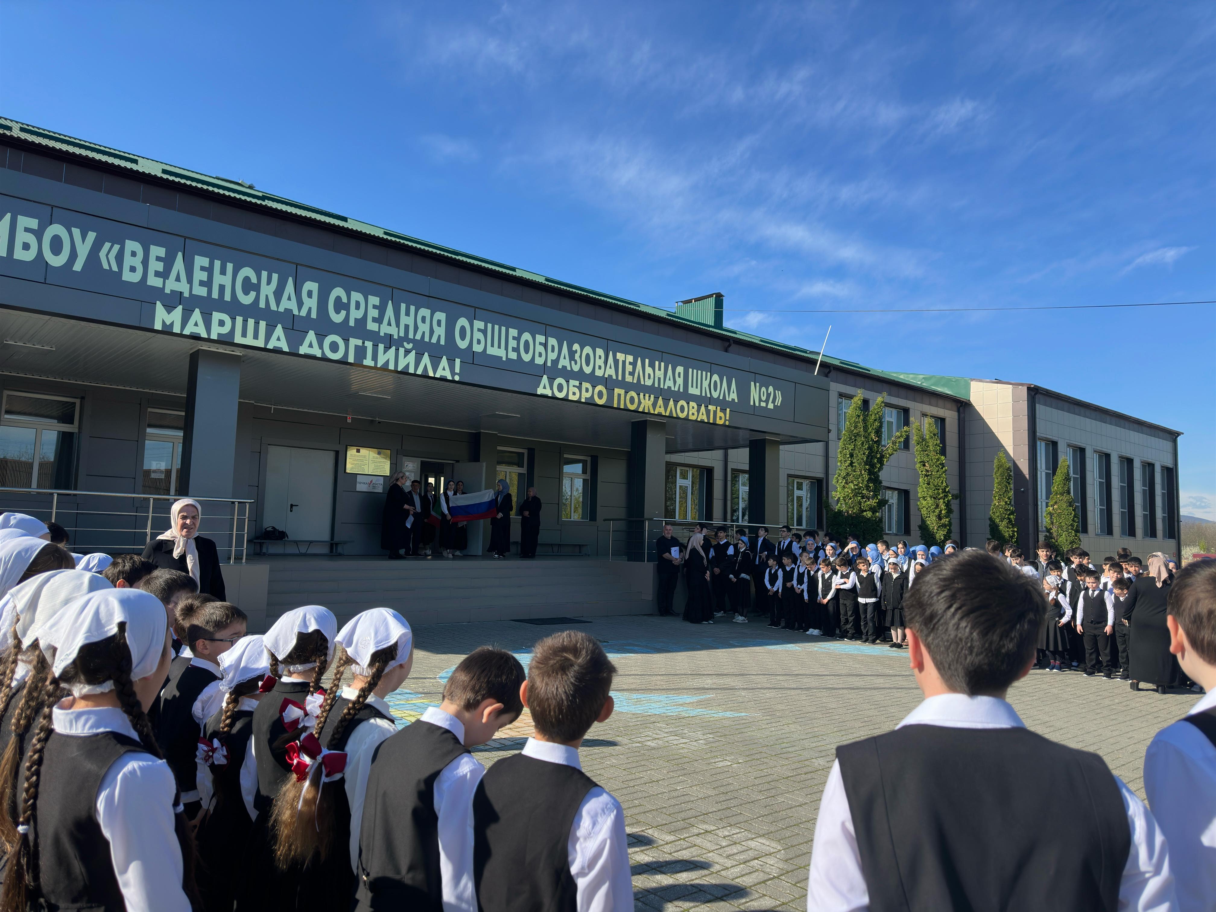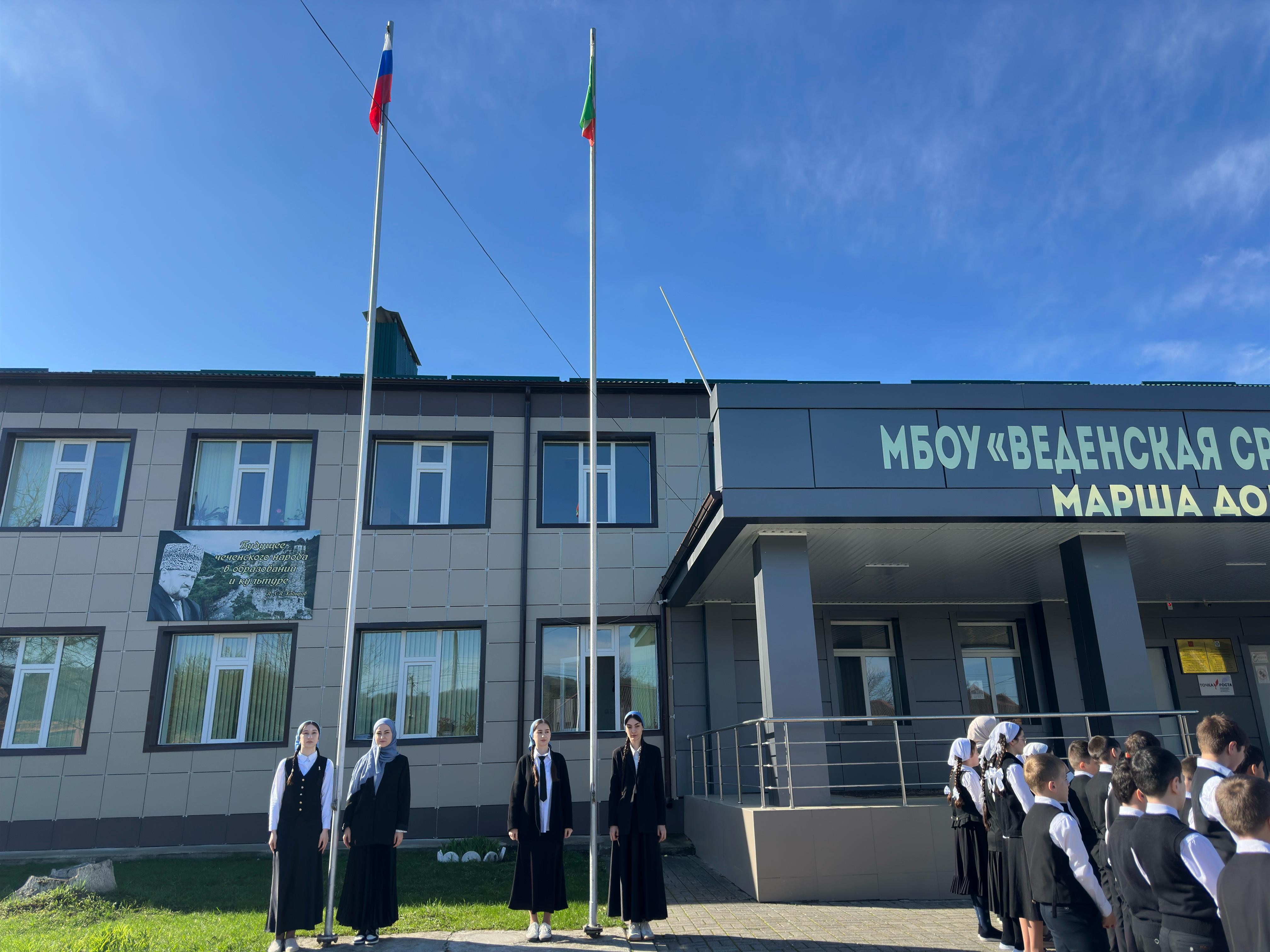 7 апреля 2025 года в МБОУ «Веденская СОШ №2» состоялась торжественная линейка, посвященная церемонии поднятия Государственного флага Российской Федерации и флага Чеченской Республики, а также исполнению государственных гимнов РФ и ЧР.