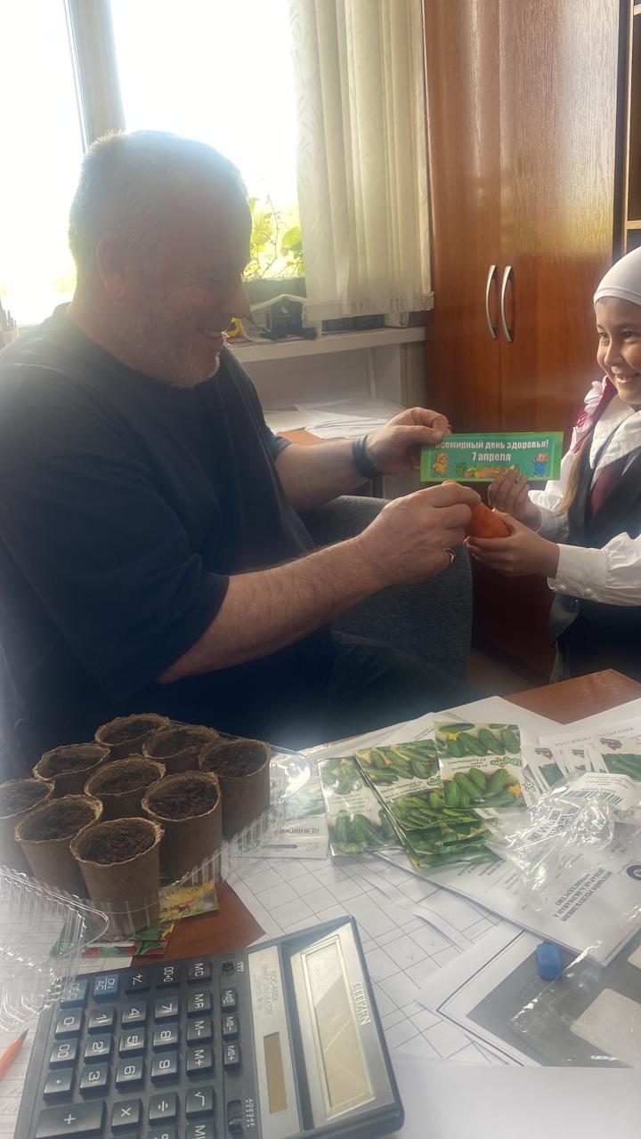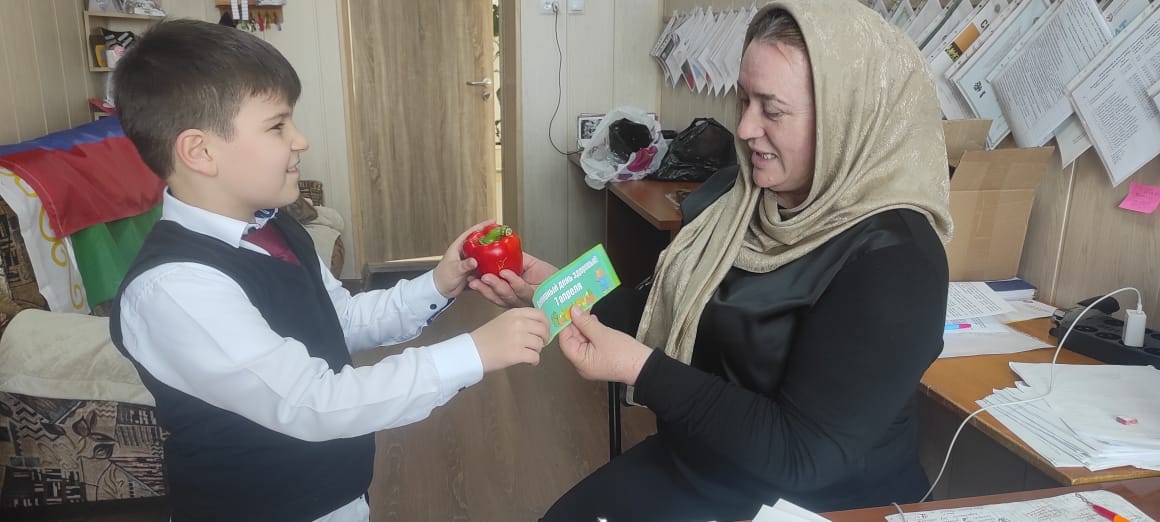 7 апреля 2025 года в рамках акции учащиеся 2 класса под руководством классного руководителя Гучиговой Я.Т. раздавали учителям школы овощи и фрукты, сопровождая это информацией о пользе каждого продукта для здоровья.