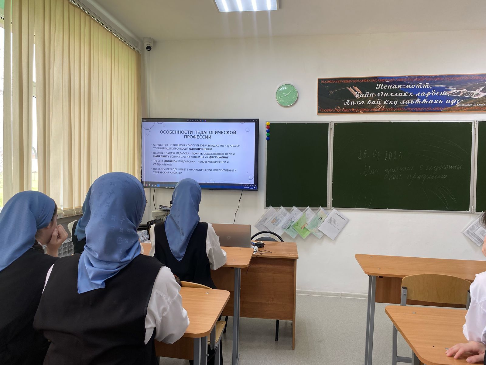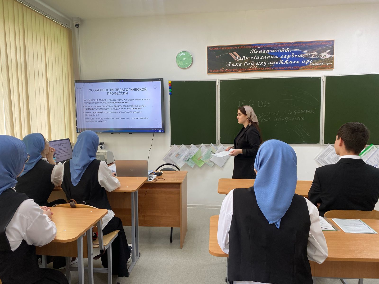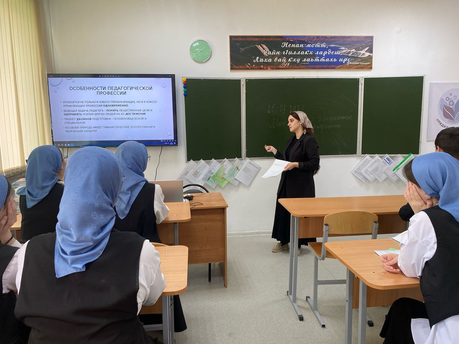 25.03.2025 г., в МБОУ «Веденская СОШ 2» в психолого-педагогическом классе было проведено плановое занятие на тему:«Мои знания о педагогической профессии».