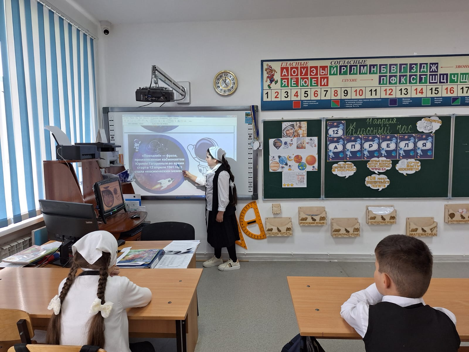 11.04.2025 г. классный руководитель Исраилова И С. провела классный час в 4-х классах на тему: "Я вижу Землю! Это так красиво!" приуроченное ко Дню космонавтики - 12 апреля.