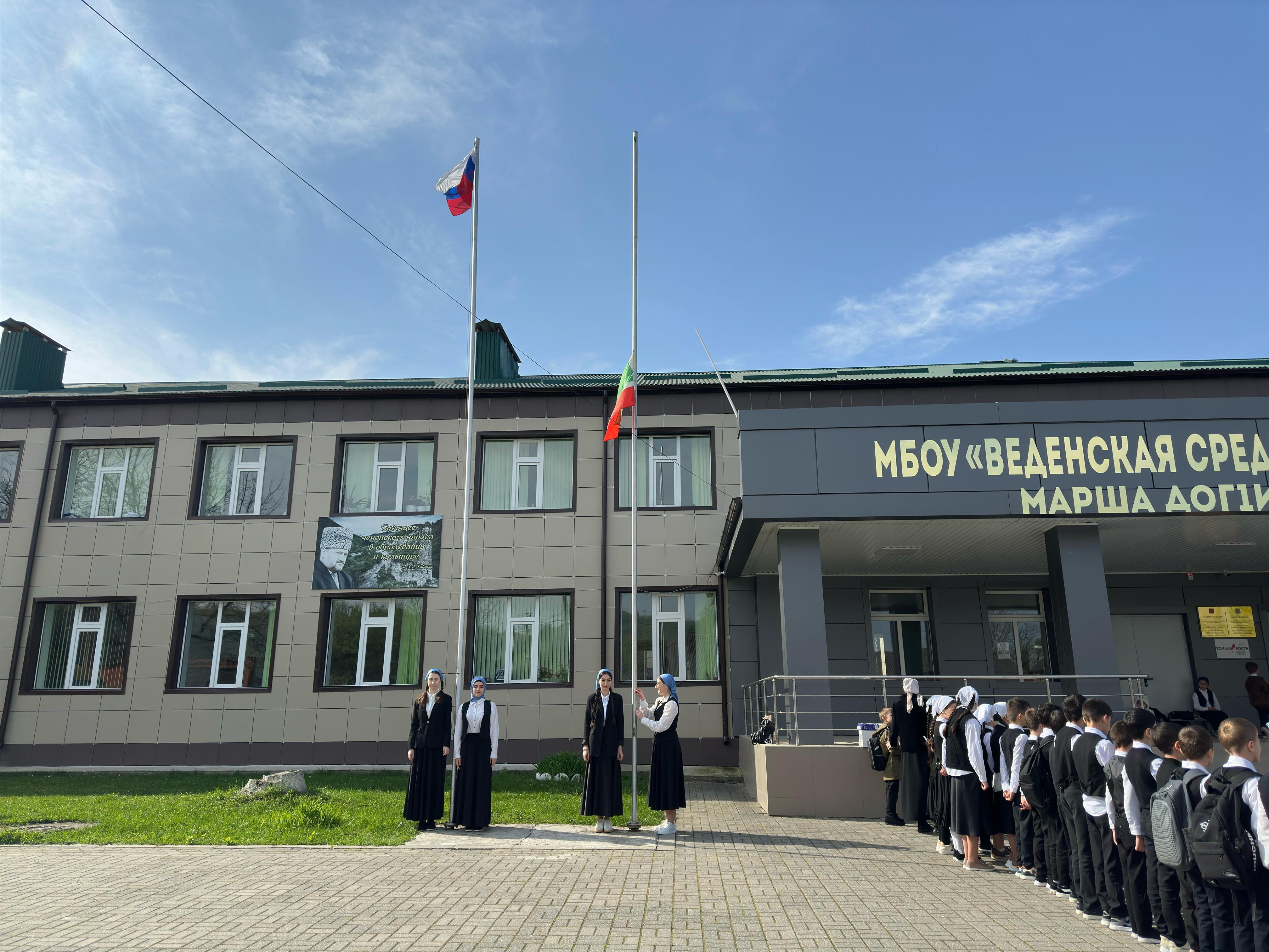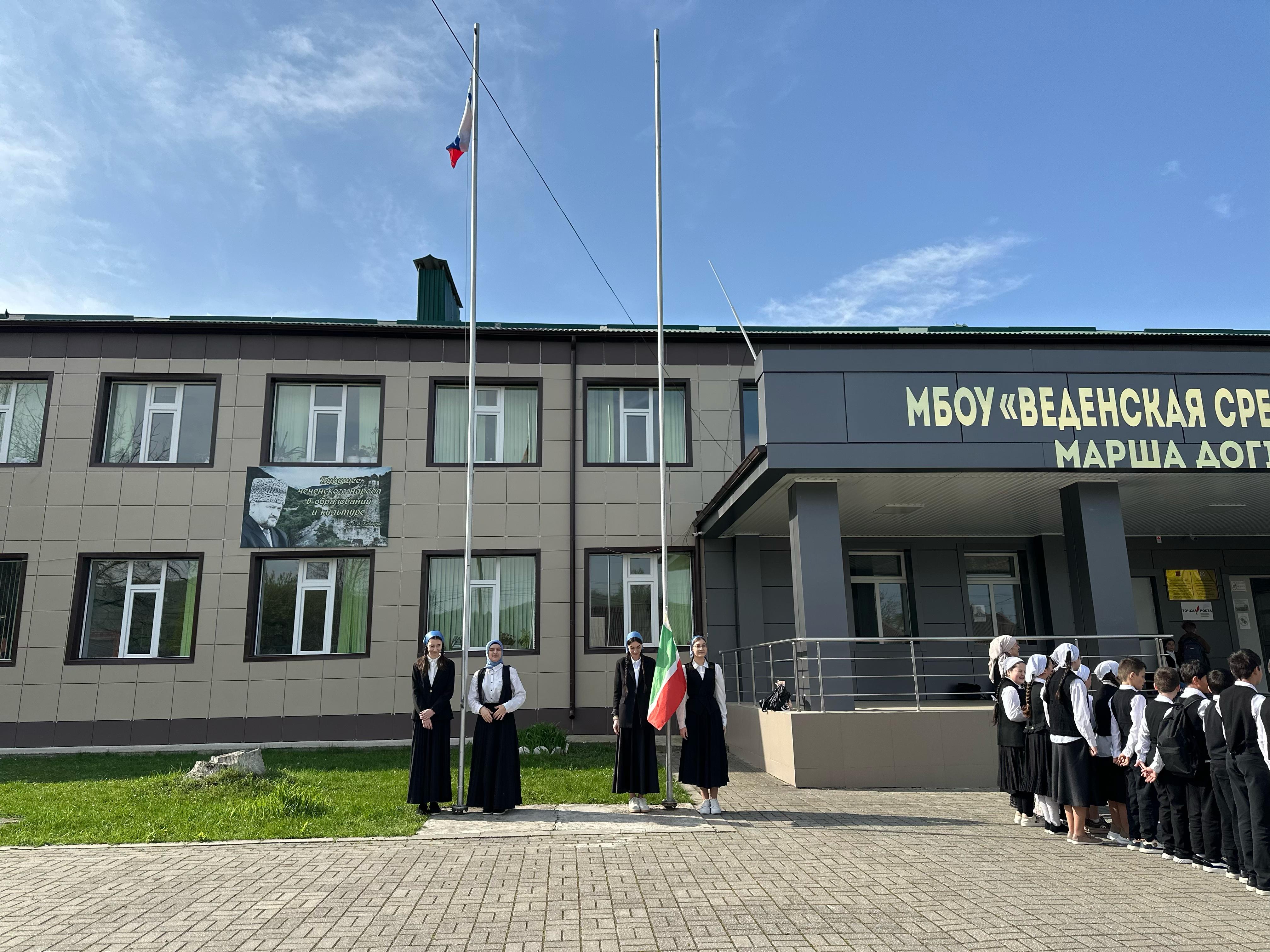 21 апреля 2025 года в МБОУ «Веденская СОШ №2» состоялась торжественная линейка, посвященная церемонии поднятия Государственного флага Российской Федерации и флага Чеченской Республики, а также исполнению государственных гимнов РФ и ЧР.