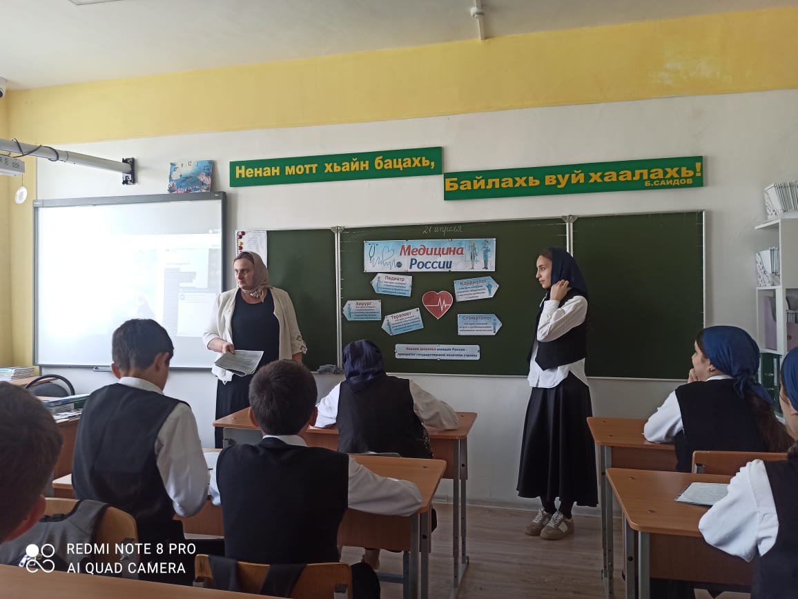 21 апреля, в МБОУ «Веденская СОШ №2» прошли занятие «Разговоры о важном», посвящённое значимой теме — «Медицина России»! Обучающиеся погрузились в мир удивительной науки, открывающей секреты здоровья и долголетия. Они узнали, какую важную роль играет медицина в жизни нашей страны и каждого гражданина, как её развитие способствует укреплению благополучия всей нации. Особое внимание было уделено моральным аспектам медицинских профессий: честность, ответственность, сострадание и профессионализм — вот ключевые качества настоящих врачей и медсестёр. Ведь профессия врача требует особой преданности делу и заботы о людях!