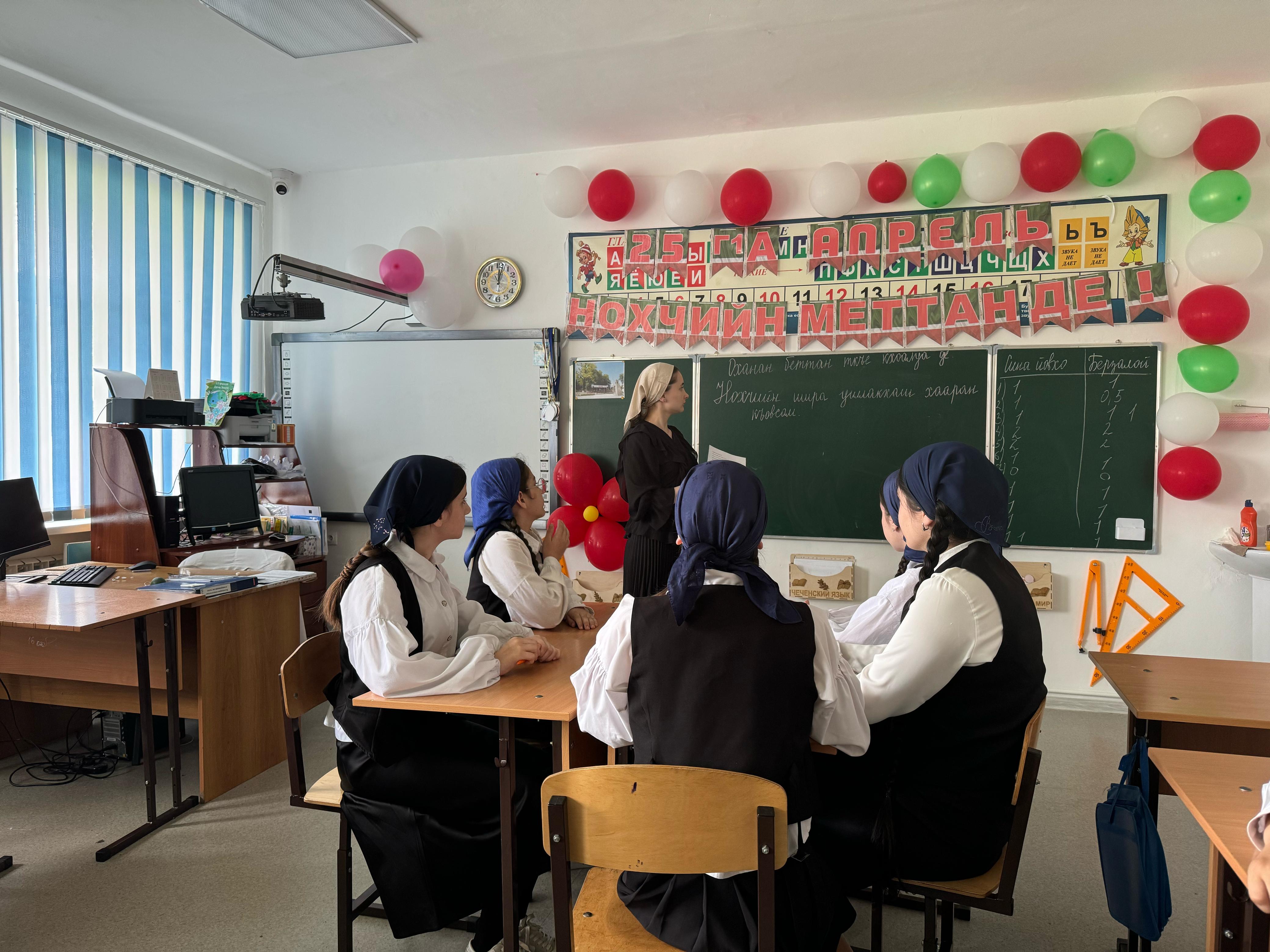 23.04.2025г. учителем родного языка и литературы Эшиевой Р.М. была проведена викторина, посвященная ко Дню Чеченского языка, отмечаемого на территории нашей Республики 25-го апреля.