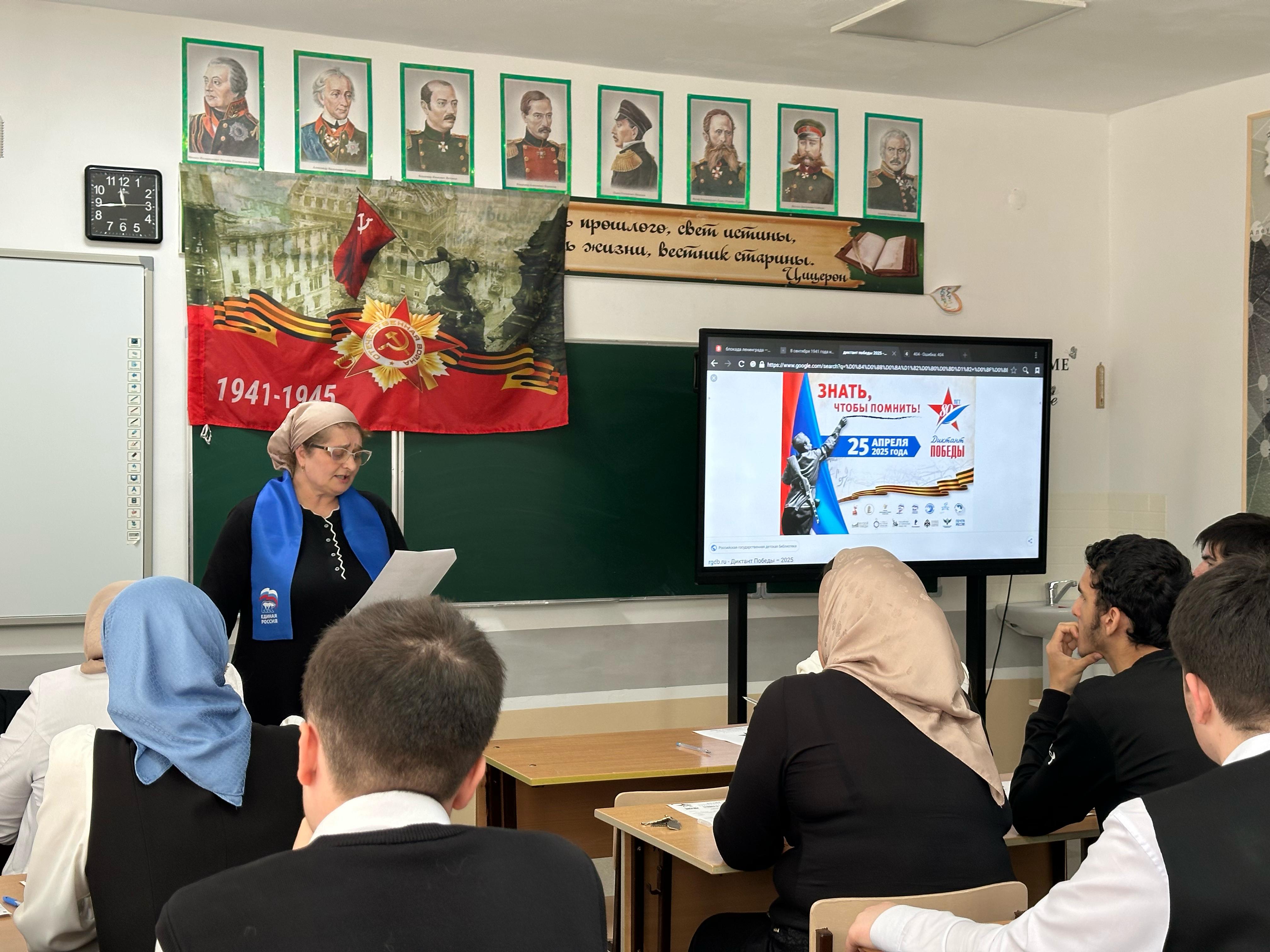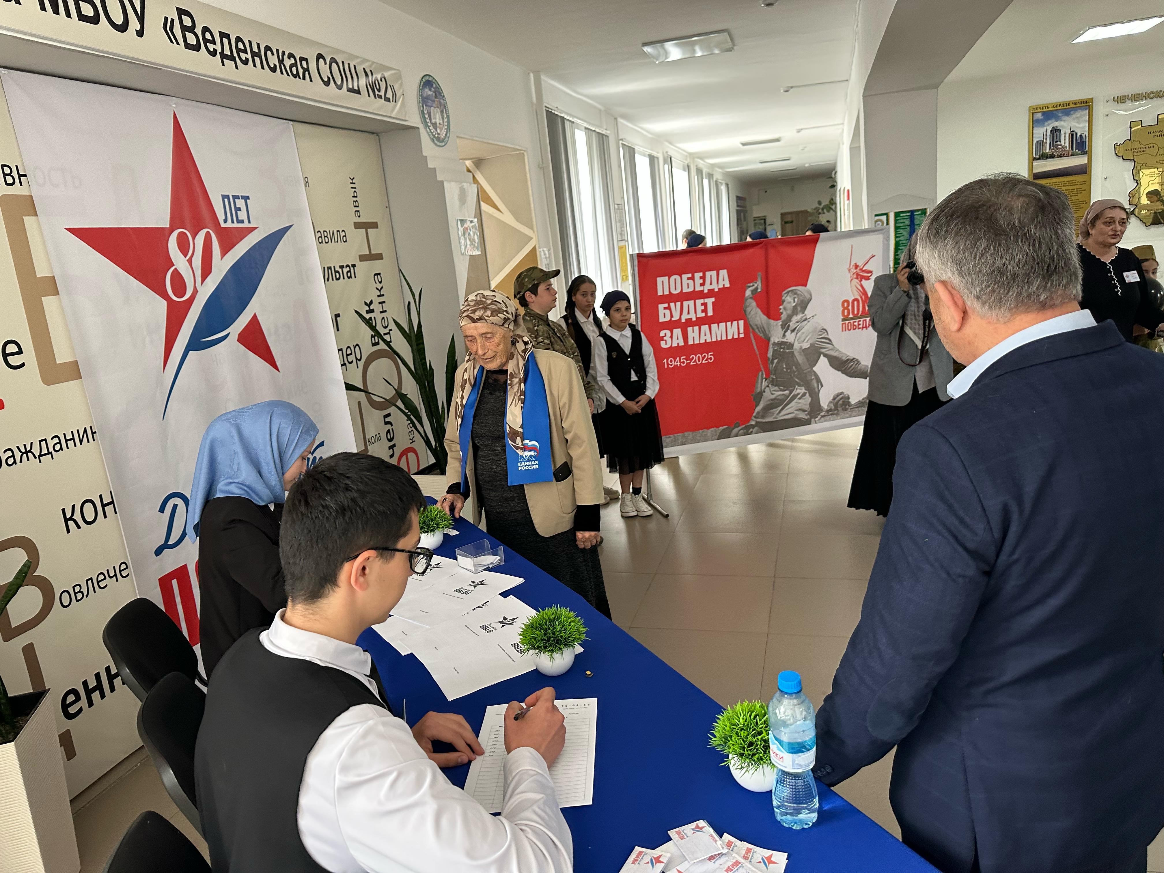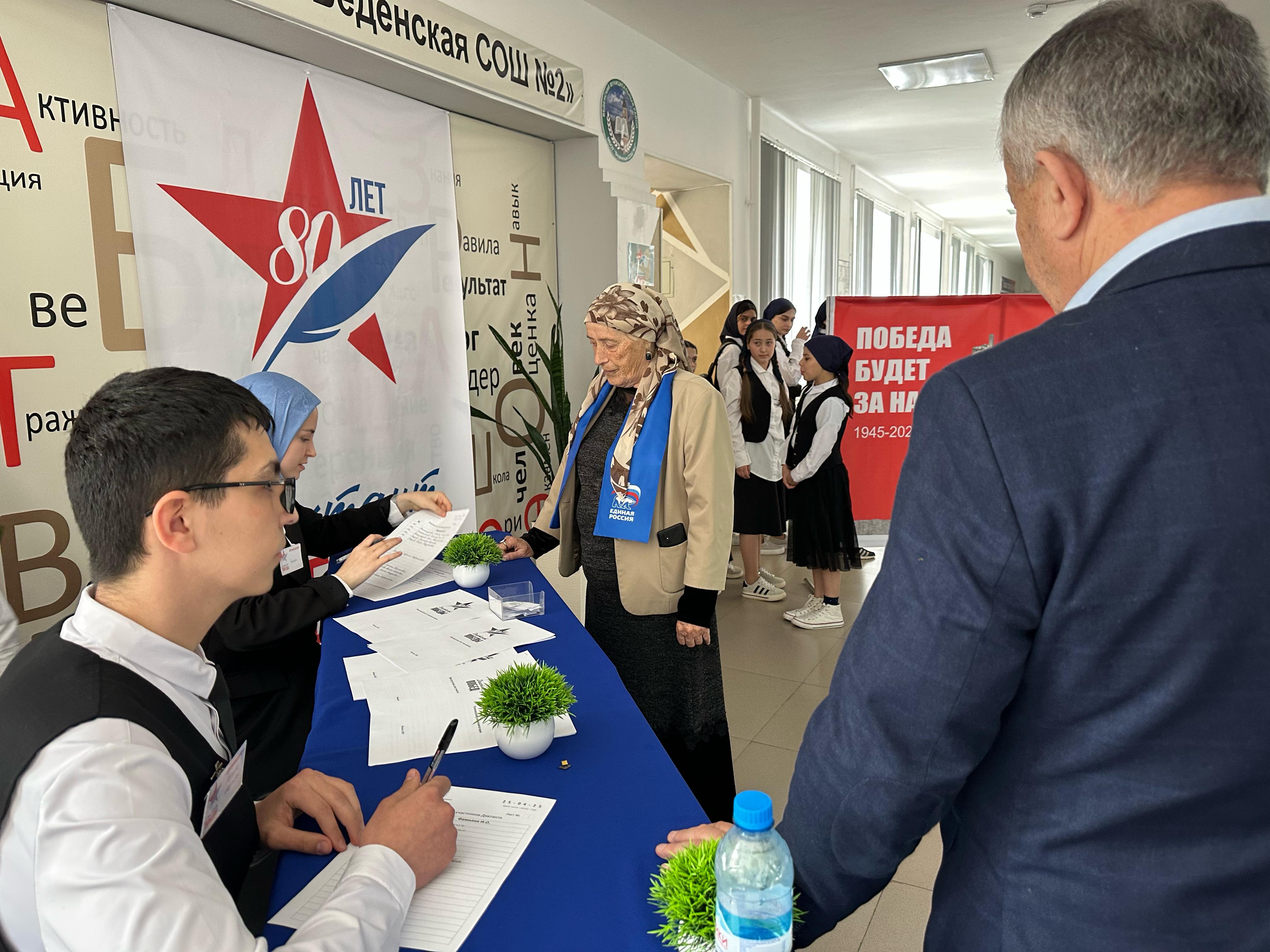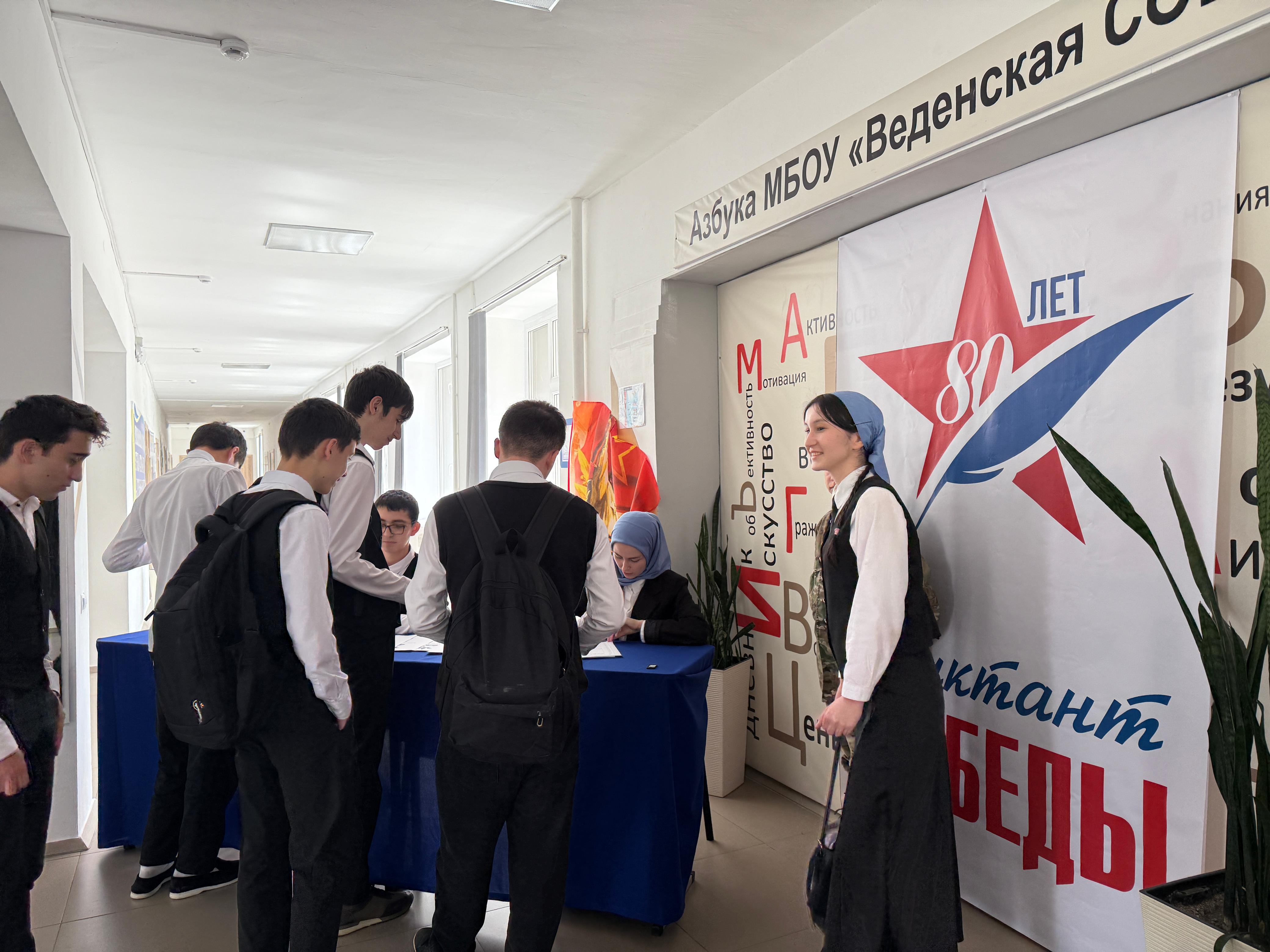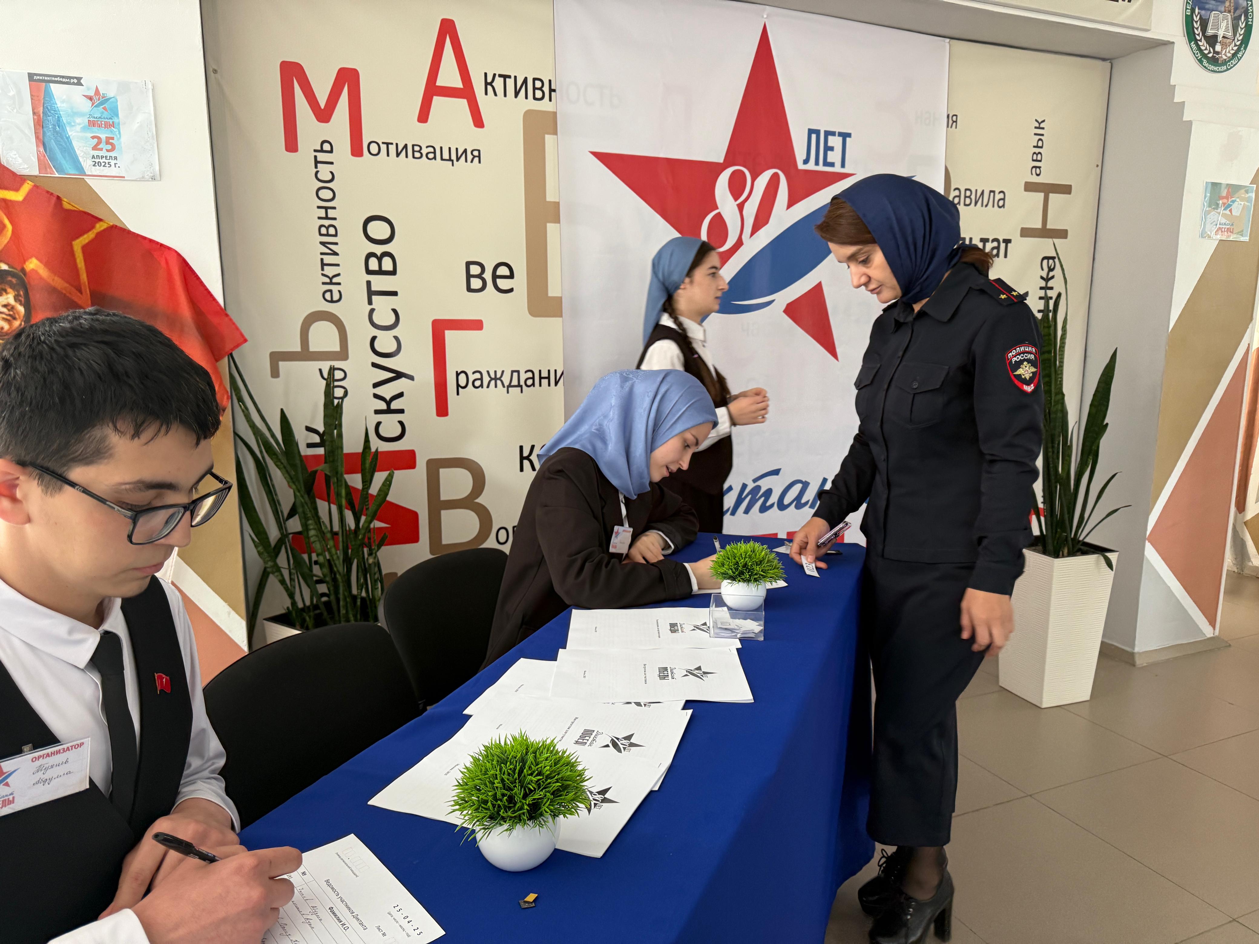 25.04.2025г. МБОУ «Веденская СОШ №2» стала местом проведения Международной исторической акции «Диктант Победы», приуроченная 80-летию Победы, которая собрала участников разных возрастов и профессий. Это мероприятие направлено на сохранение памяти о событиях Великой Отечественной войны и на проверку знаний о героическом прошлом нашей страны.
